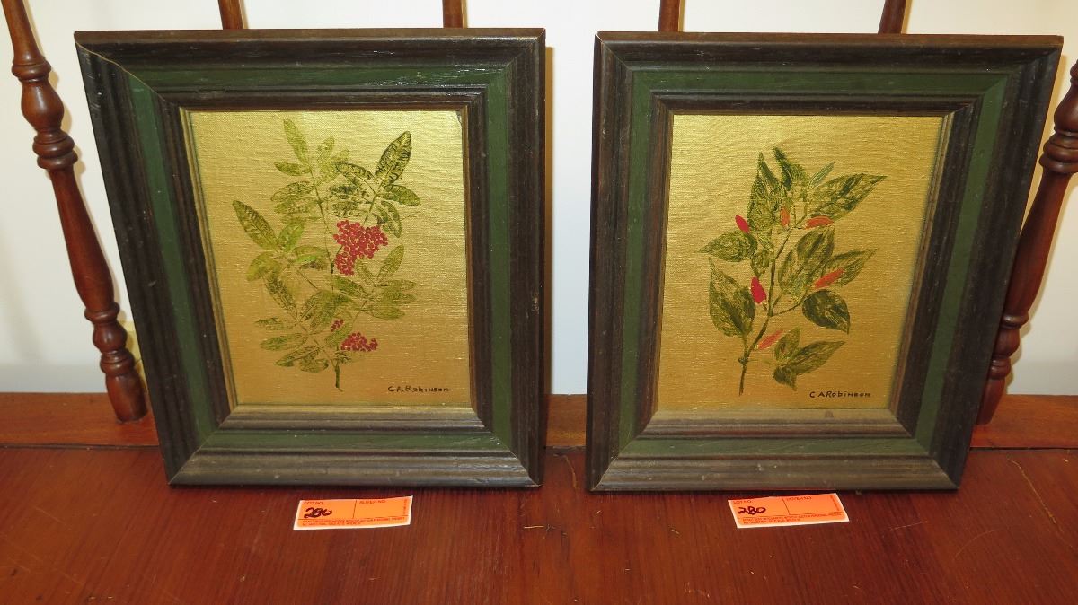 Qty 2 Framed Original Painting on Canvas: Botanical - by C.A. Robinson 12X14