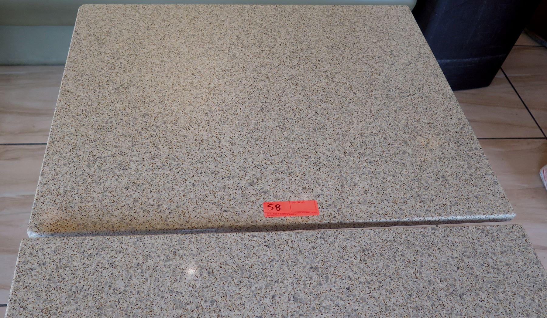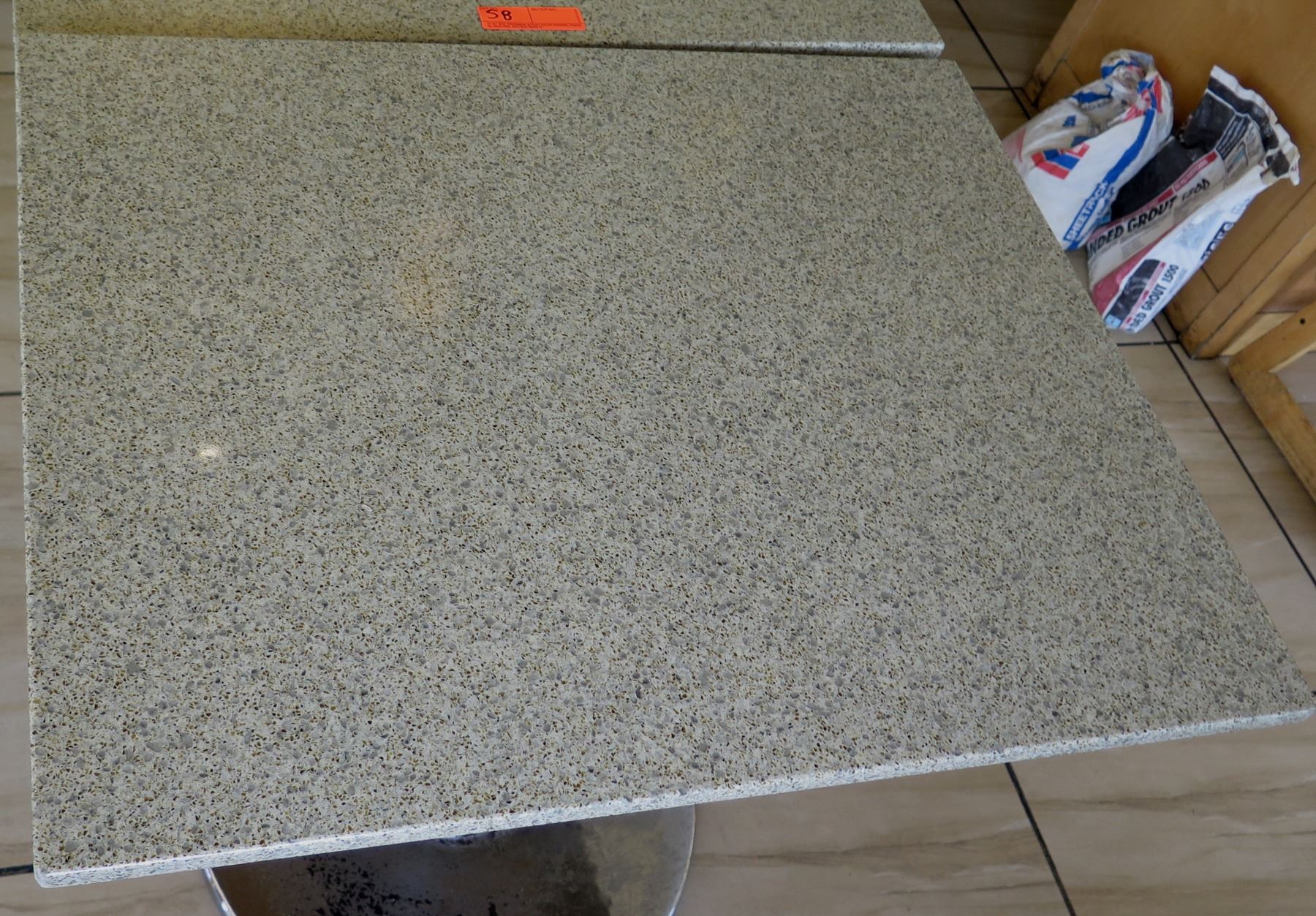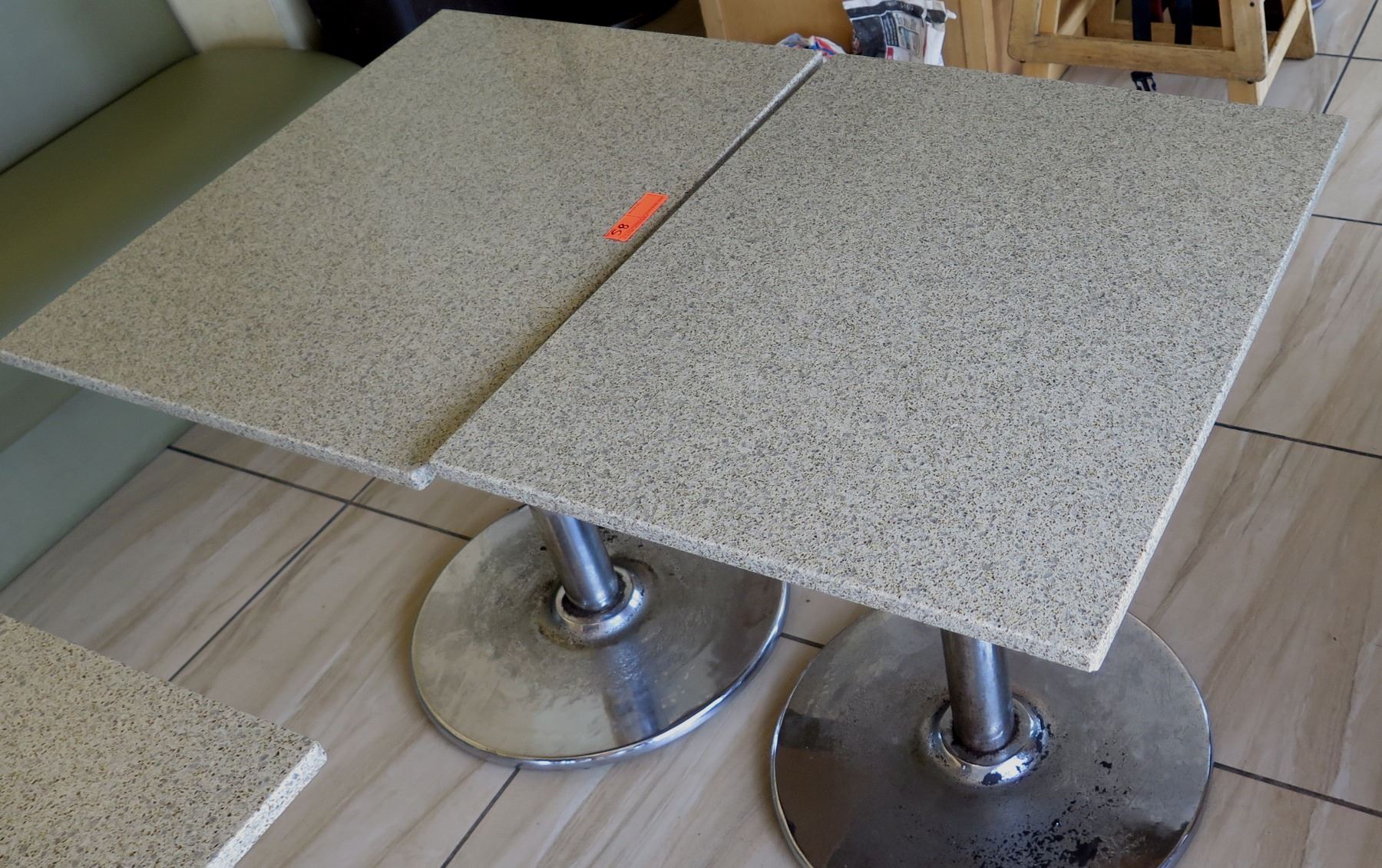 Qty 2 Granite Sand Color Tables w/Metal Base (24" x 30 x 29.5" H), Random Chipped Corners/Edges