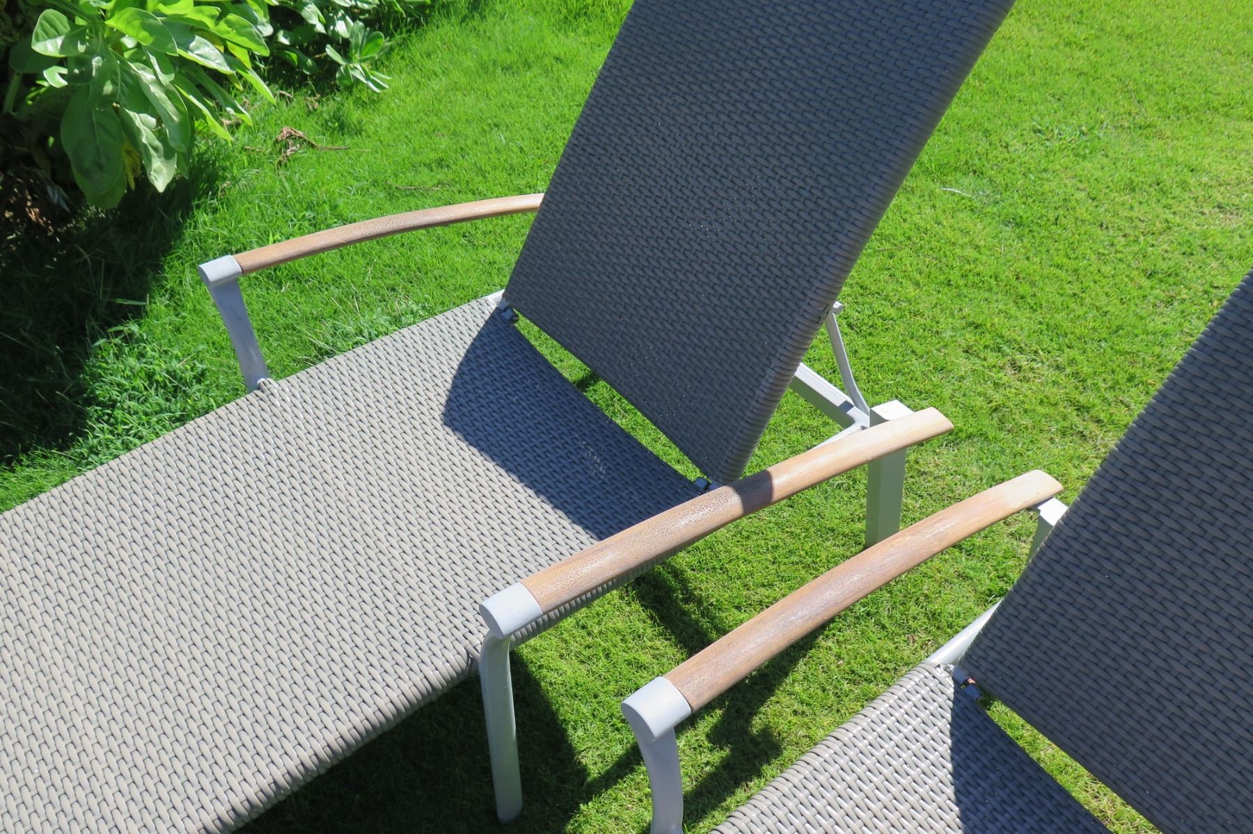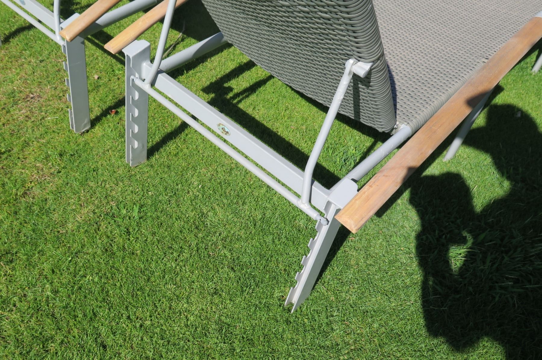 Qty 2 Gray Loungers w/ Aluminum Frame 76.5 x23 x20 H Woven Synthetic Material