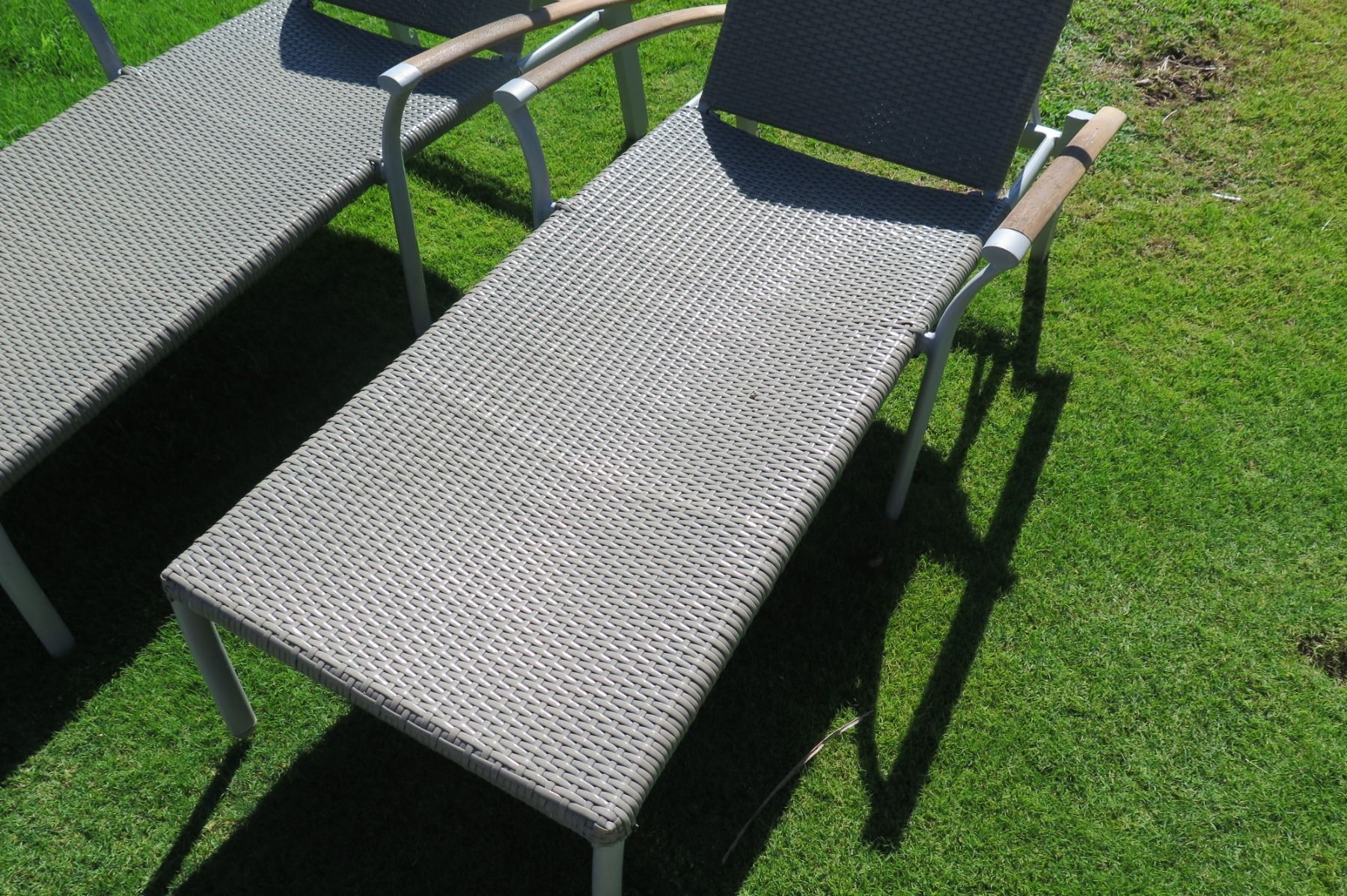 Qty 2 Gray Loungers w/ Aluminum Frame 76.5"x23"x20"H Woven Synthetic Material