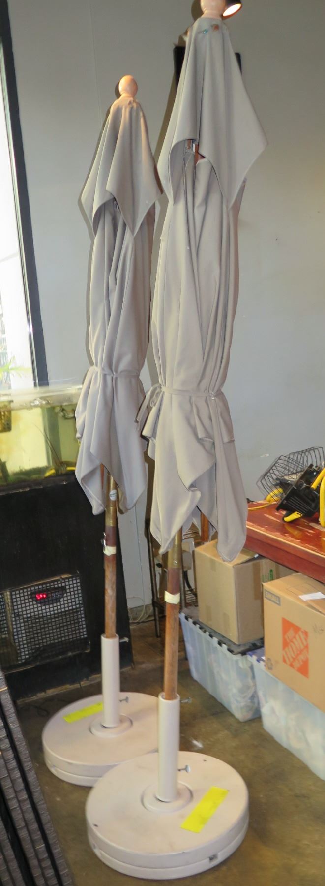 Qty 2 Grosfillex Outdoor Umbrellas w/ Stands, Has Holes, Canvas (approx. 110" dia.)