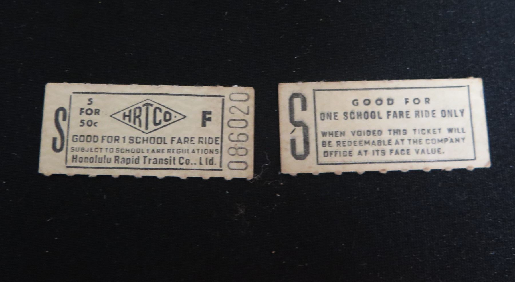 Qty 2 HRTCO School Fare Ride Tickets Honolulu Rapid Transit Co. Ltd.