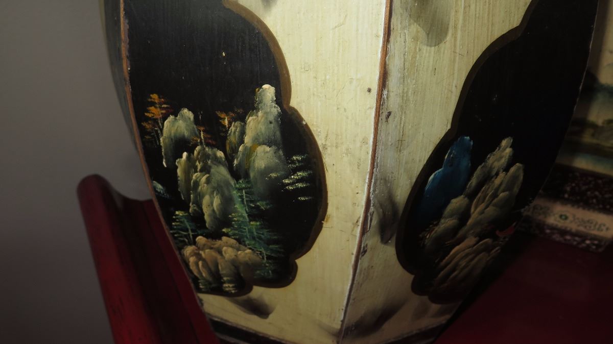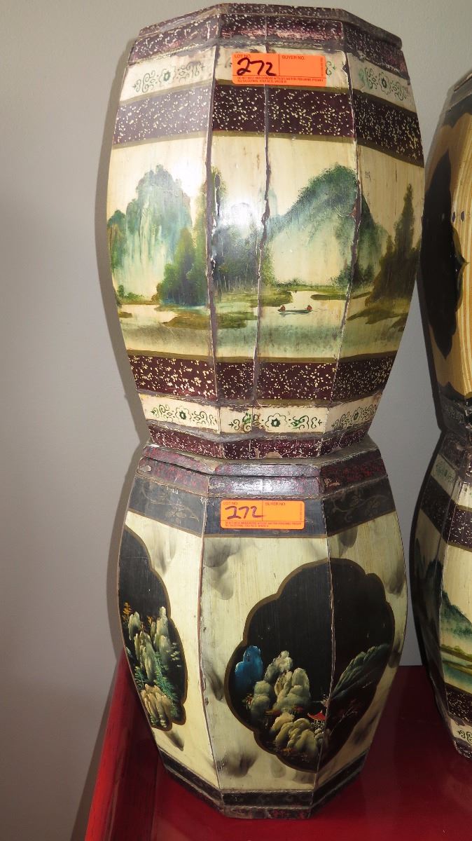 Qty 2 Handpainted Cedar Octagonal Storage Bin (Mountain Village) 17.5"H, 12" Dia
