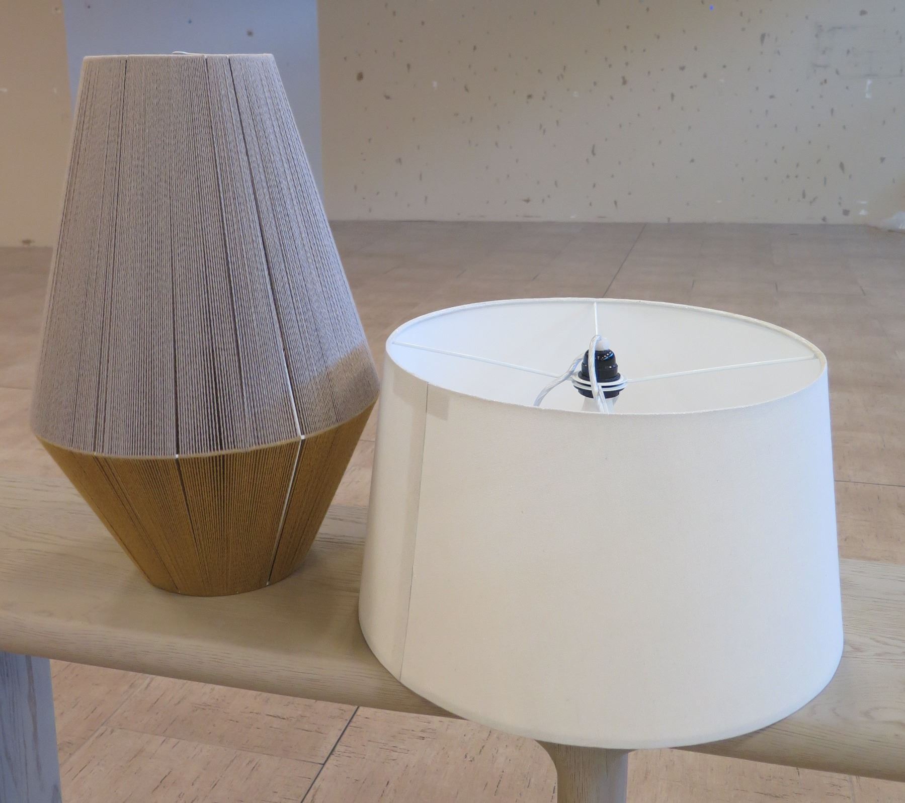 Qty 2 Hanging Lamps: Pop & Scott Baby Bell Weave & White Shade, Misc Sizes