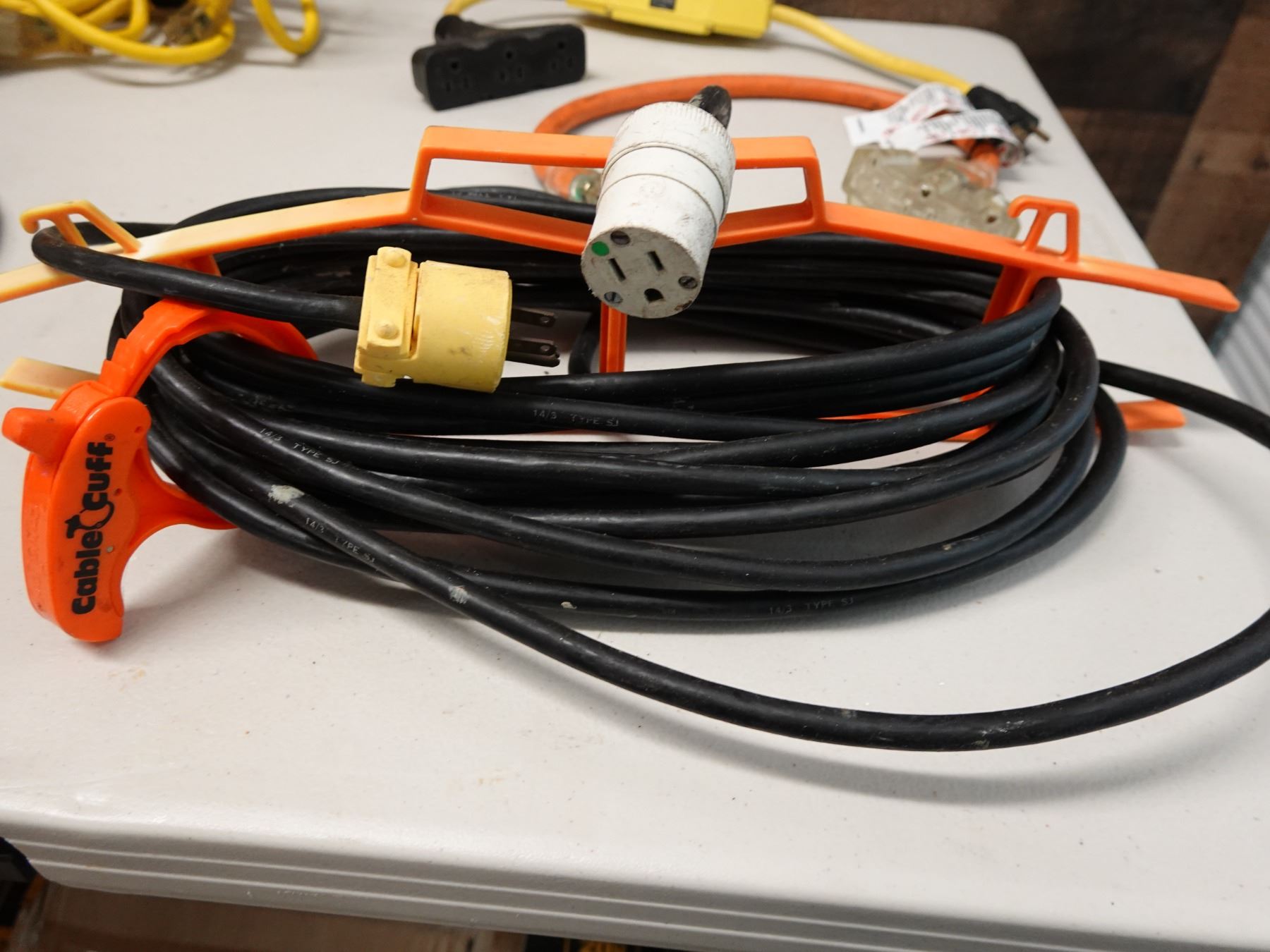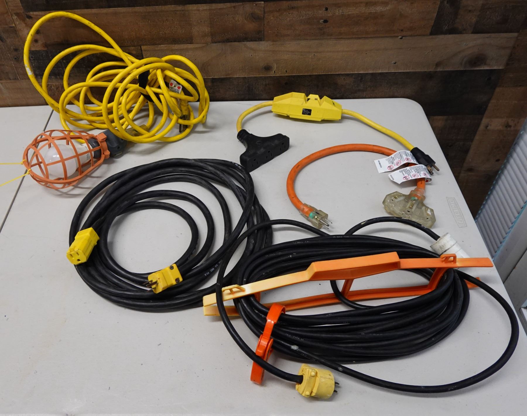 Qty 2 Heavy Duty Extension Cords, Light Cage & Misc Attachments