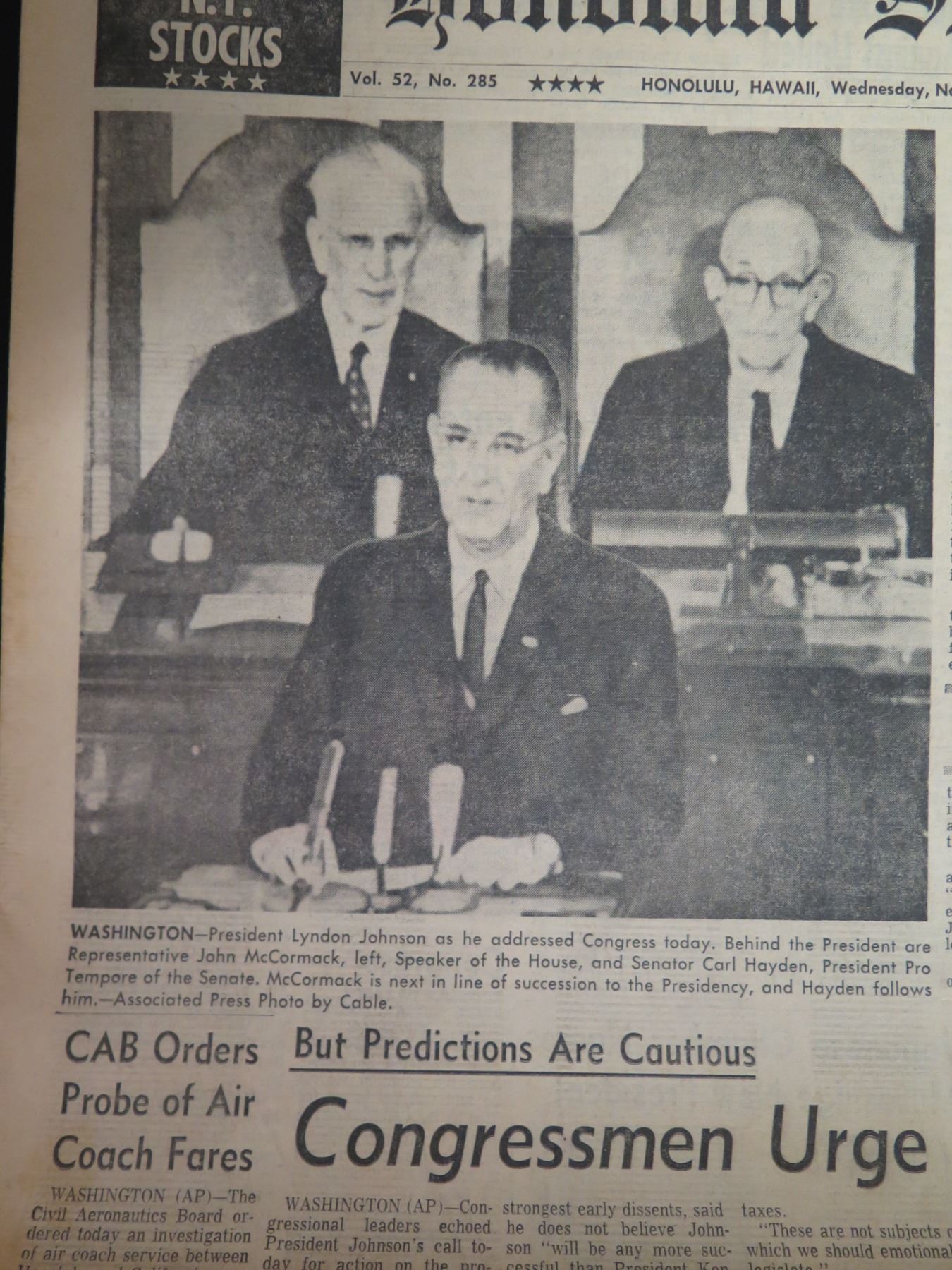 Qty 2 Honolulu Star-Bulletin Newspapers Johnson Asks Civil Rights 1963, Comics, etc