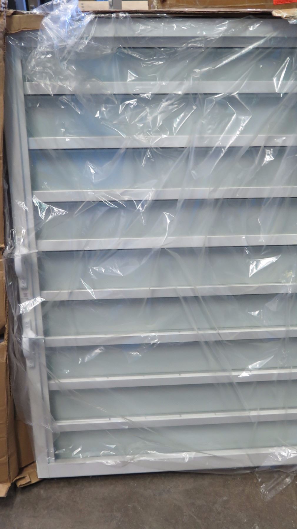 Qty 2 J500/J1000 Aluminum Twin vent Hurricane Louver windows White painted with Clear tempered glass, Block Frame Roto operators with head & sill starters & extruded aluminum screens 32" x 48" per panel.