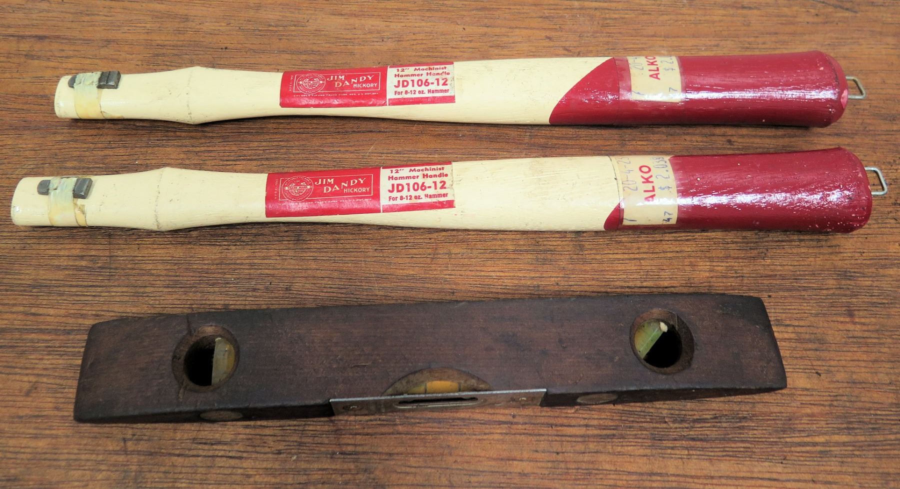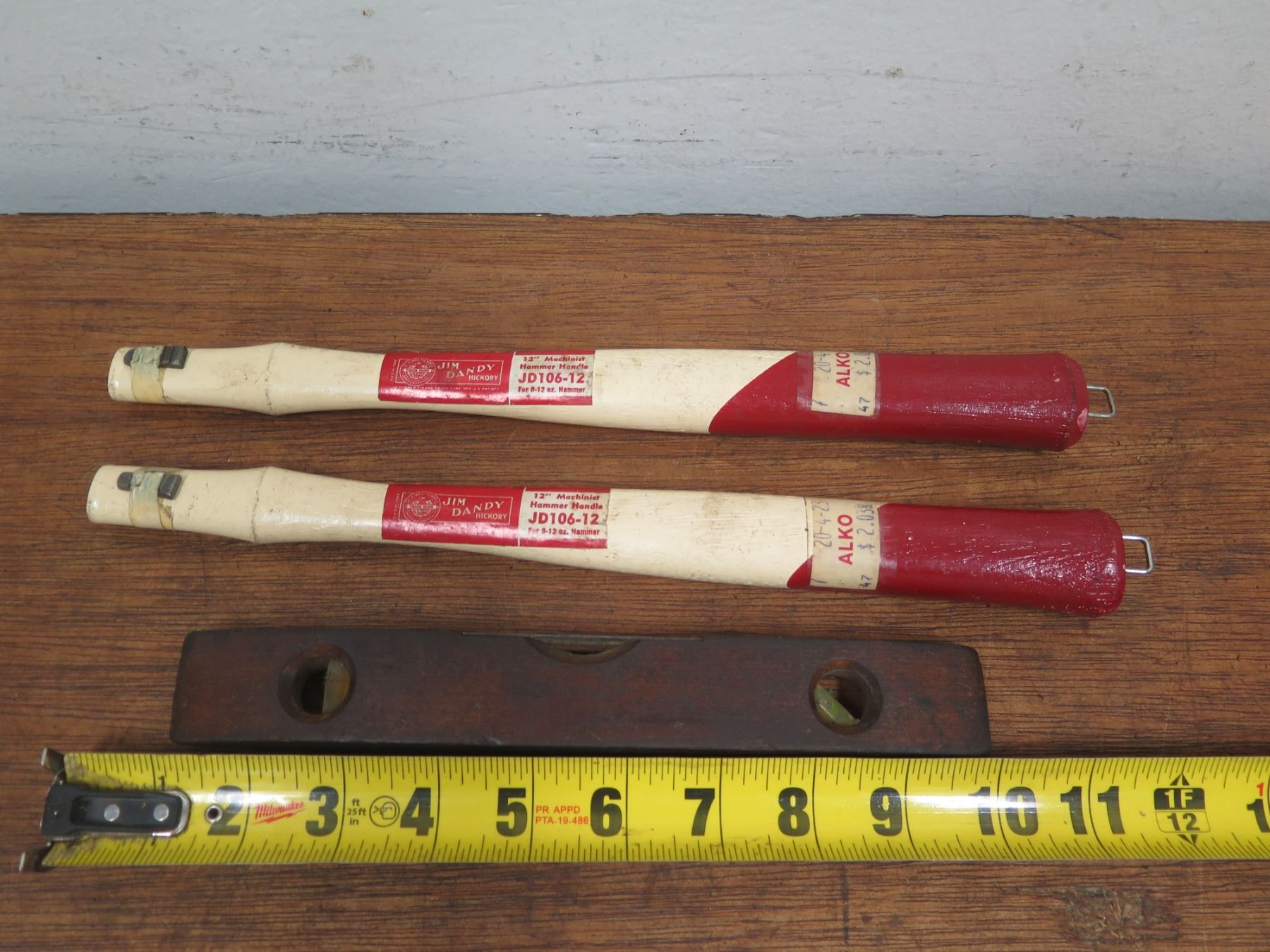 Qty 2 Jim Dandy 12" Machinist Hammer Handles JD106-12 & Stanley 260 Level