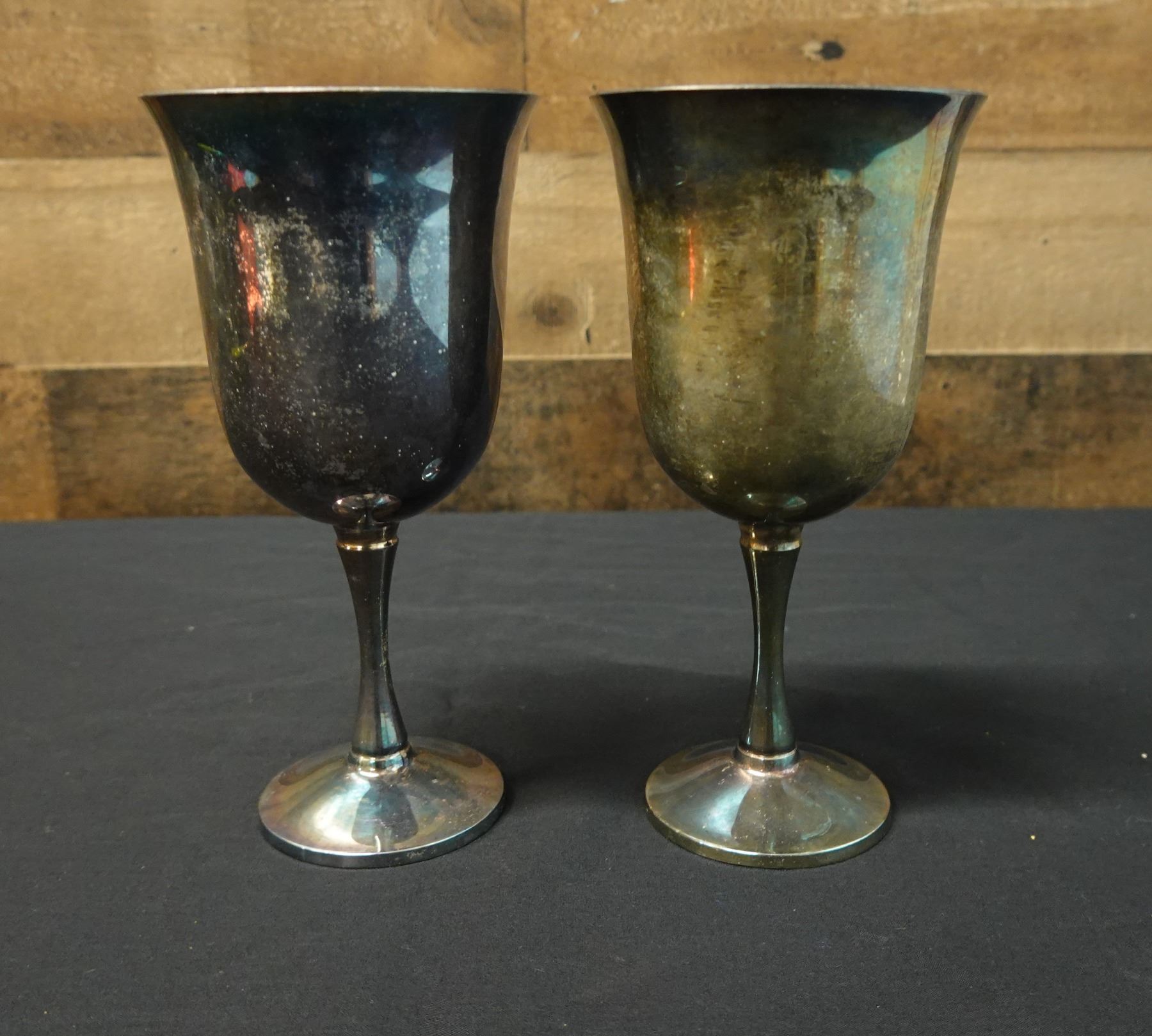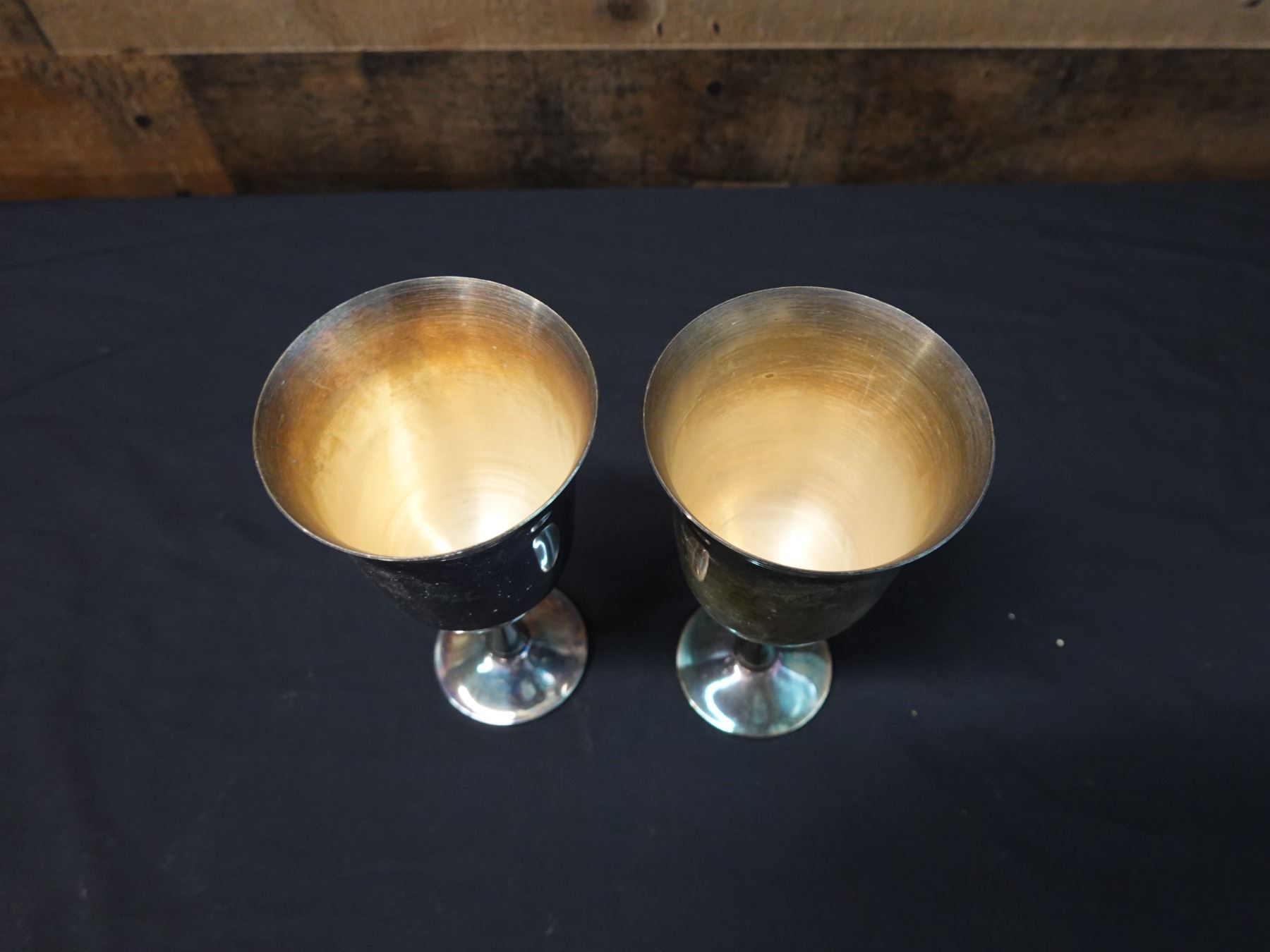 Qty 2 Jolem Silver Plate Footed Goblets 3.5  Dia, 7 H