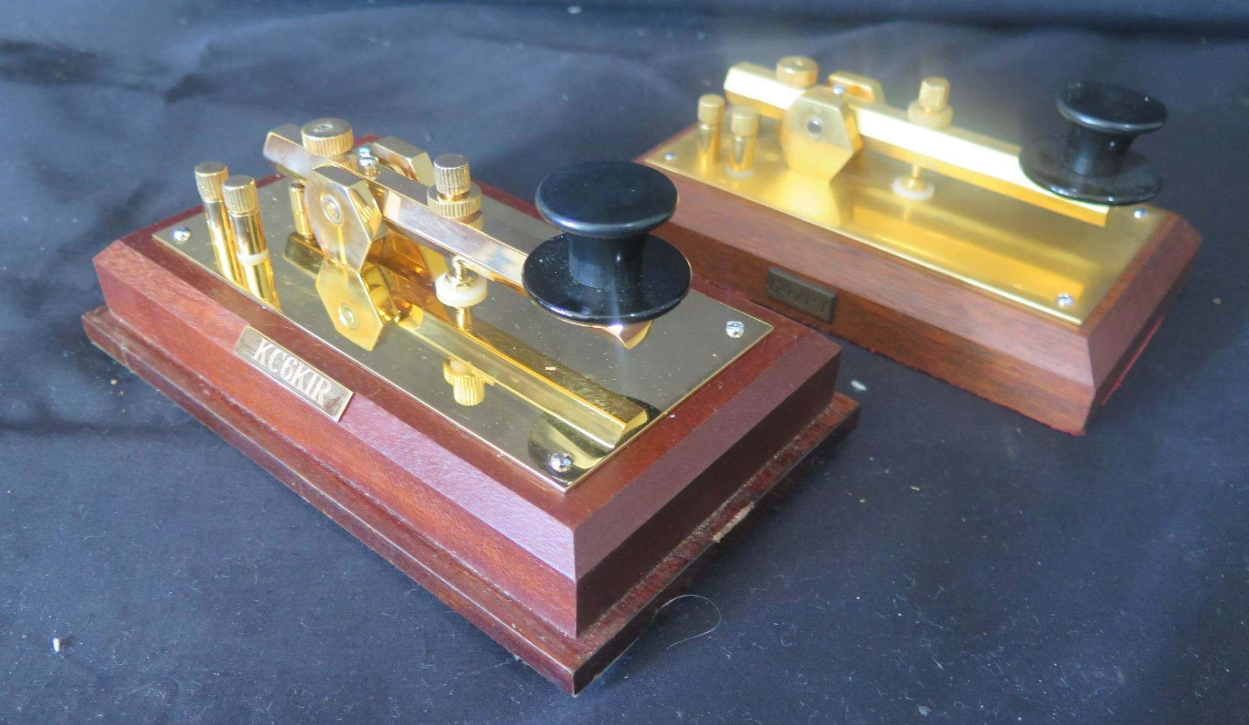 Qty 2 KC6KIR Morse Code Telegraph Keys on Wood Base