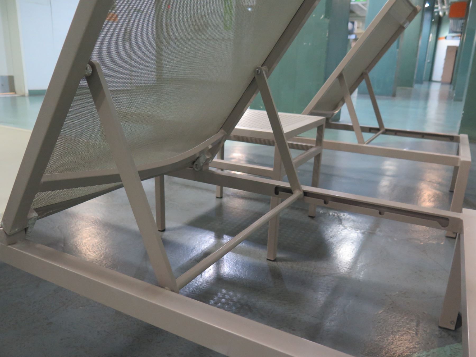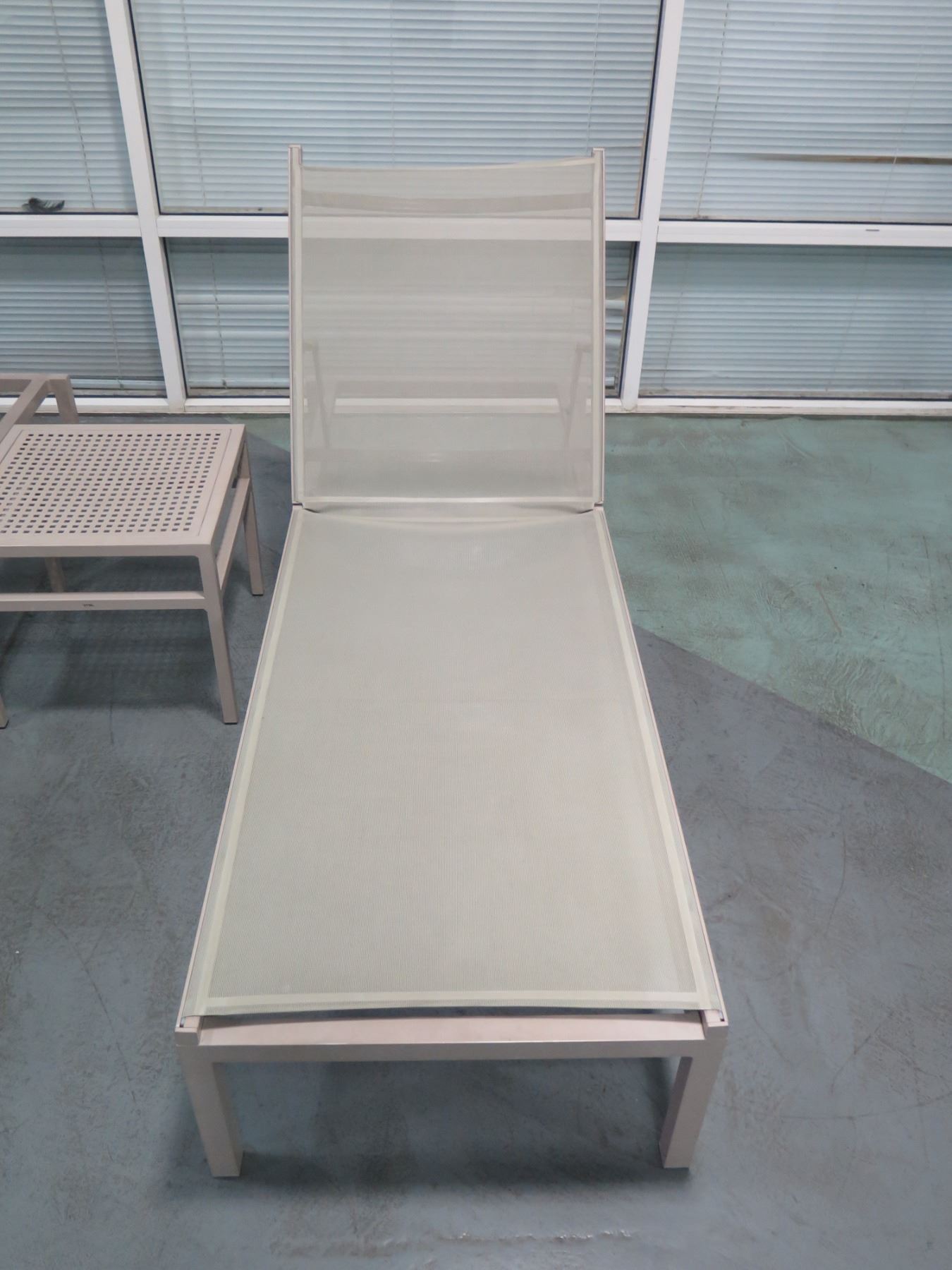 Qty 2 Kettal Mesh Deck Lounge Chairs 74" x 24" x 13"H w/ Matching Table 19" x 19" x 16"H