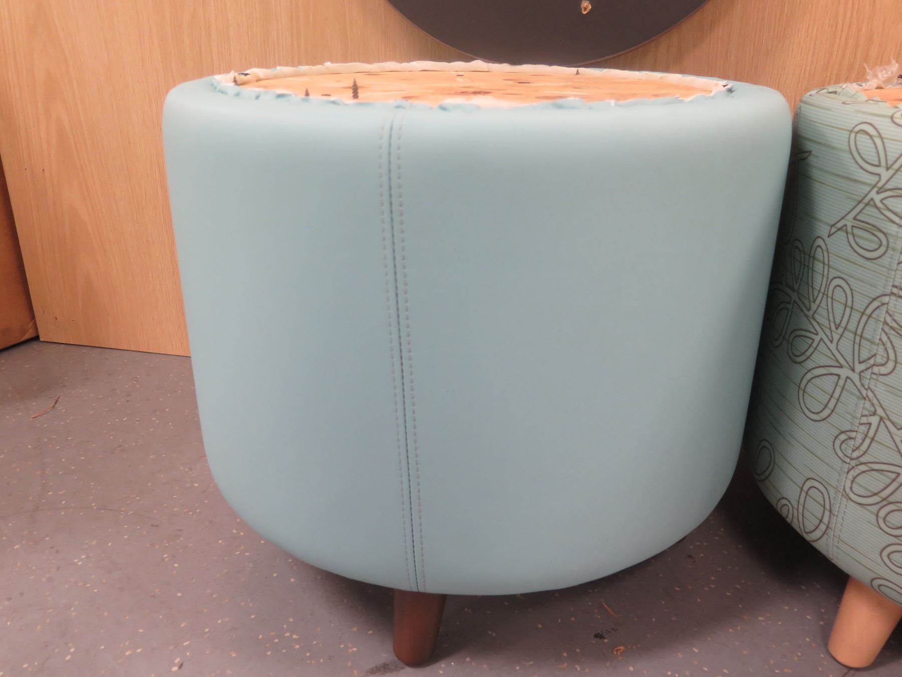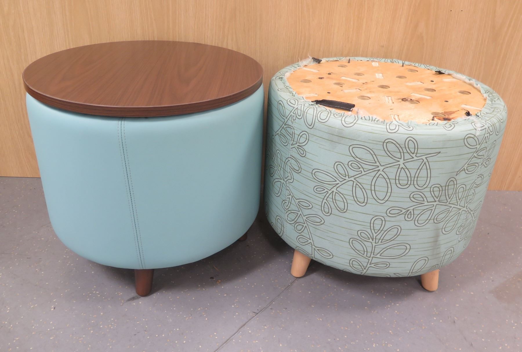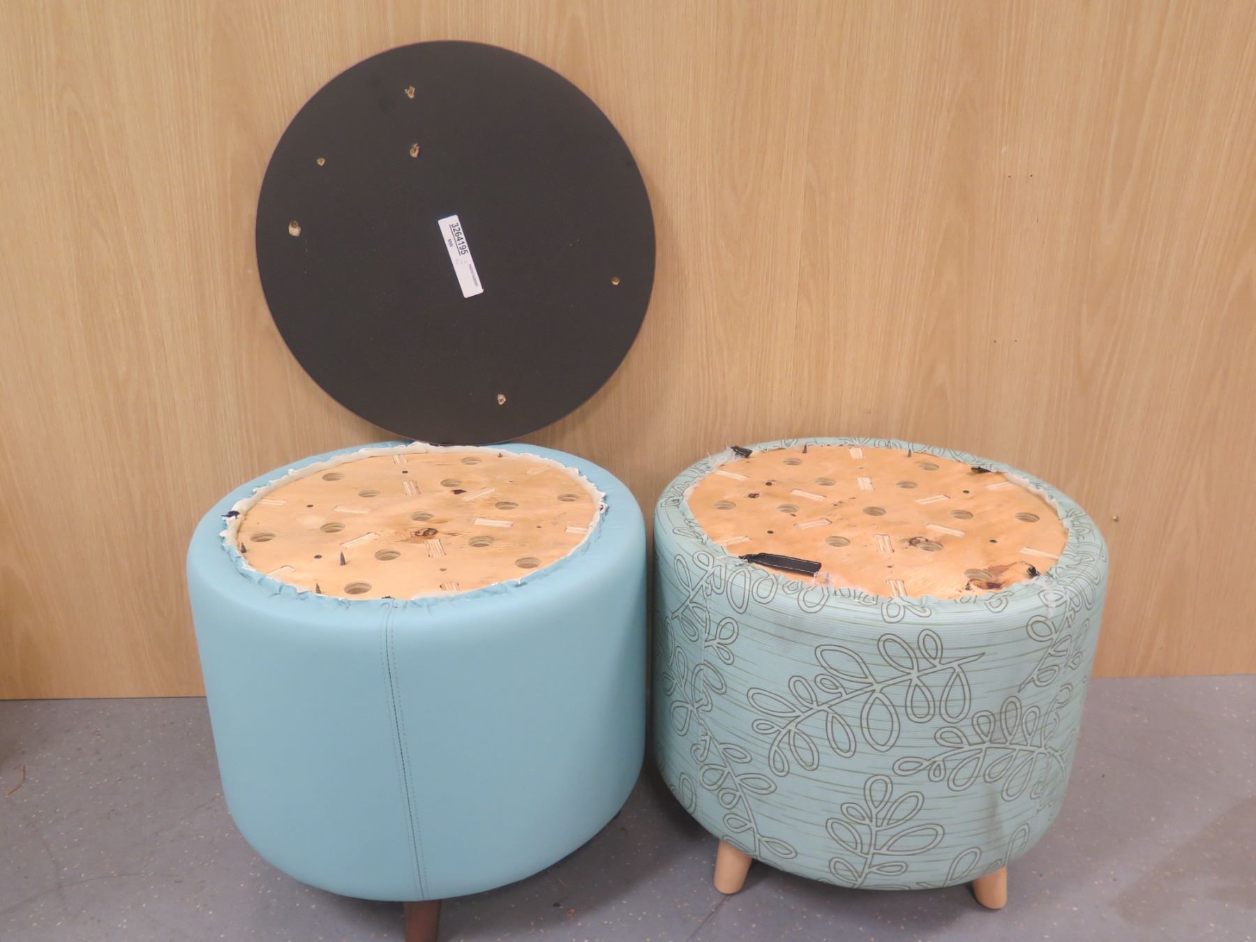 Qty 2 Kimball Joelle Ottomans w/ 1 Veneer Top 20" dia, 17"H (top needs repair/broken pins)