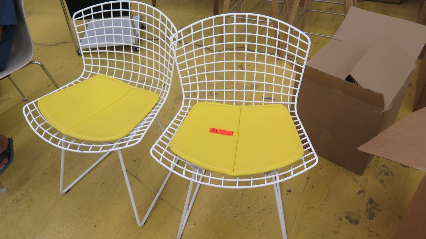 Qty 2 Knoll Modern Side Chairs - White w/Yellow Seat Pads, Seat 21" wide at widest section