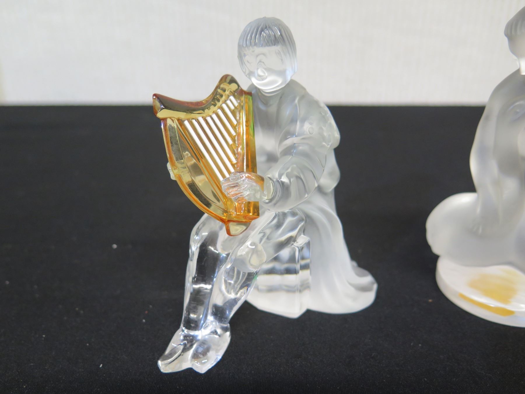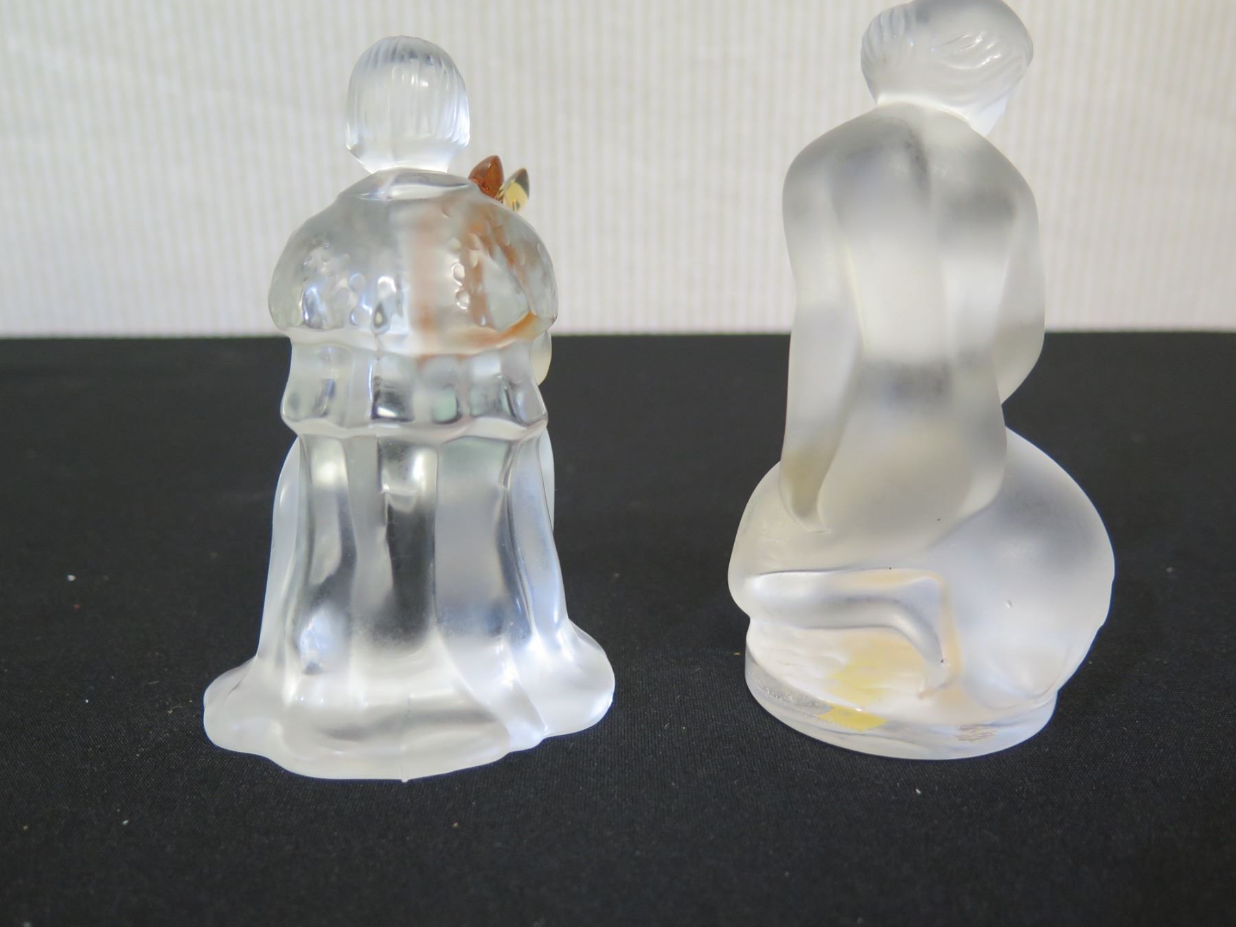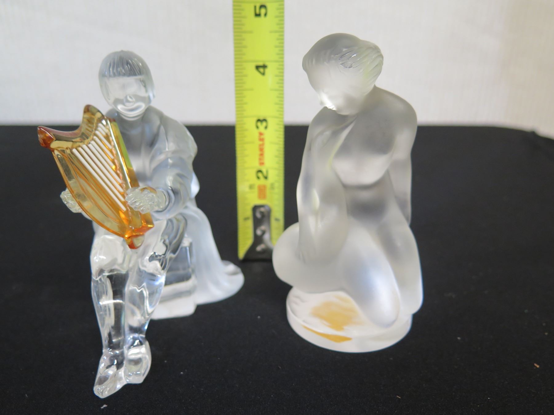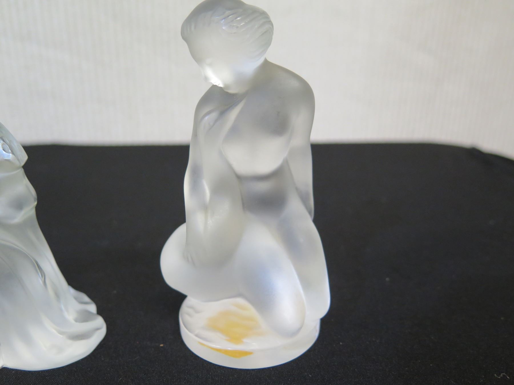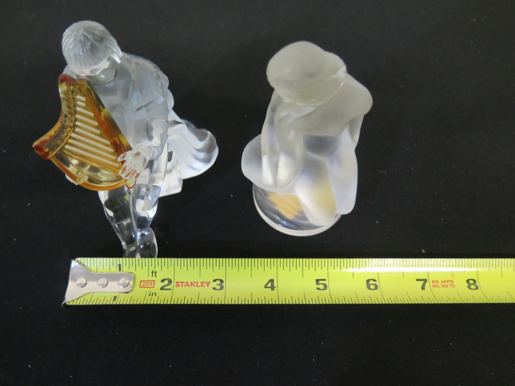 Qty 2 Lalique Cristal Paris Frosted Glass Angel Figurines, Misc Sizes