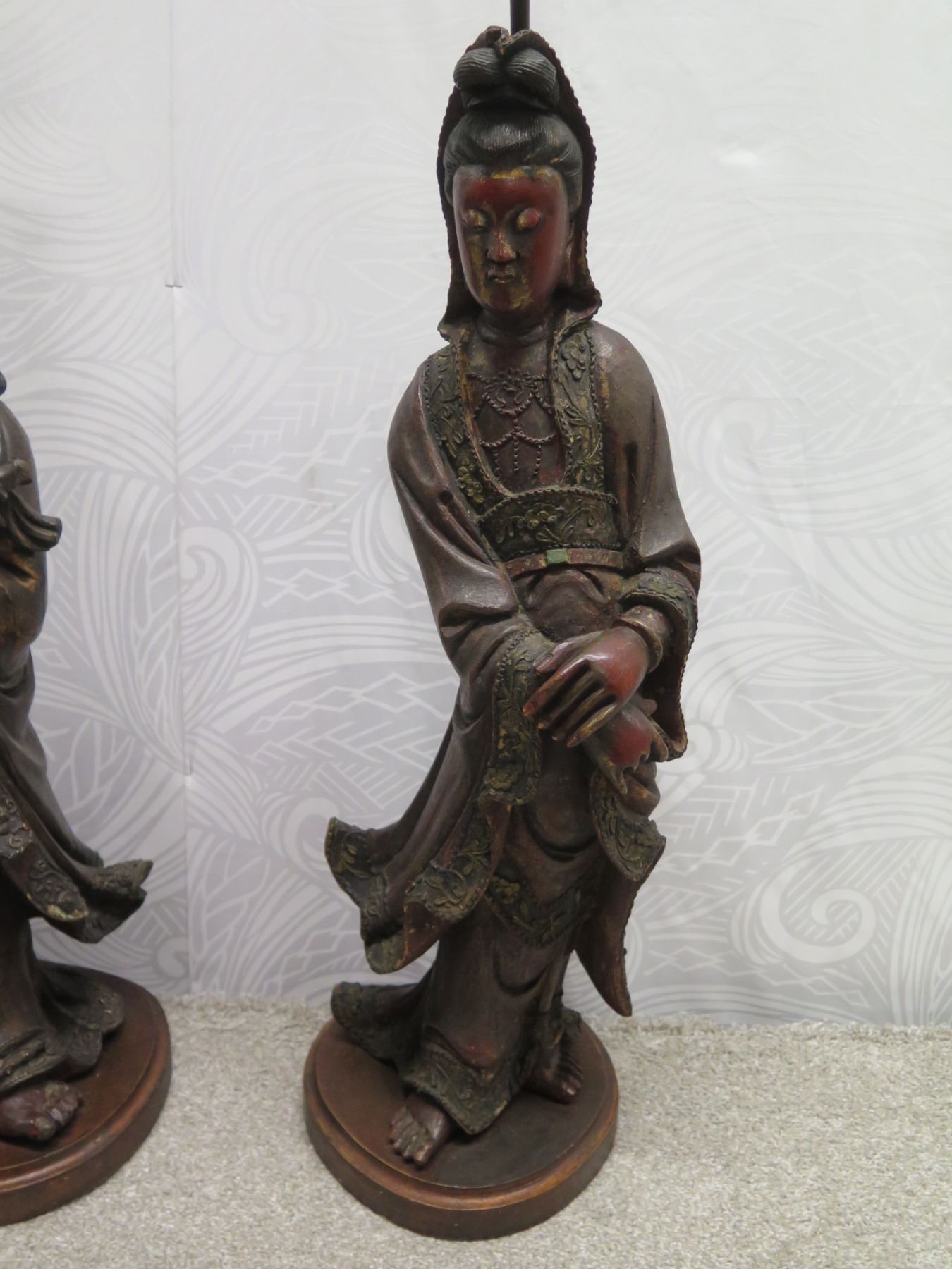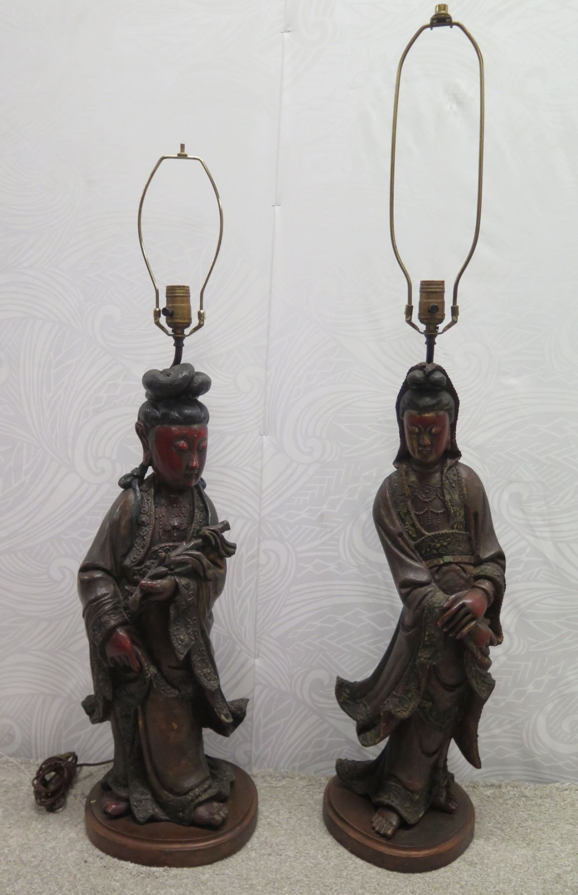 Qty 2 Lamp Bases w/ Quan Yin Figures (No shades) 28" & 35"H