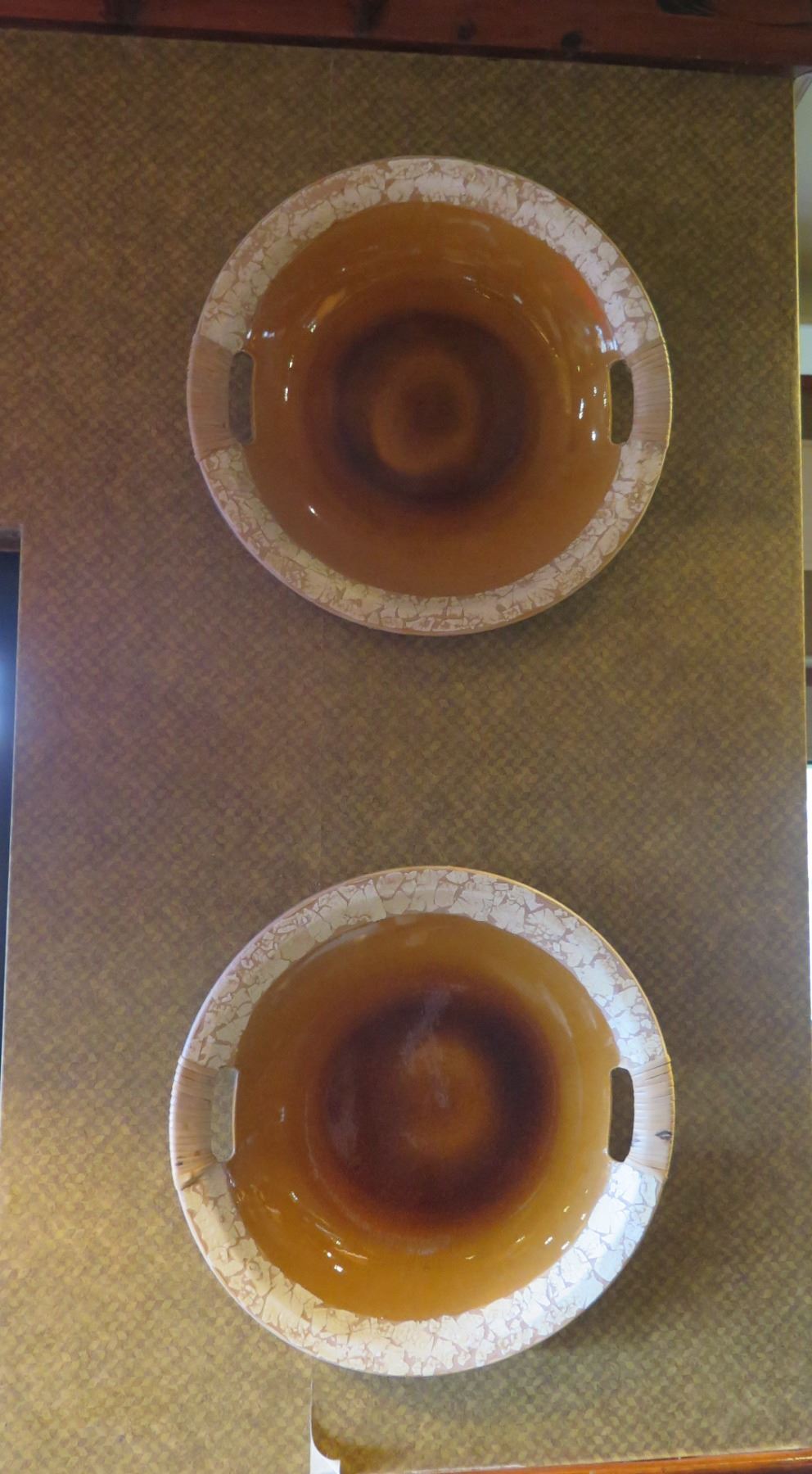 Qty 2 Large Decorative Glazed Ceramic Plates w/ Rattan Covered Handles 18" Dia