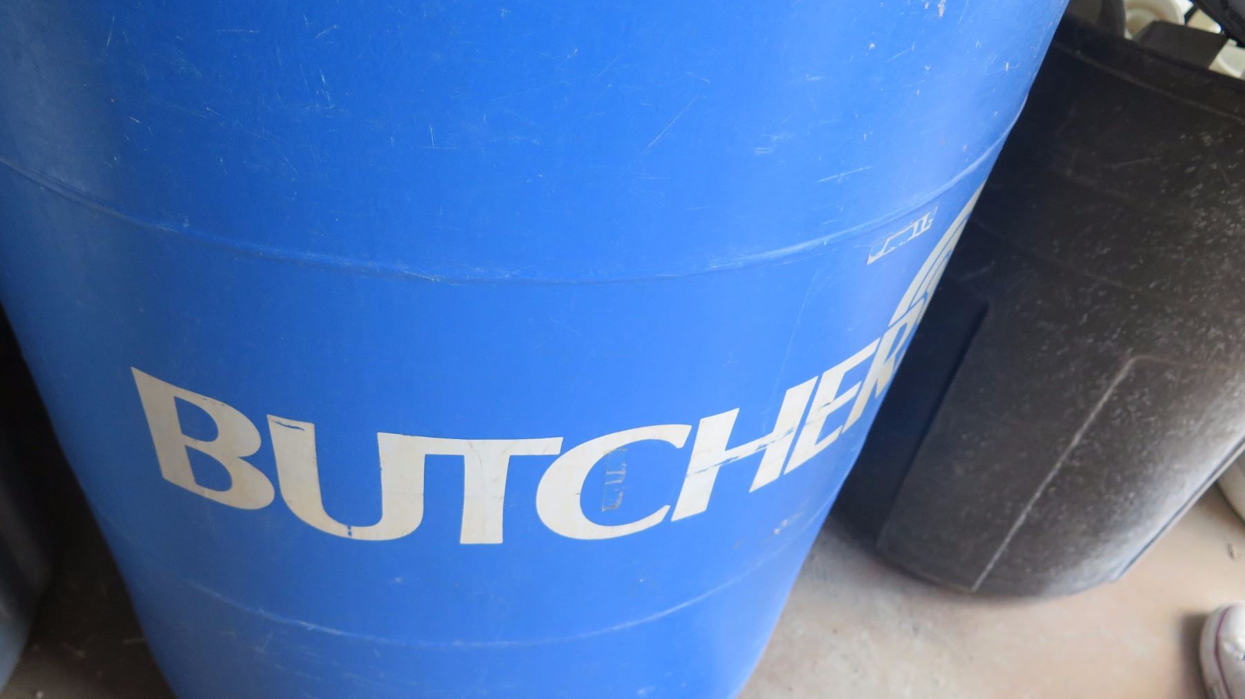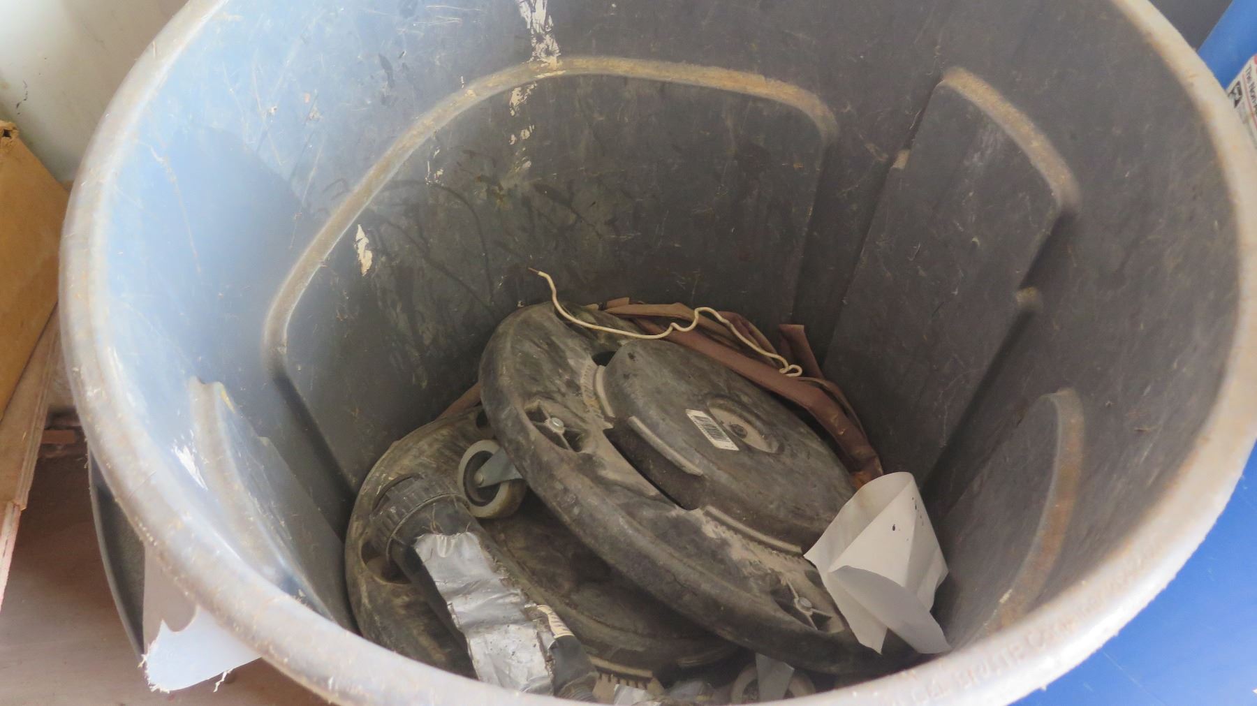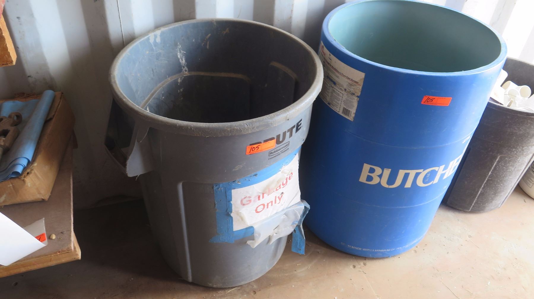 Qty 2 Large Rubberized Garbage/Utility Bins w/Misc. Round Rolling Platforms