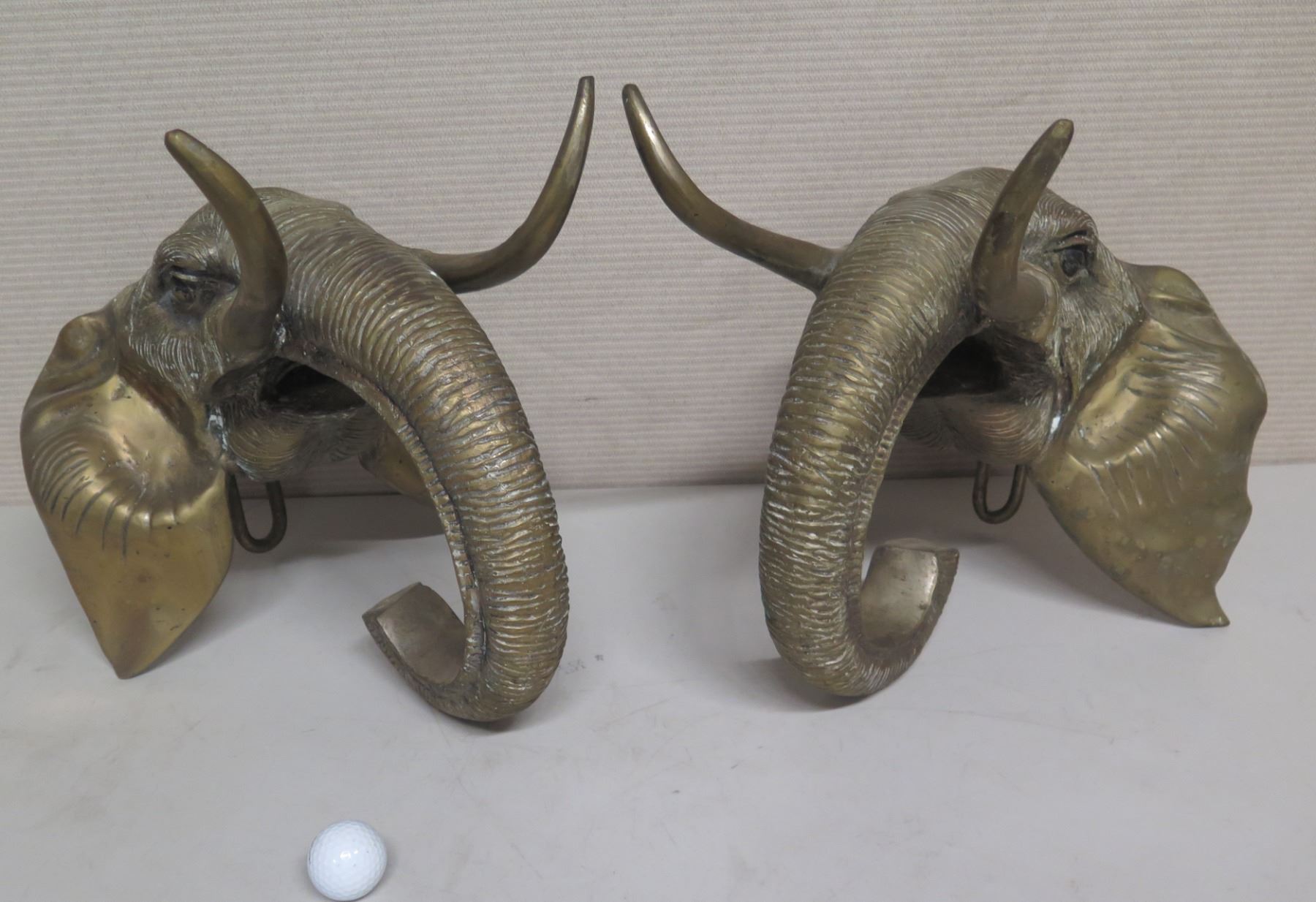 Qty 2 Large Wall-Hanging Brass Elephants (from Zanzibar Nightclub) 14"x16"H