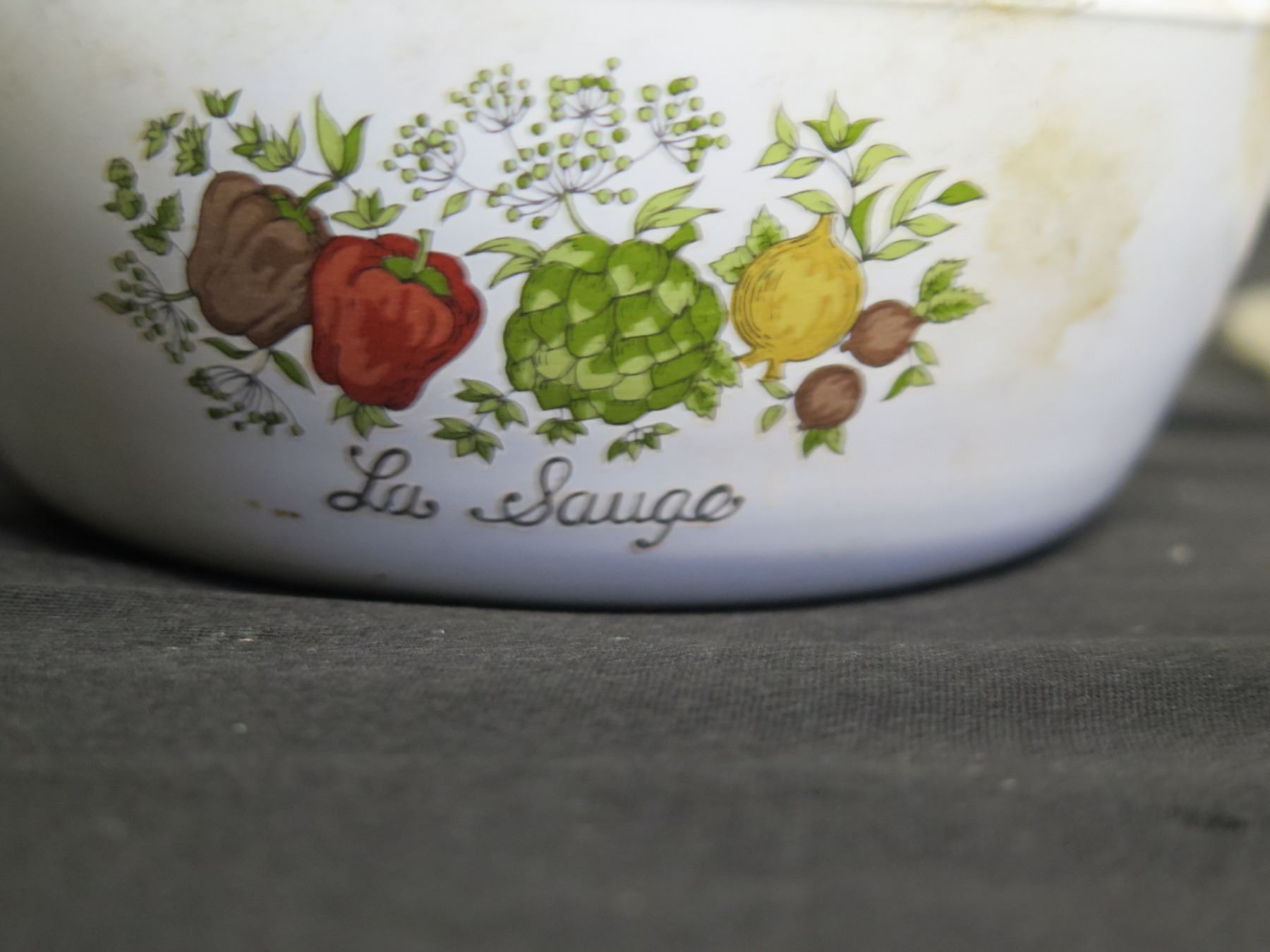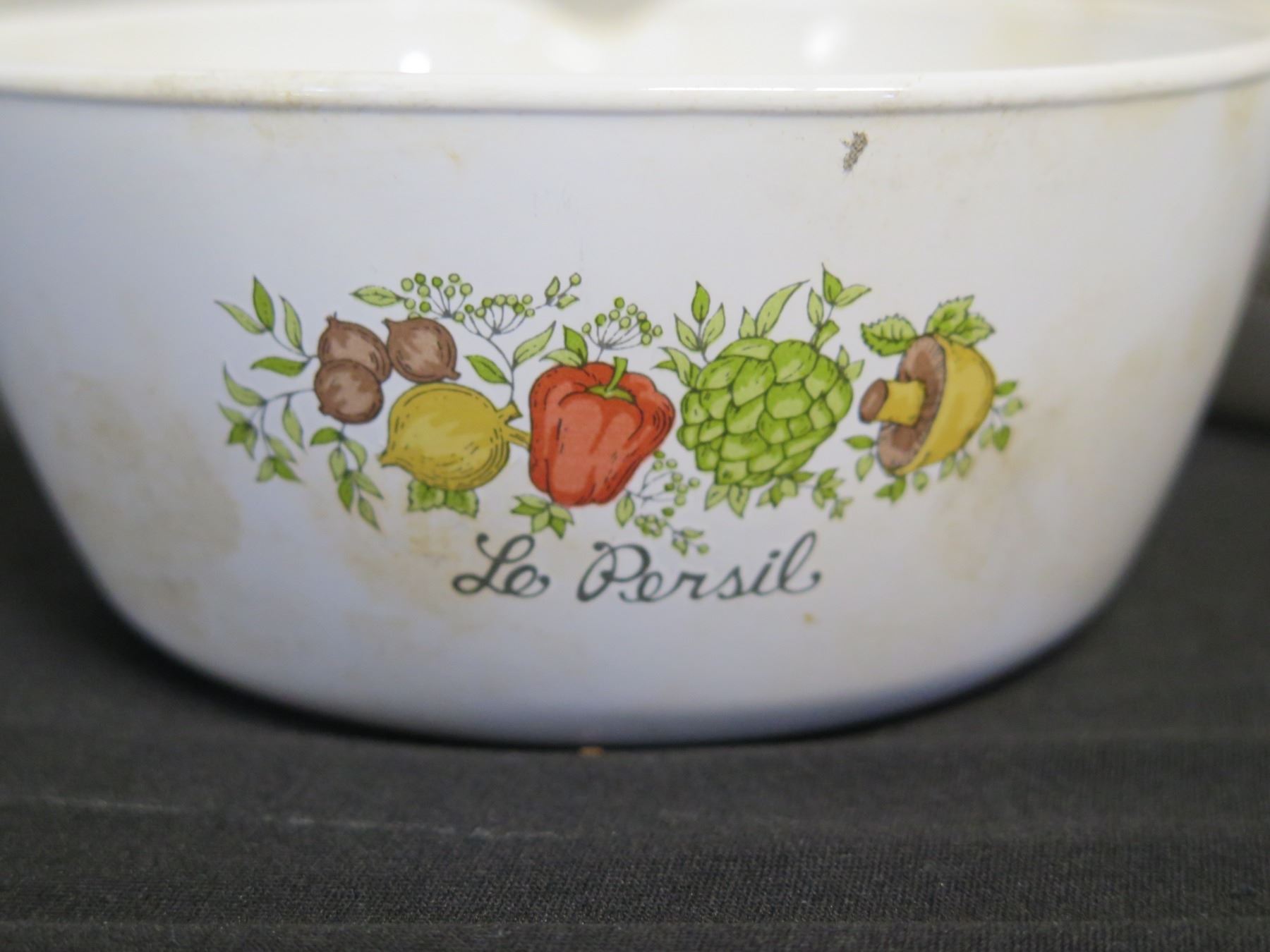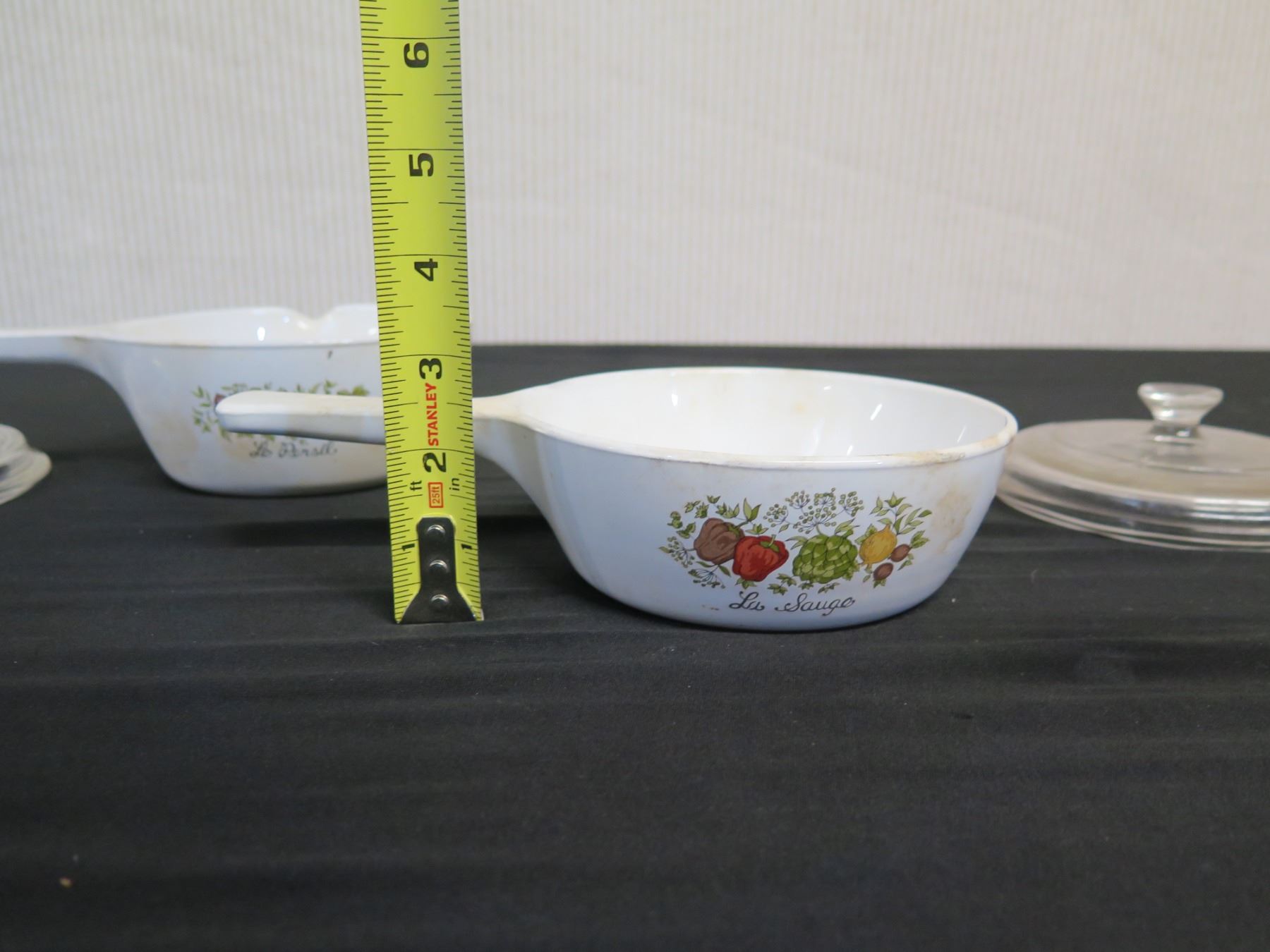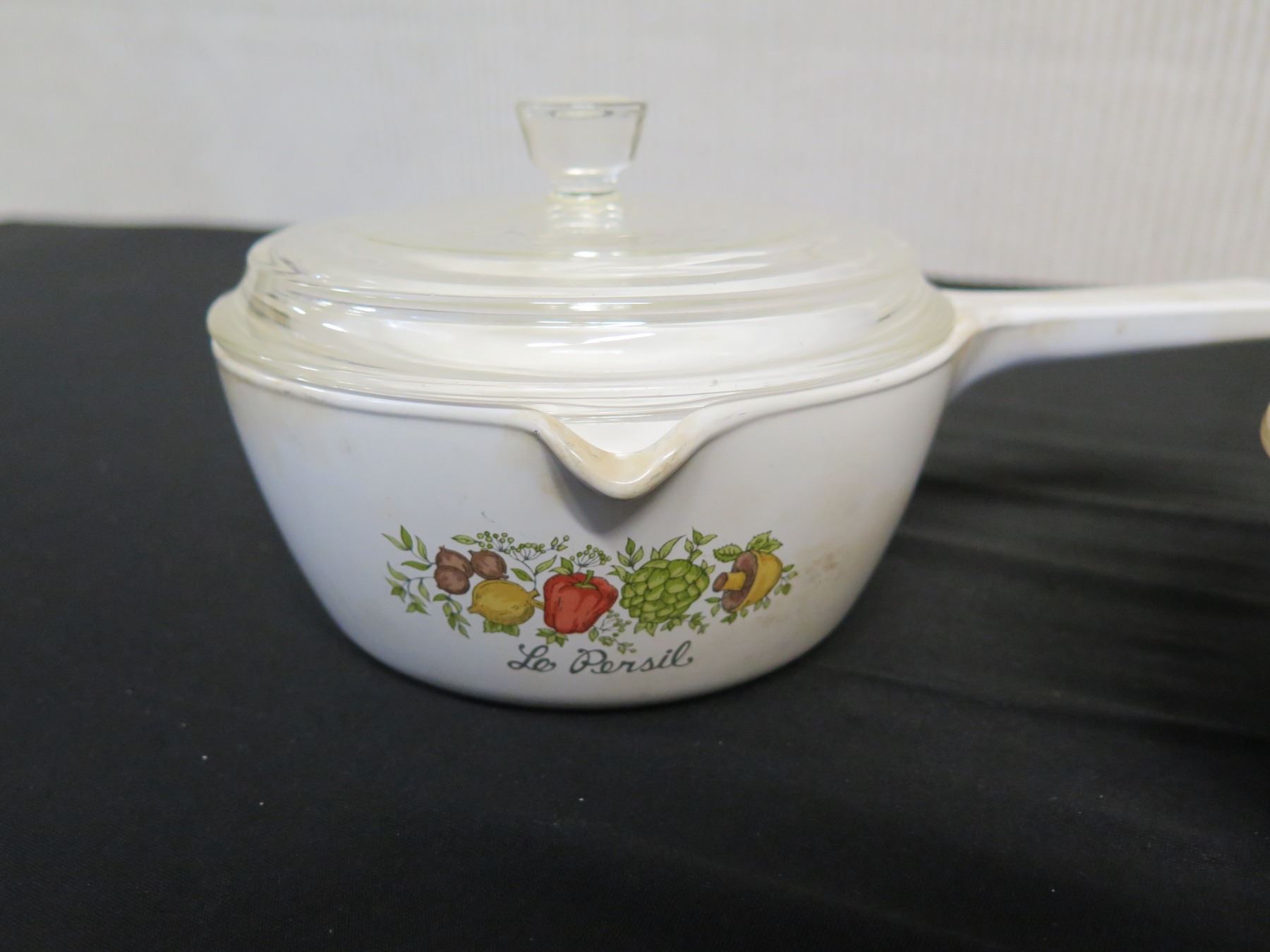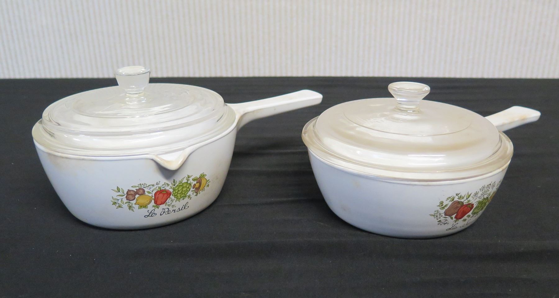 Qty 2 Le Persil & La Sauge Corningware Pots w/ Lids 6" Dia w/ Handle
