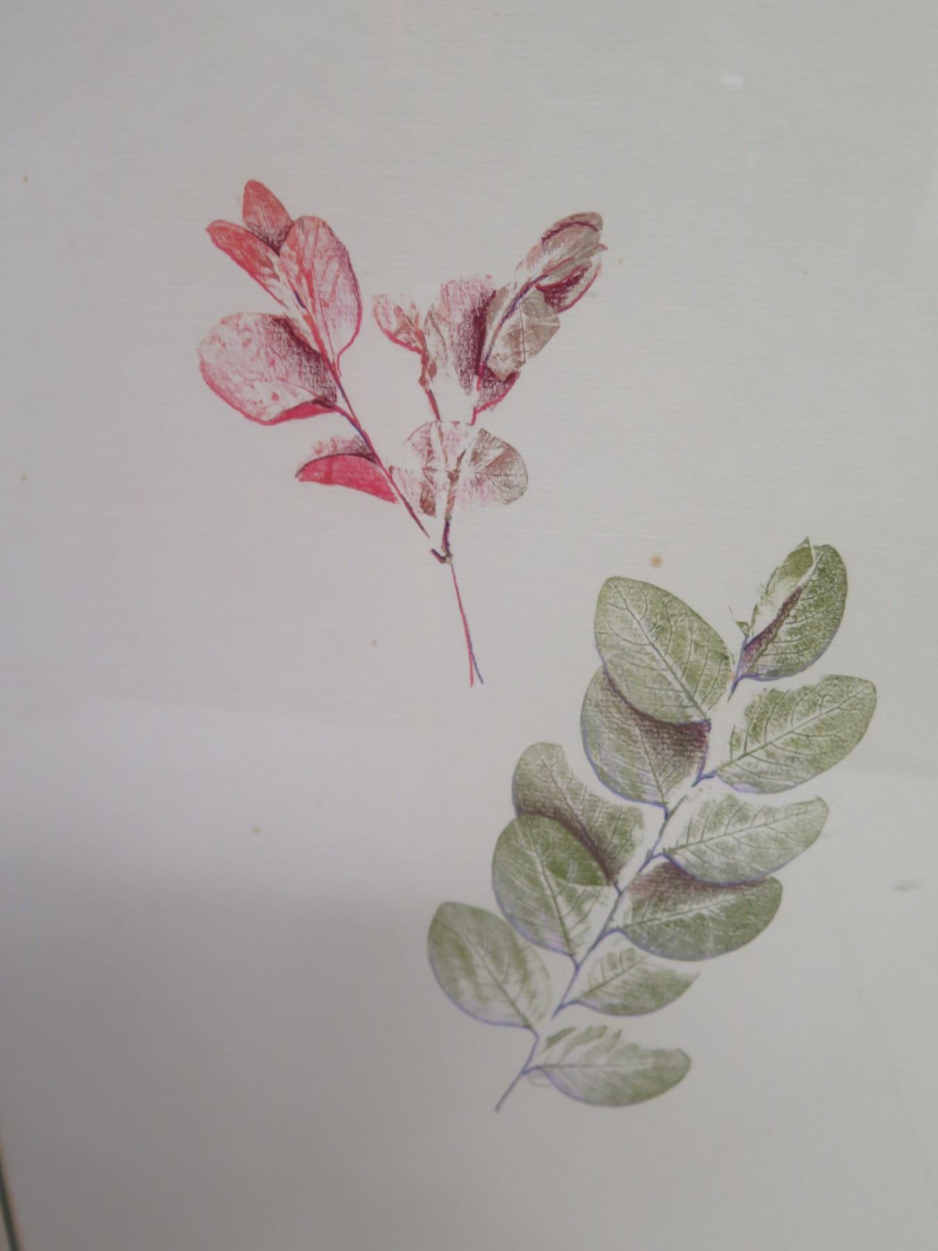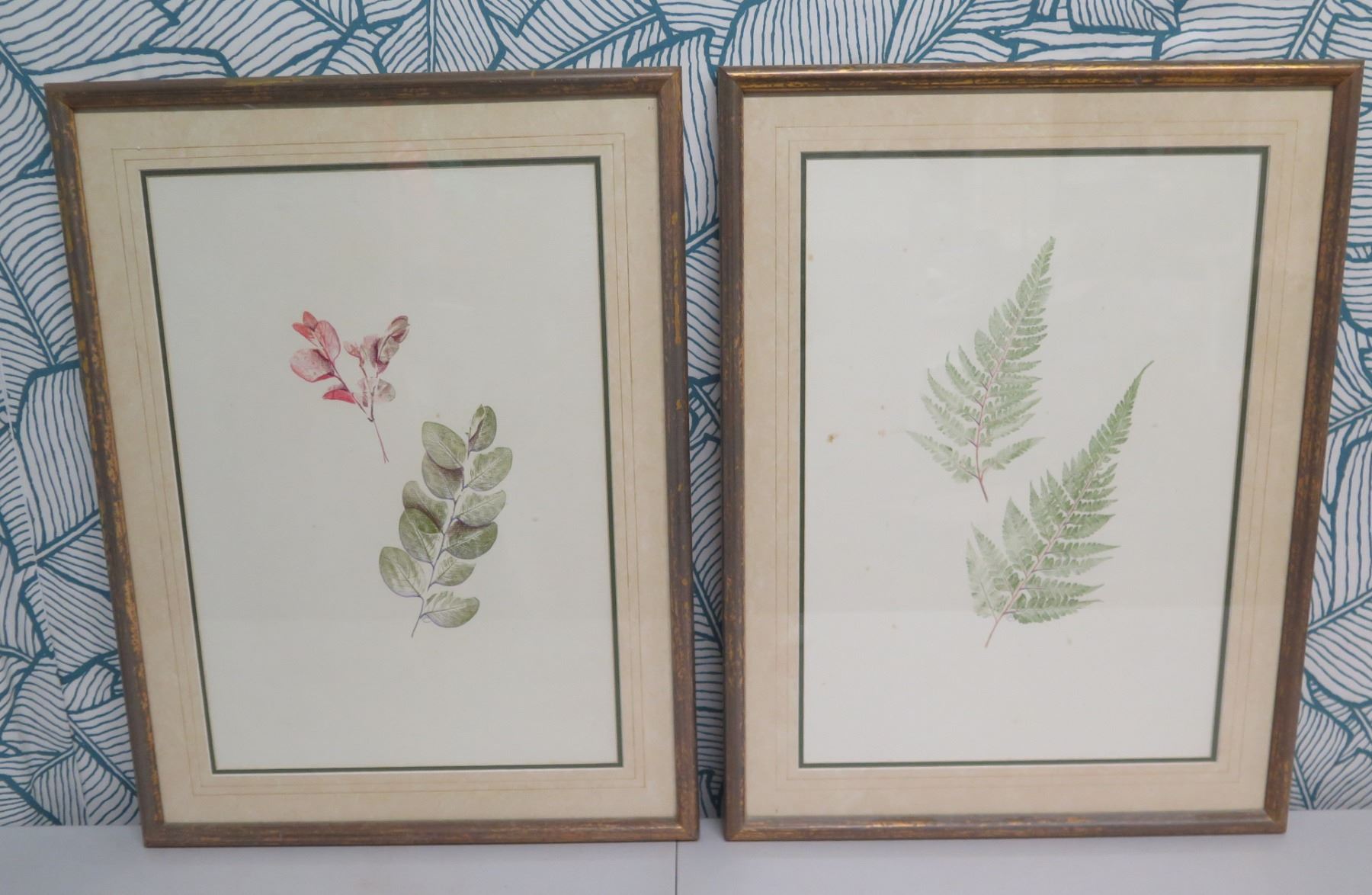 Qty 2 Leaf Artwork, Framed & Matted, 19"x25"