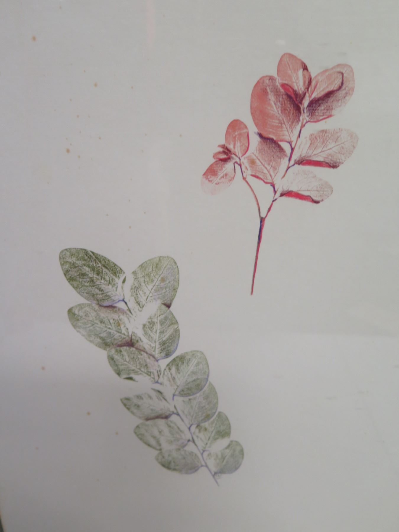Qty 2 Leaf Artwork, Framed & Matted, 19"x25"