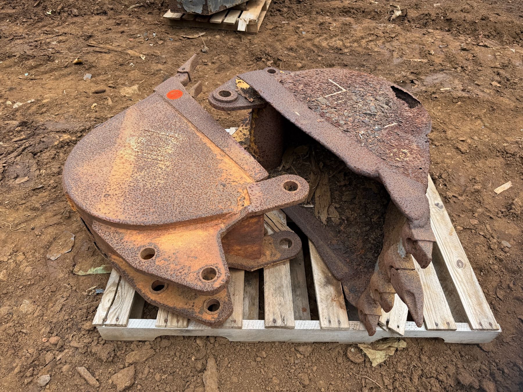 Qty 2 Machine Bucket Attachments w/ Teeth 15"W & 12"W