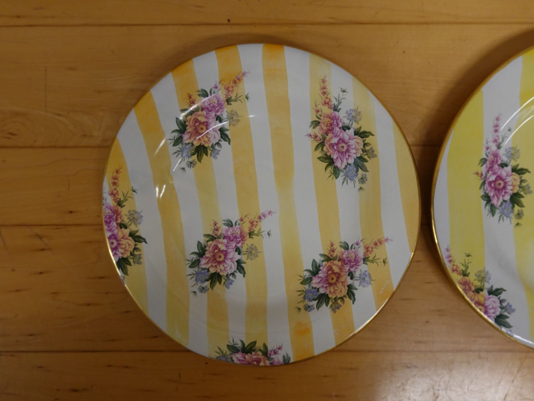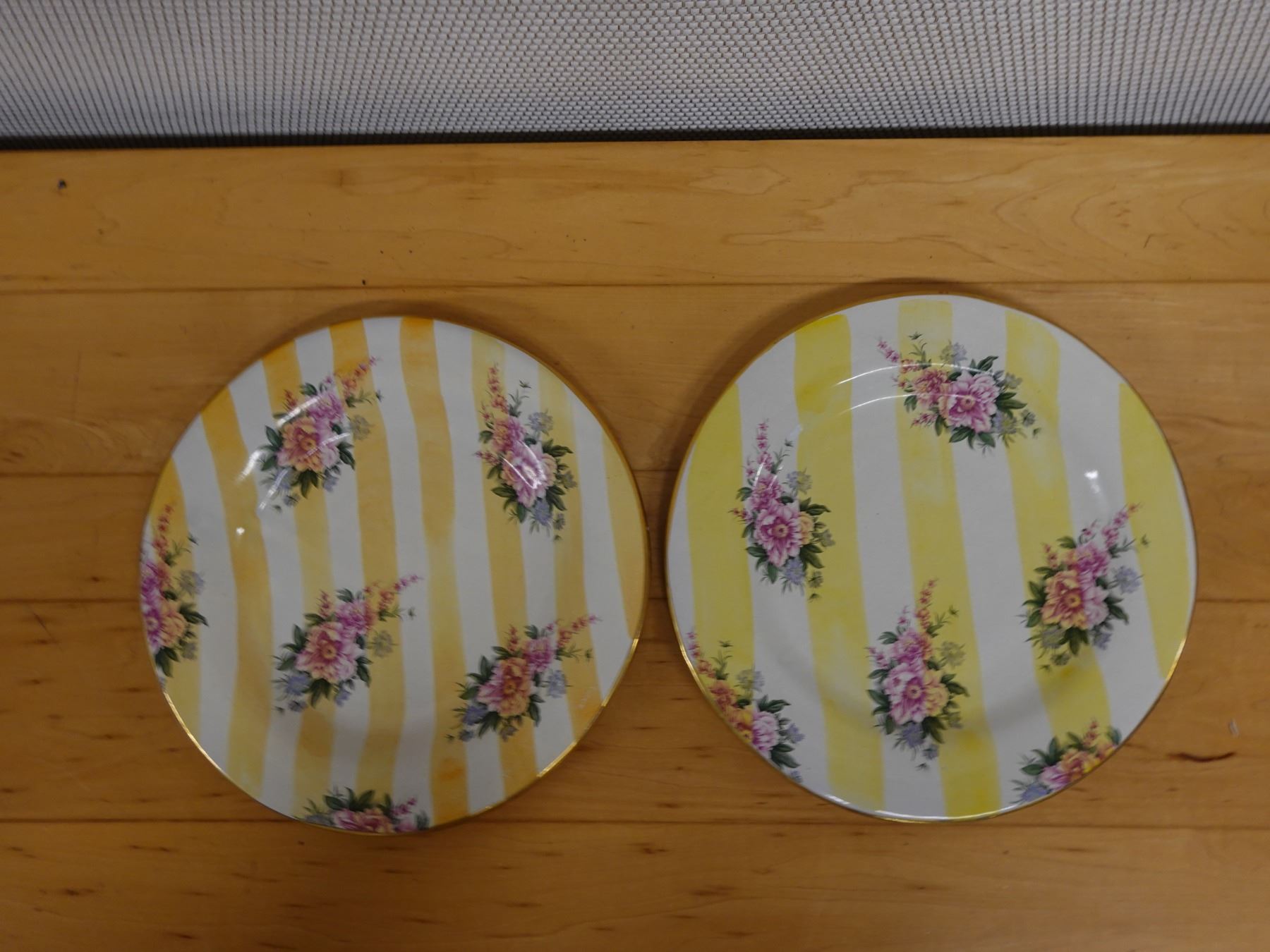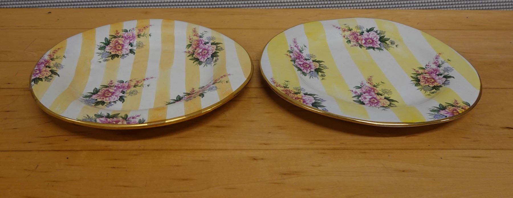 Qty 2 Mackenzie Childs Yellow Lemon Curd Striped Dinner Plates 11.25" Dia