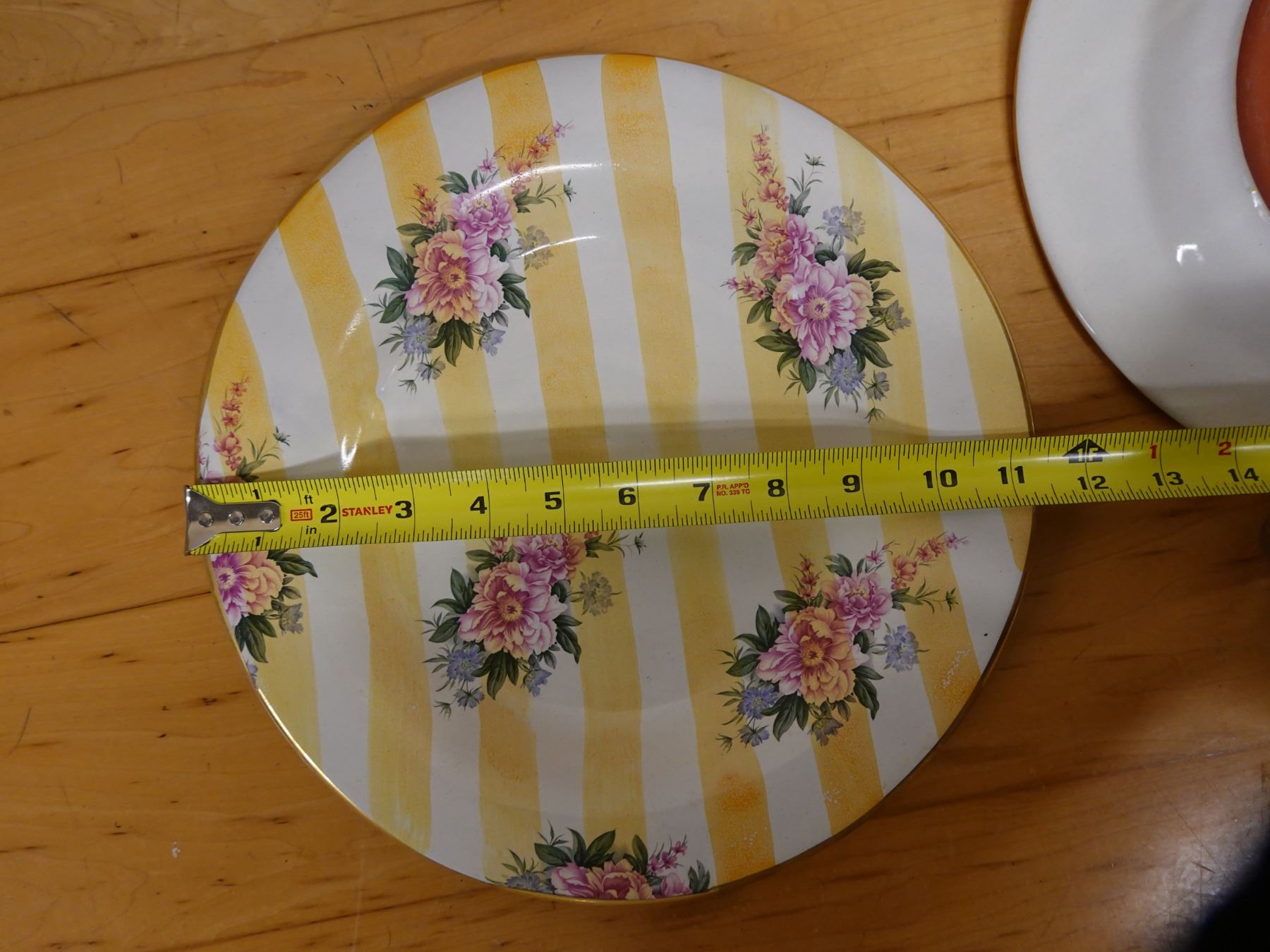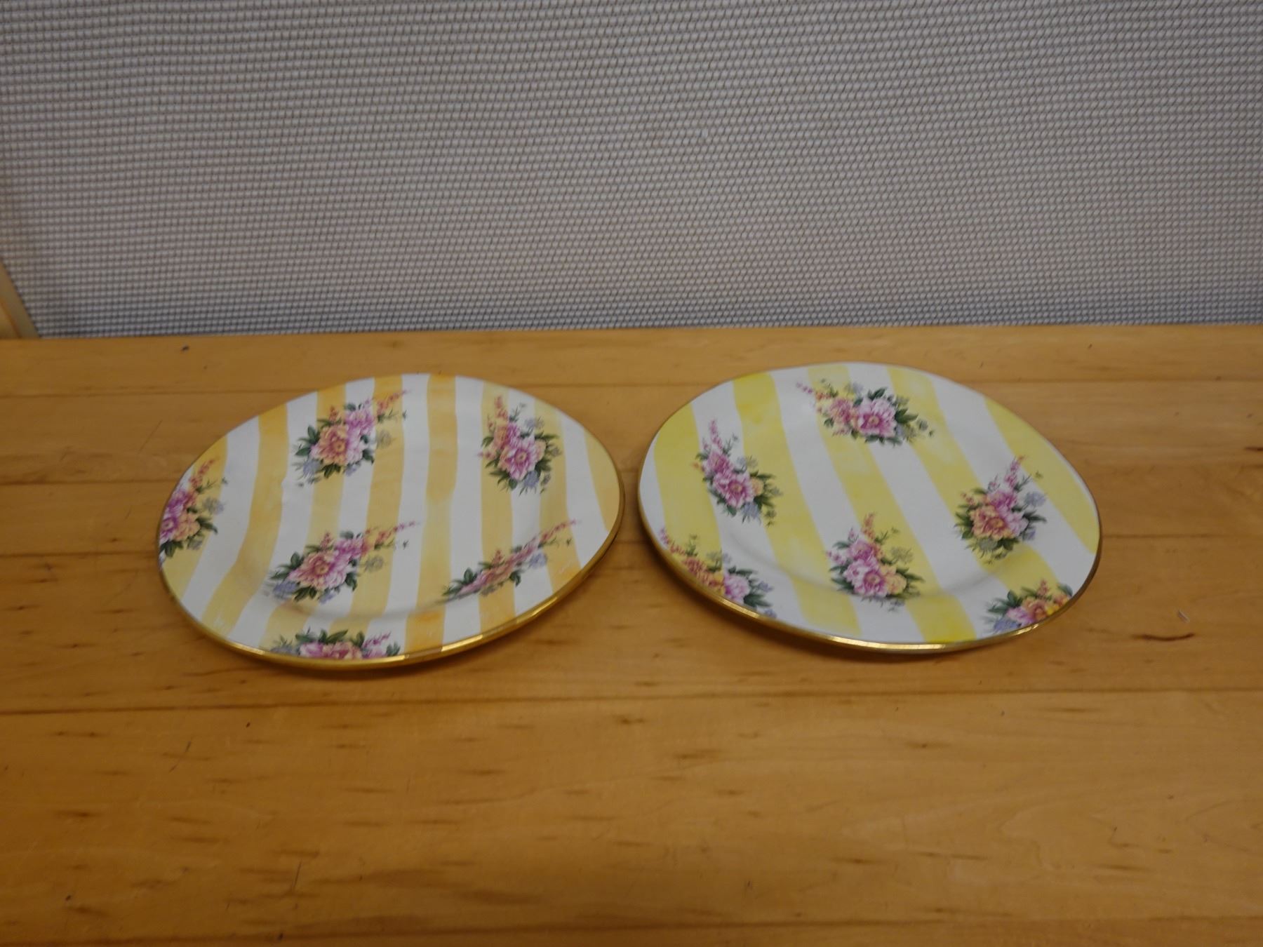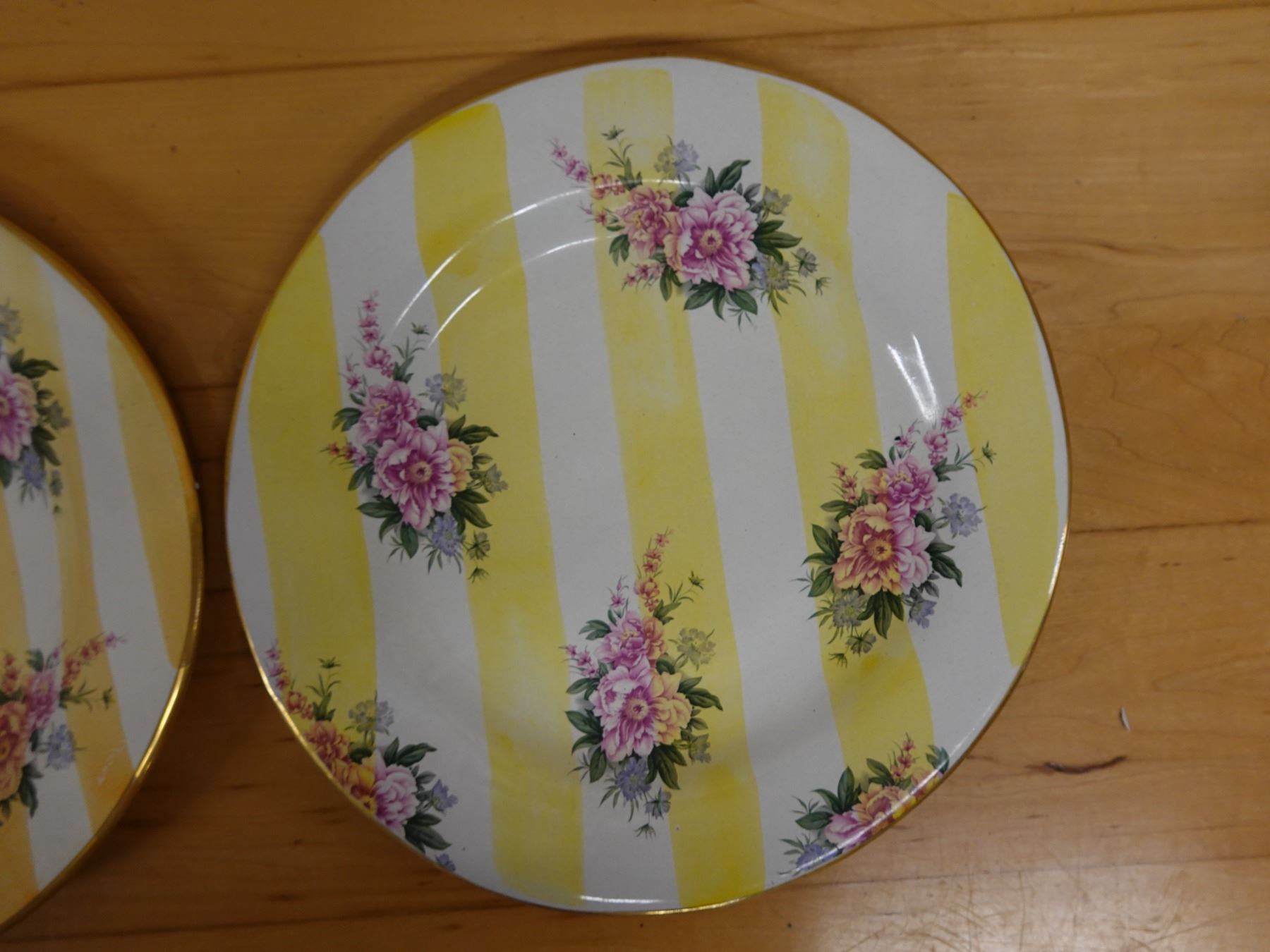 Qty 2 Mackenzie Childs Yellow Lemon Curd Striped Dinner Plates 11.25" Dia