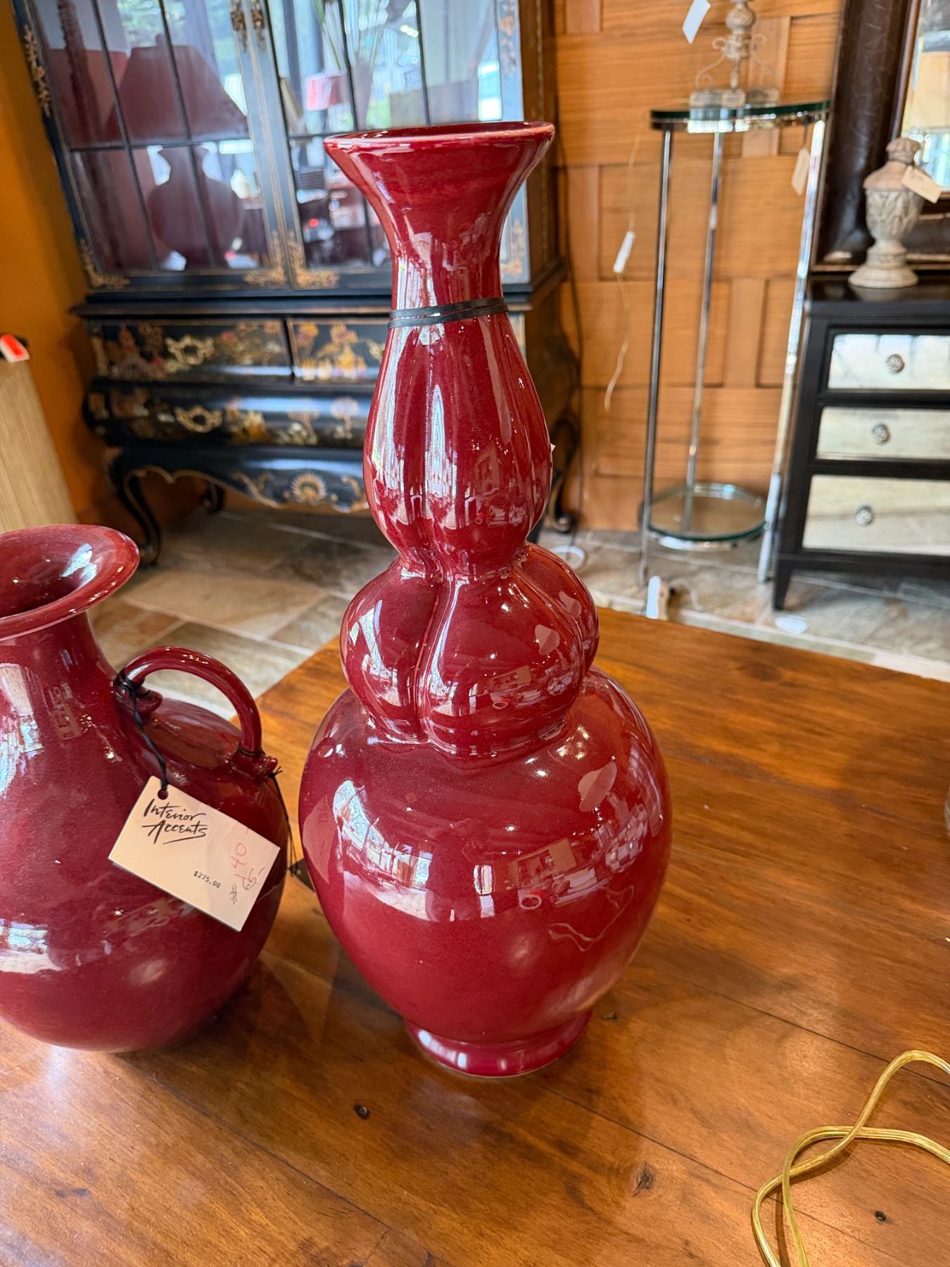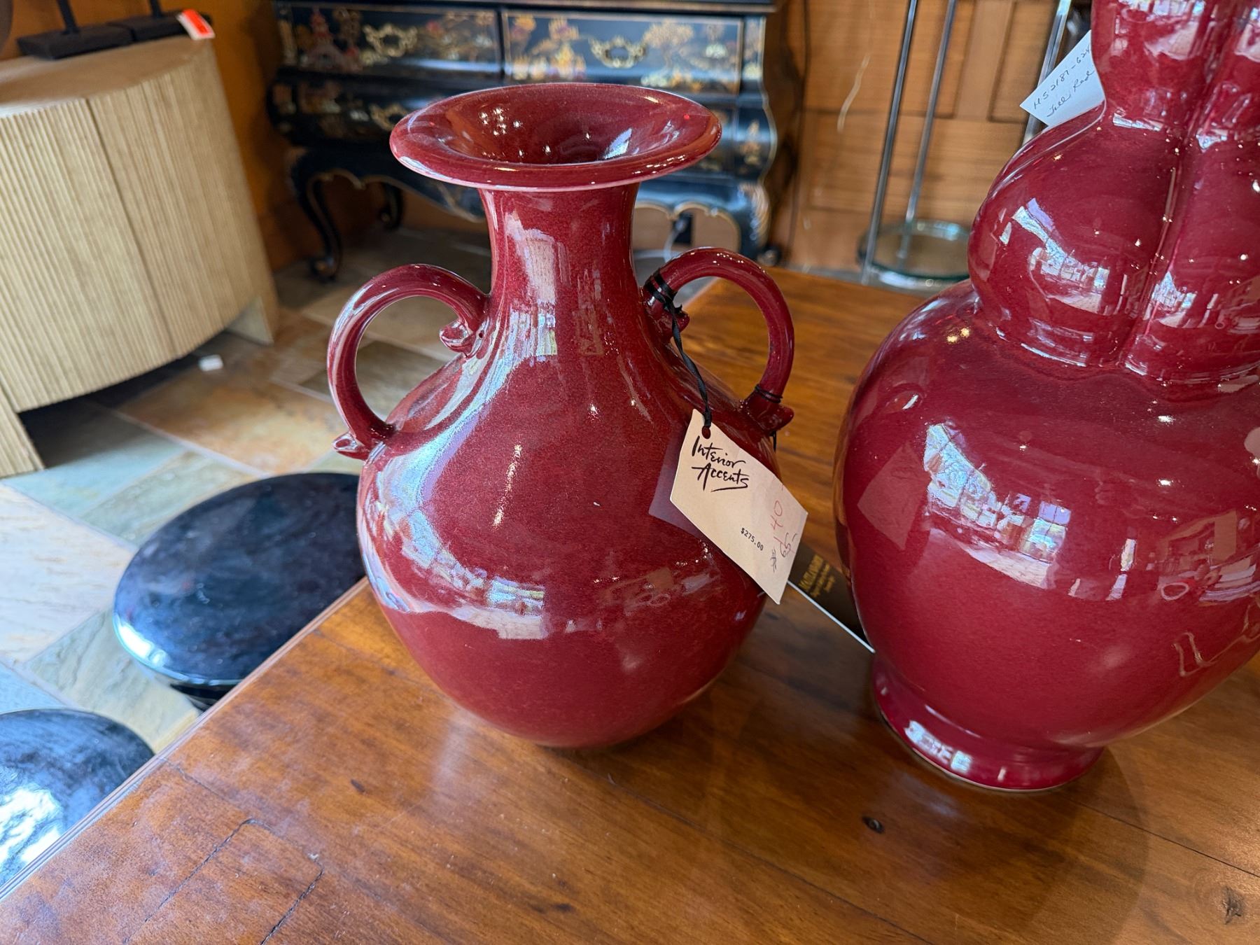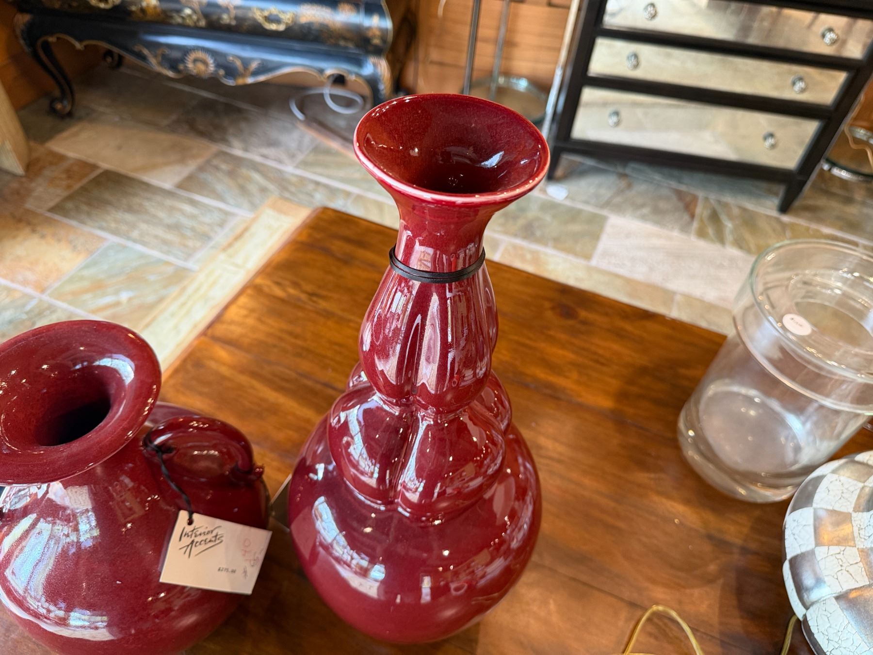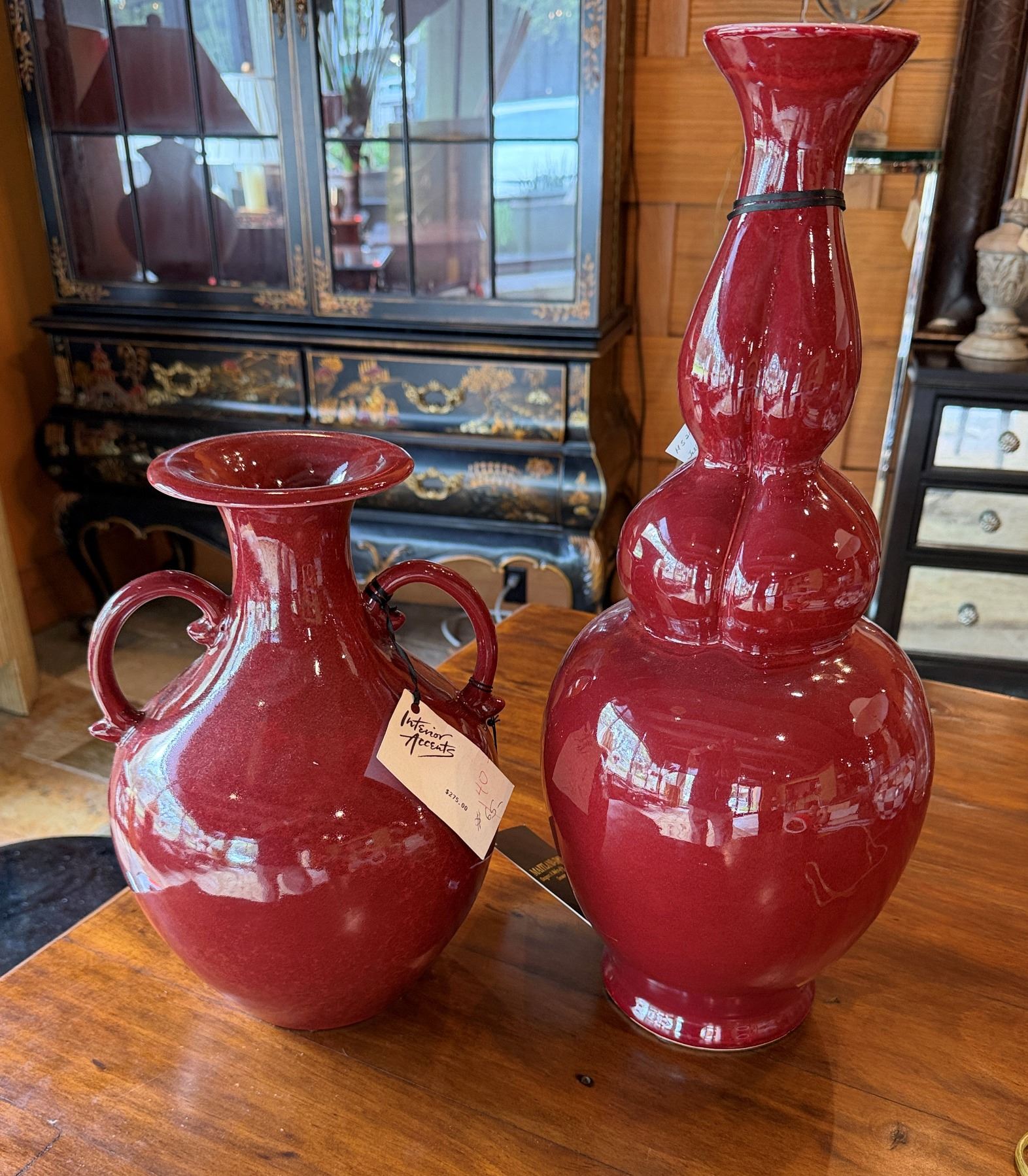 Qty 2 Maitland-Smith Decorative Red Vases, Misc Styles & Sizes