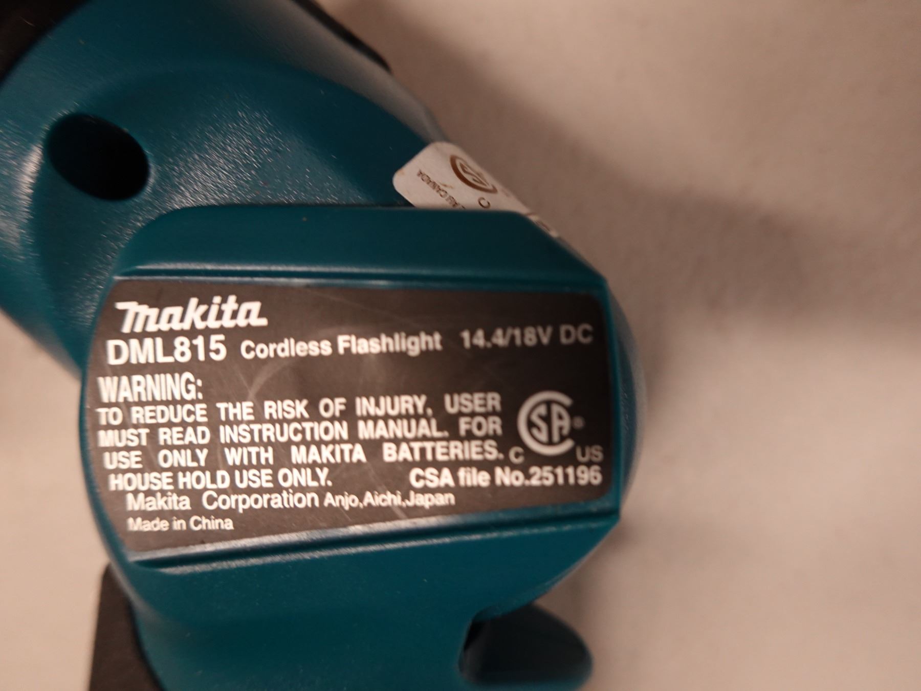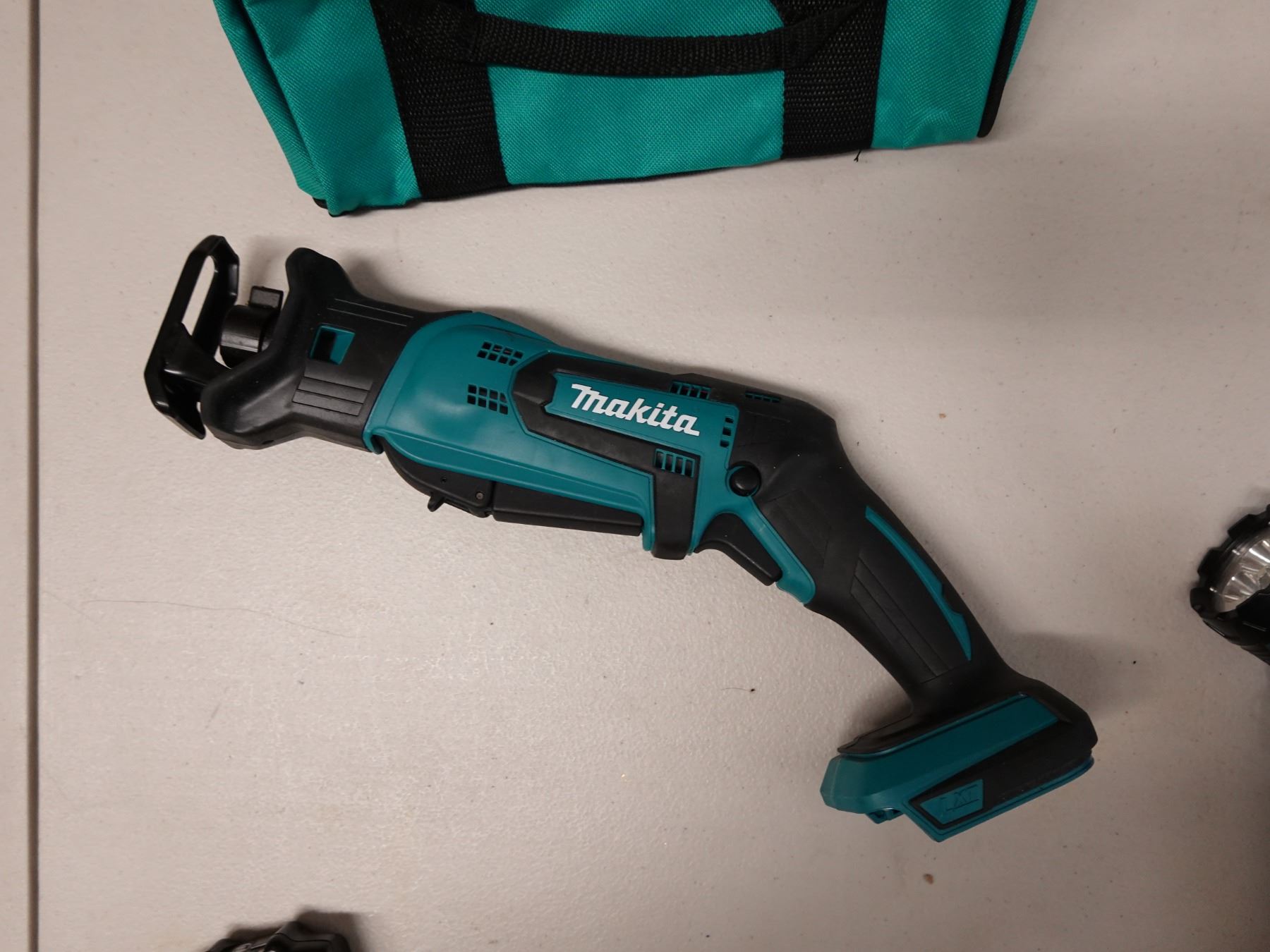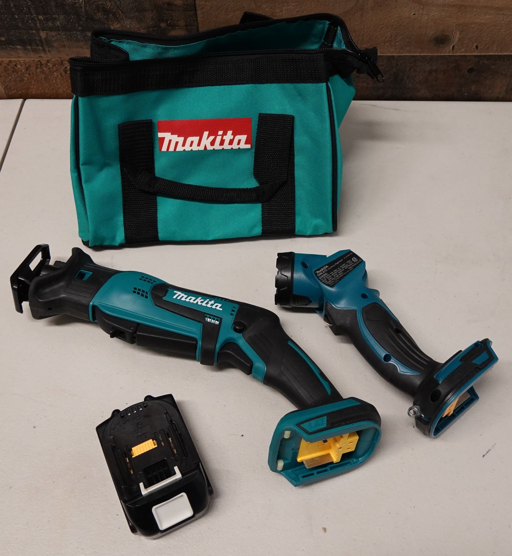 Qty 2 Makita Power Tools, Case & 1 Battery: XRJ01 Reciprocating Saw & DML815 Flashlight