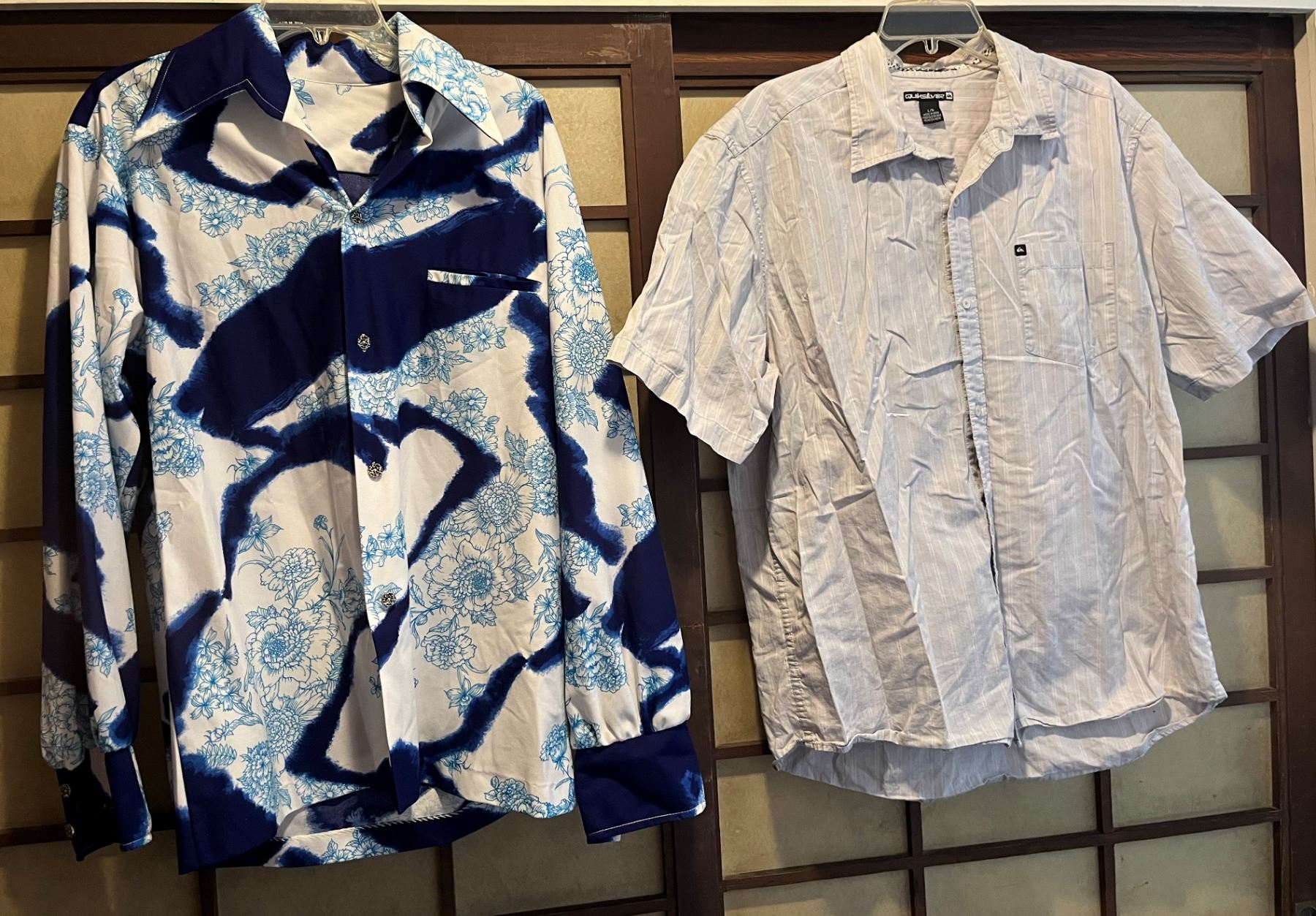 Qty 2 Men's Aloha Shirts Size Large (44" chest): Quiksilver & Vintage Long Sleeve (pre-owned) Note: These are preowned and may have flaws. Some size tags have been removed. Items are measured flat & doubled.