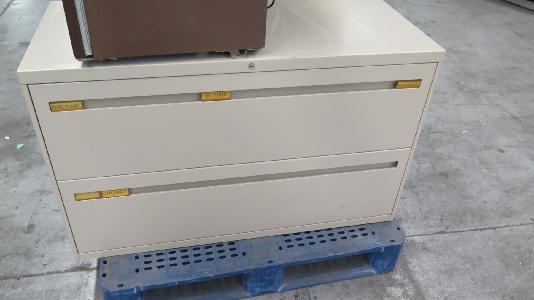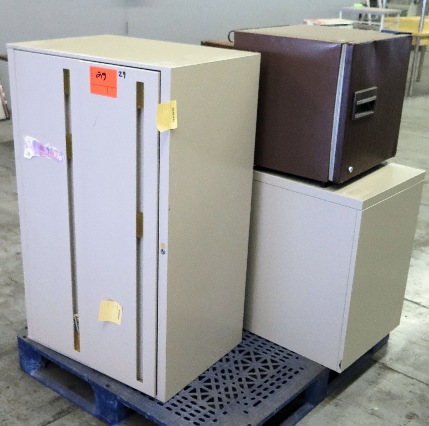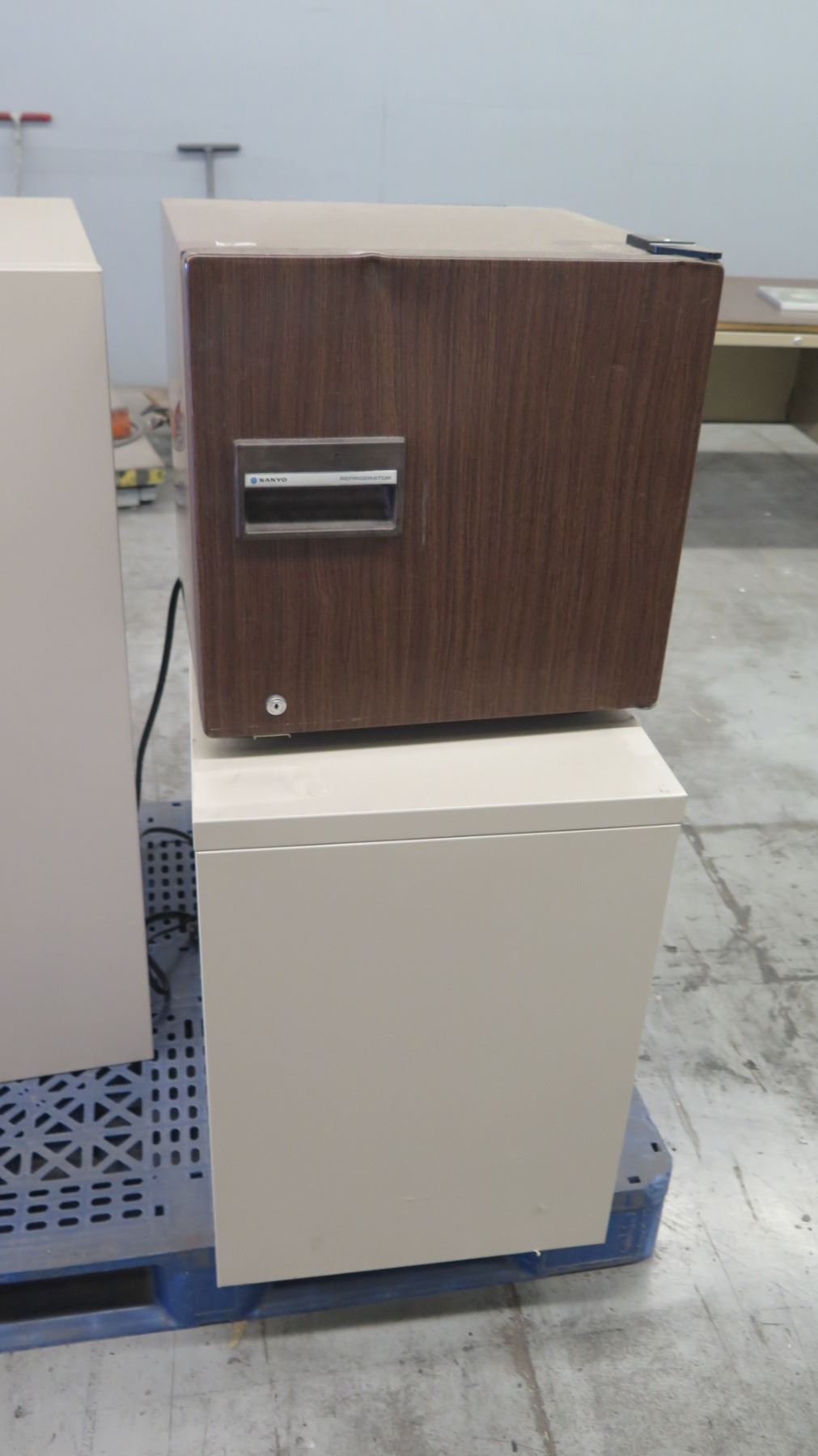 Qty 2 Metal 2-Drawer Lateral File Cabinets and Sanyo Mini Refrigerator