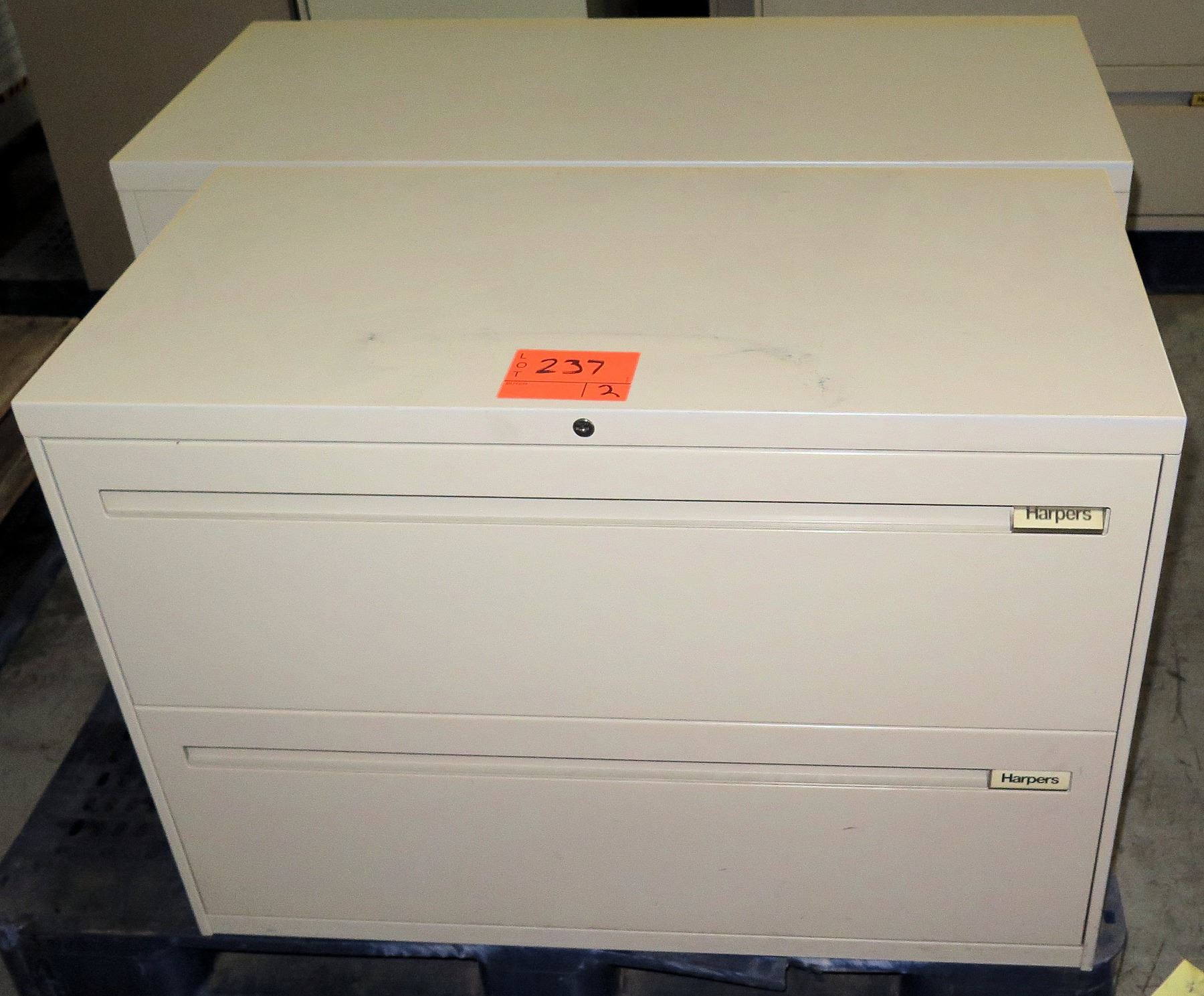 Qty 2 Metal 2 Drawer Standing Lateral Legal Filing Cabinets