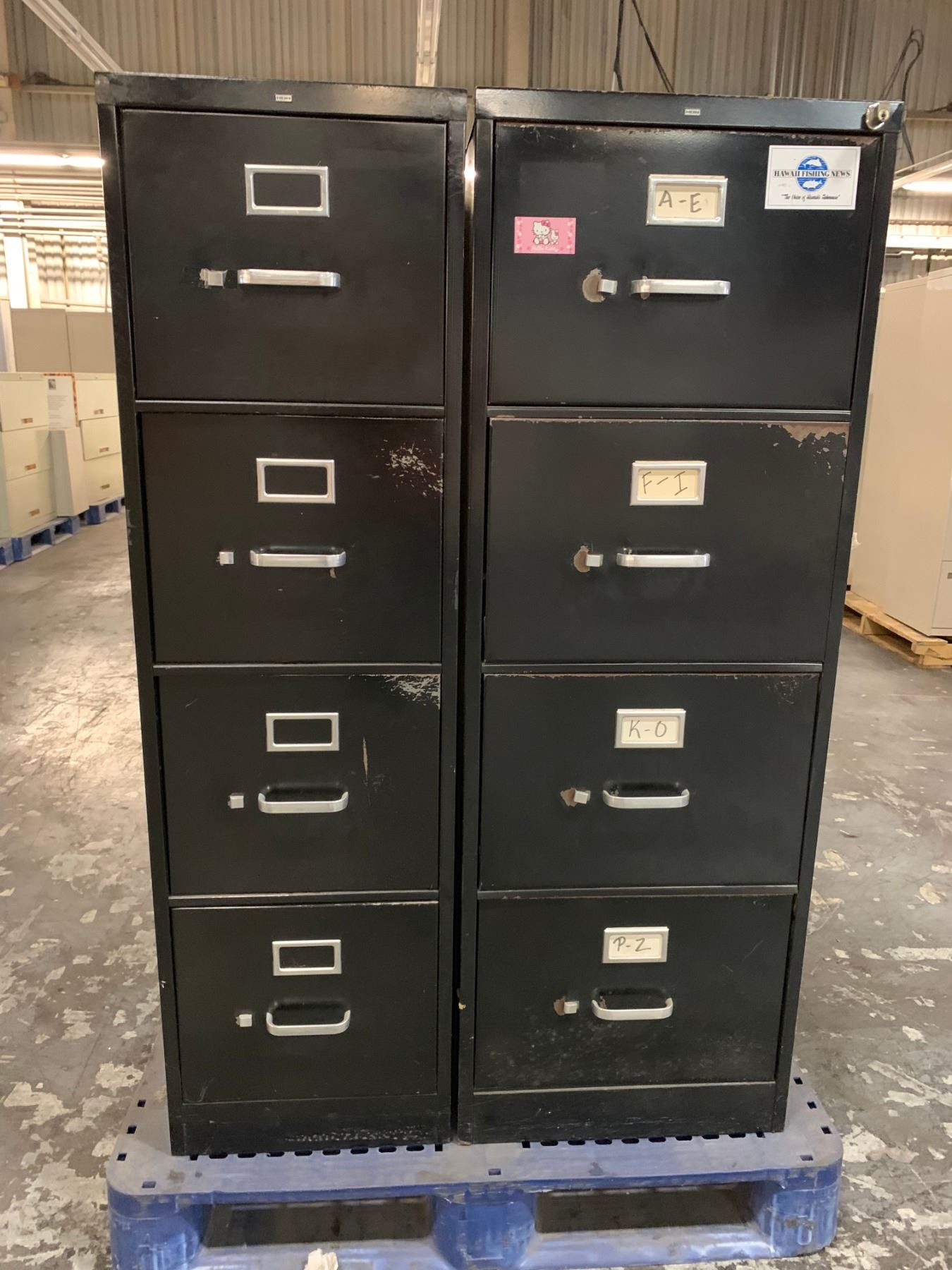 Qty 2 Metal 4 Drawer Standing Black Filing Cabinets