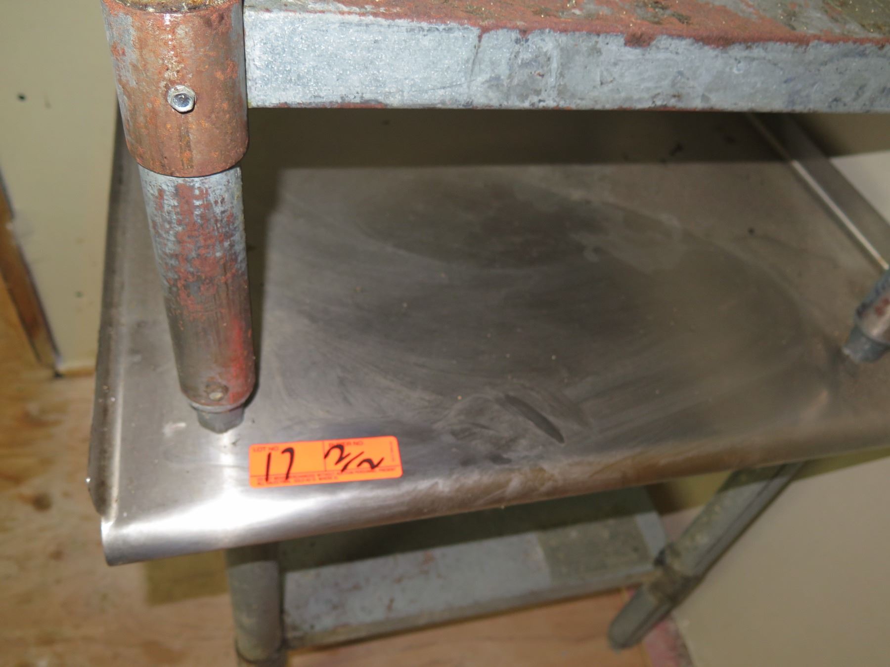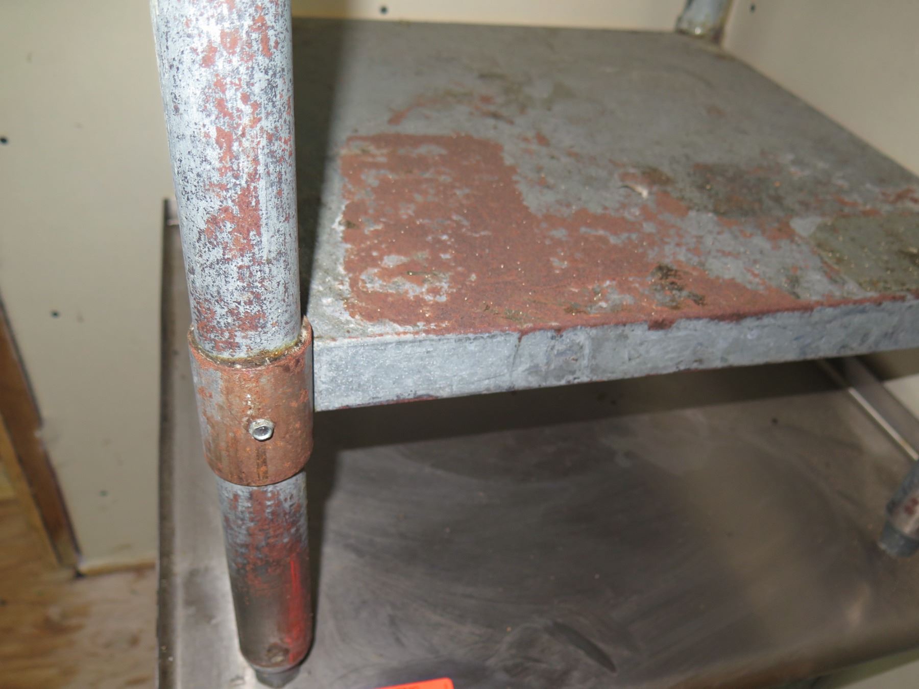 Qty 2 Metal Corner Tables w/ Splashguards & Undershelves