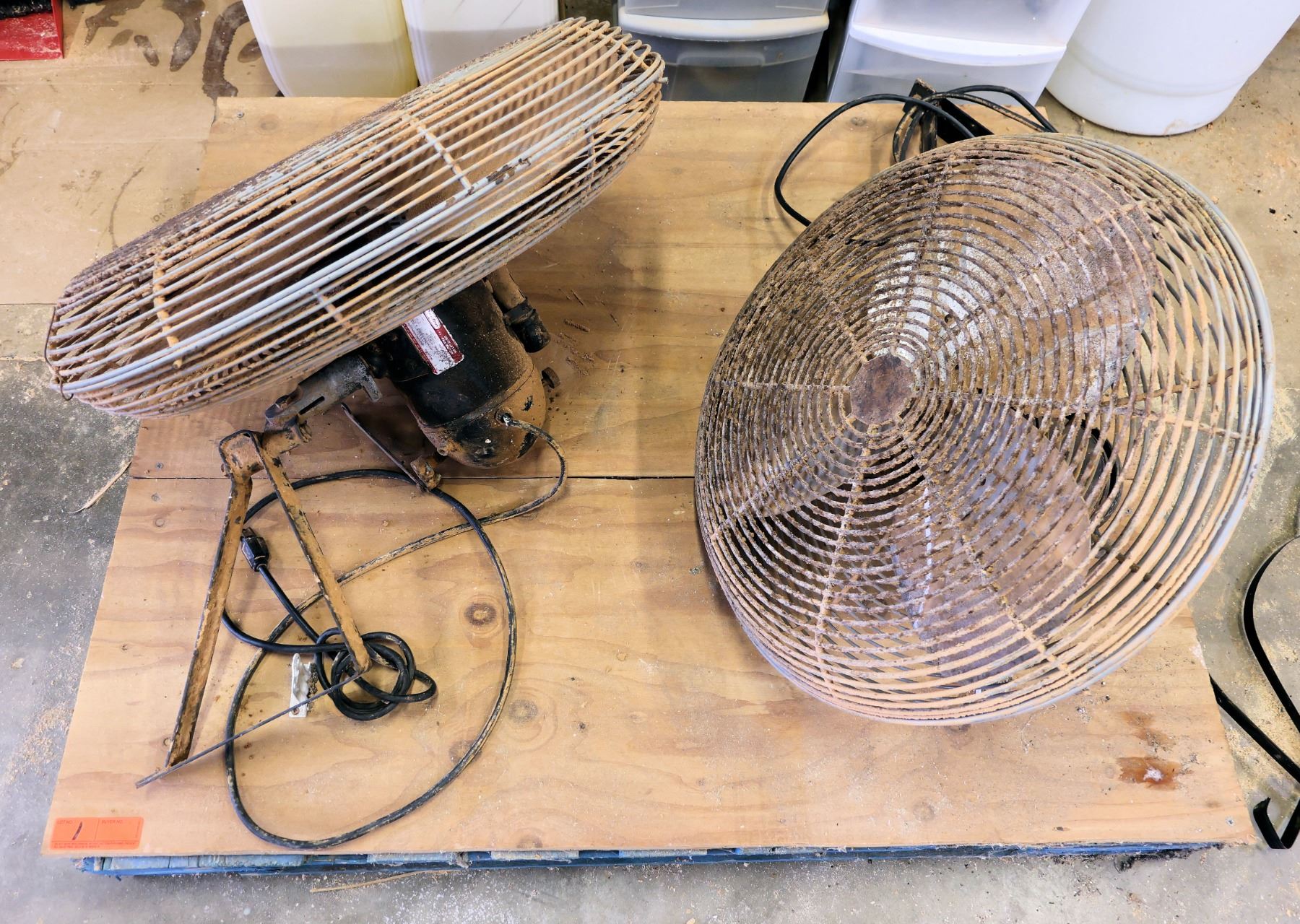 Qty 2 Metal Dayton Shop Fans 20" & 24' Dia w/ Mounts (works)