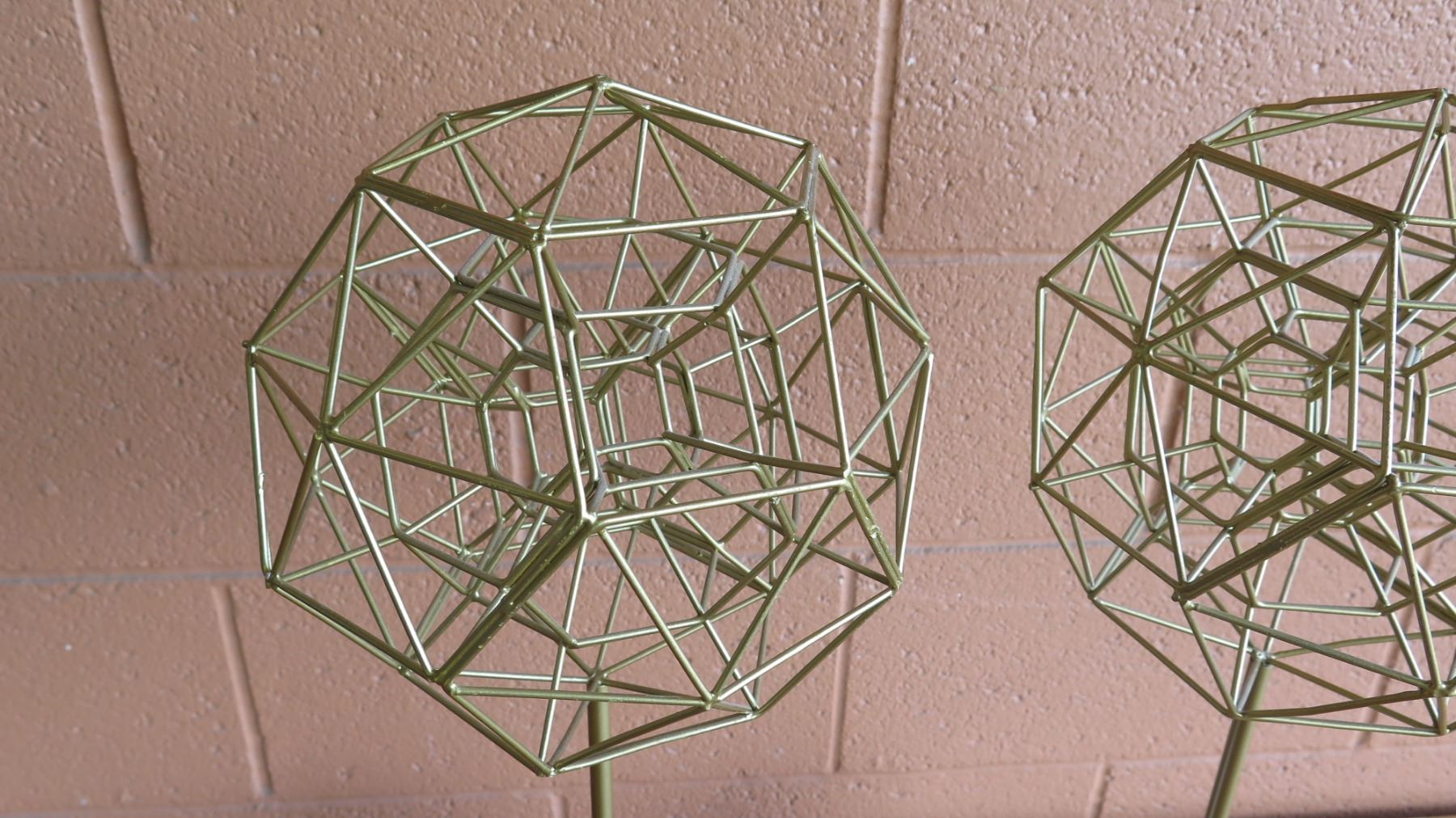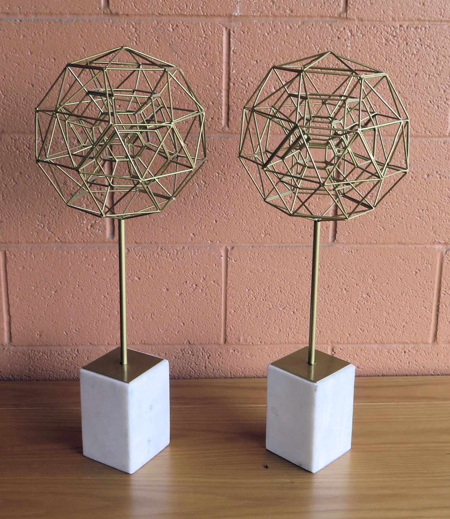 Qty 2 Metal Geometric Accent Décor on Stone Base, 24"H