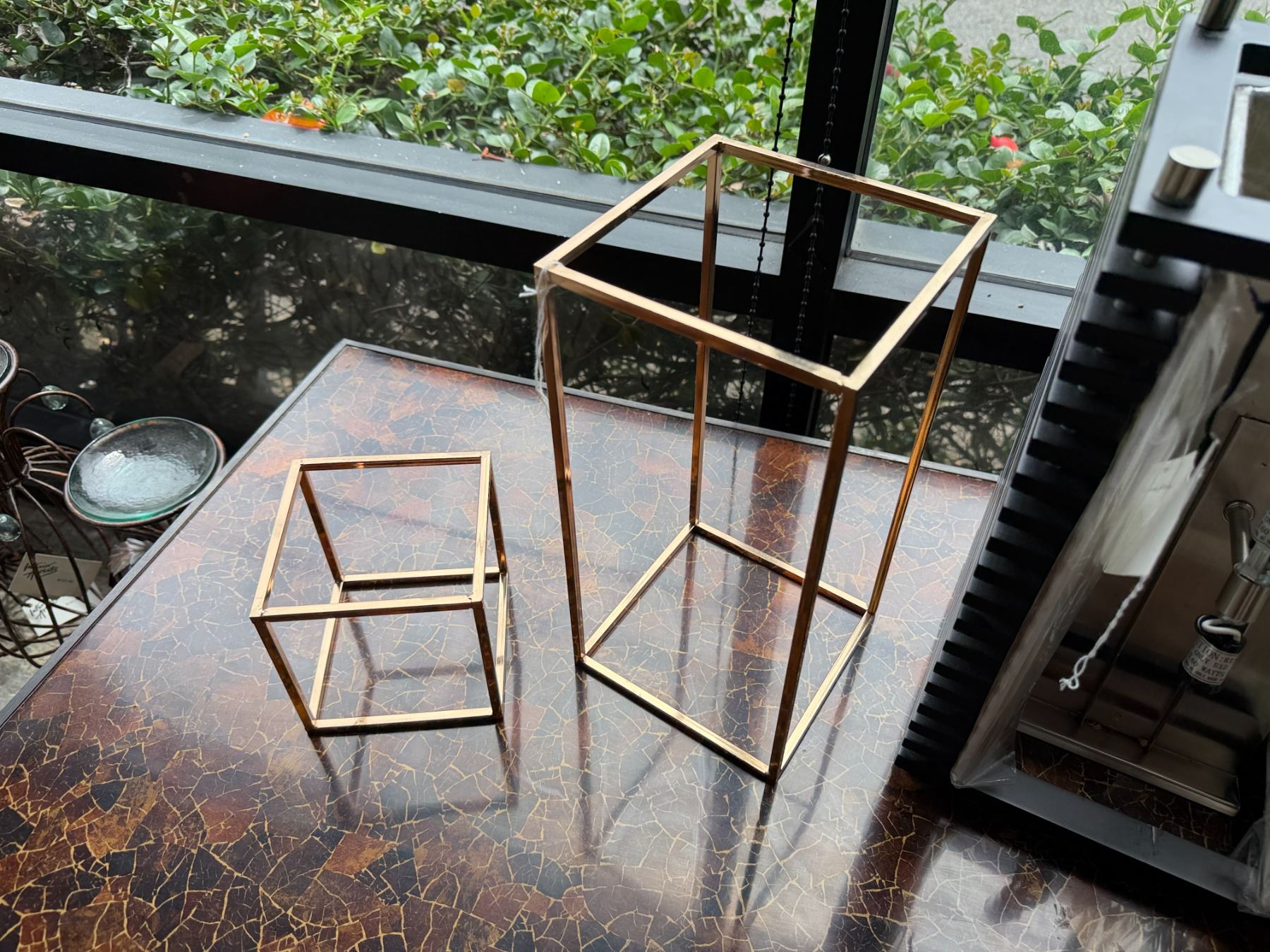 Qty 2 Metal Rectangular Stands & Kimura Sconce, Misc Sizes