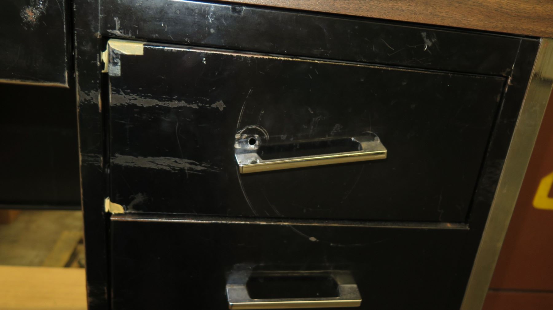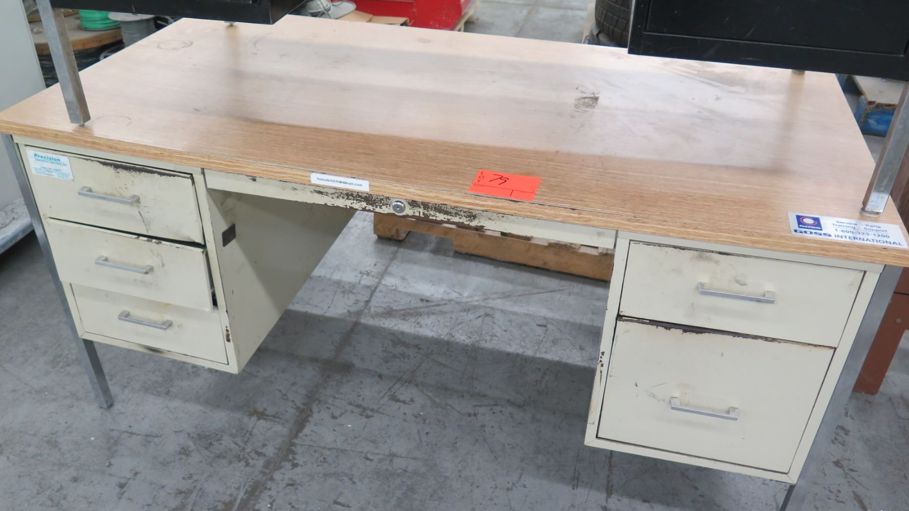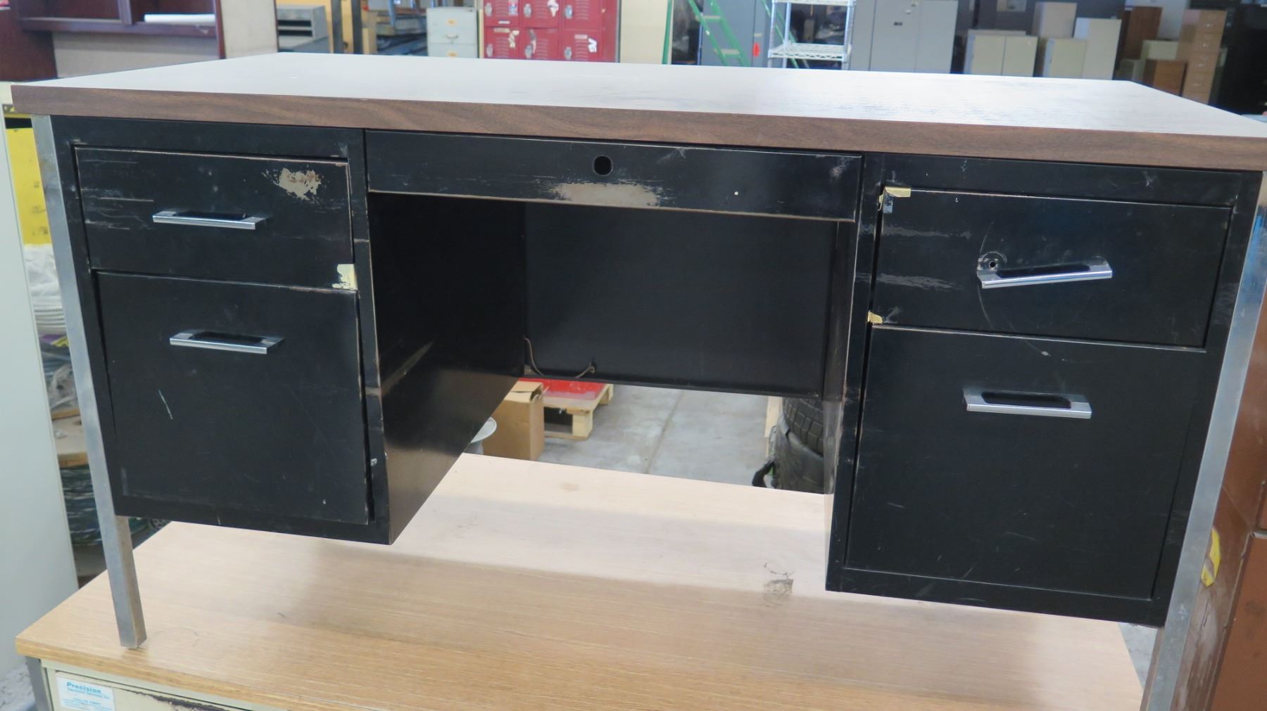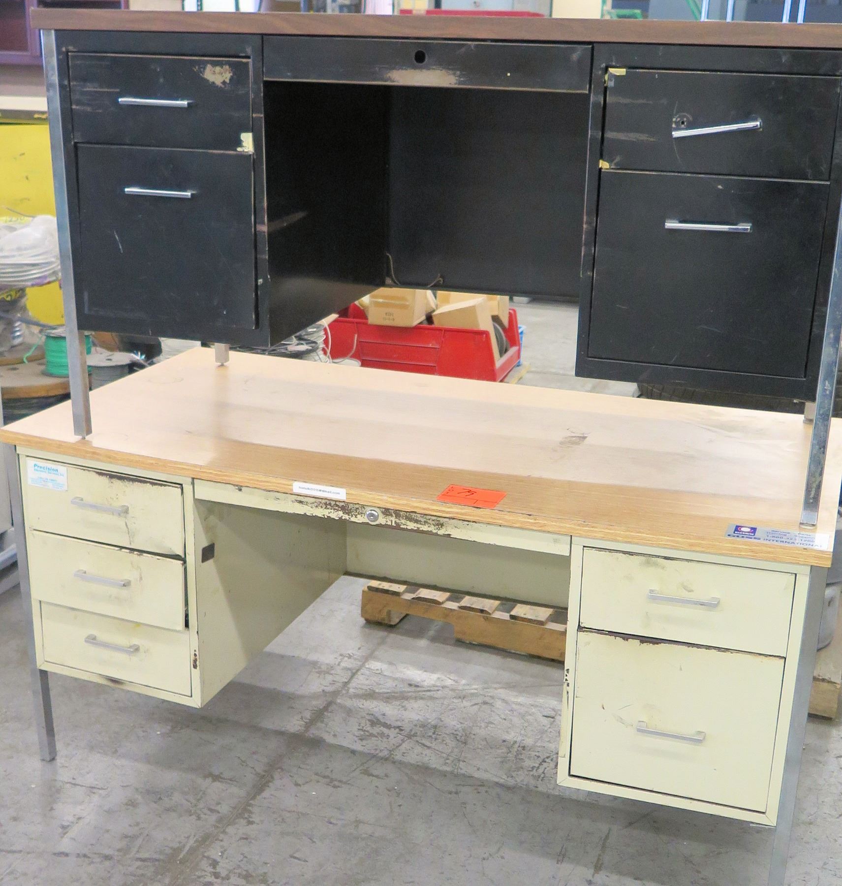 Qty 2 Metal Shop Desks - 1 White & 1 Black w/ Drawers