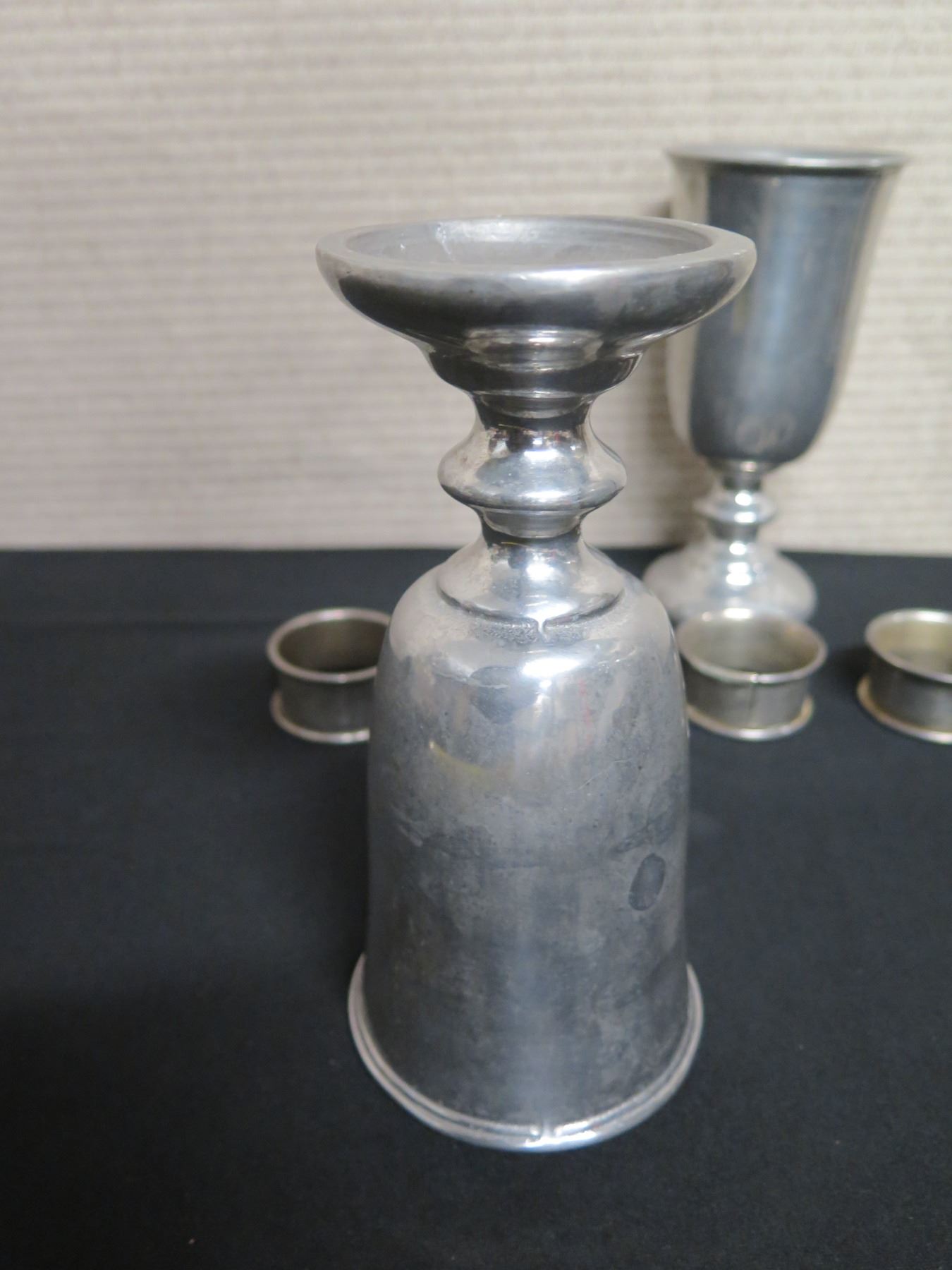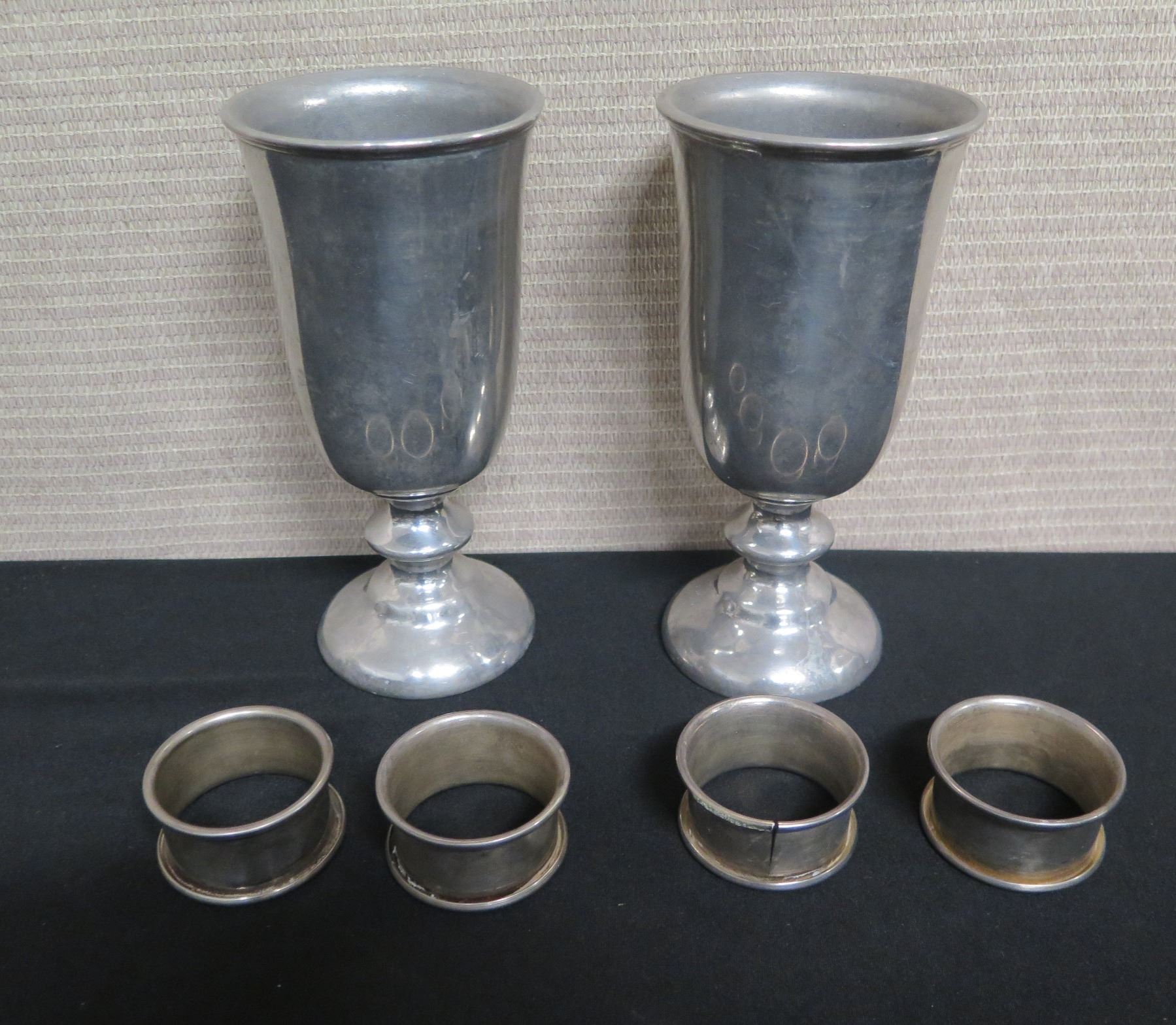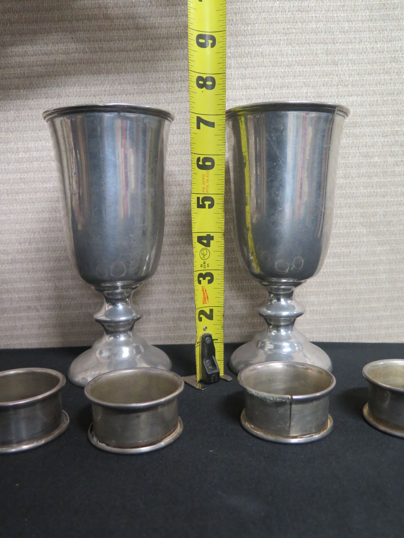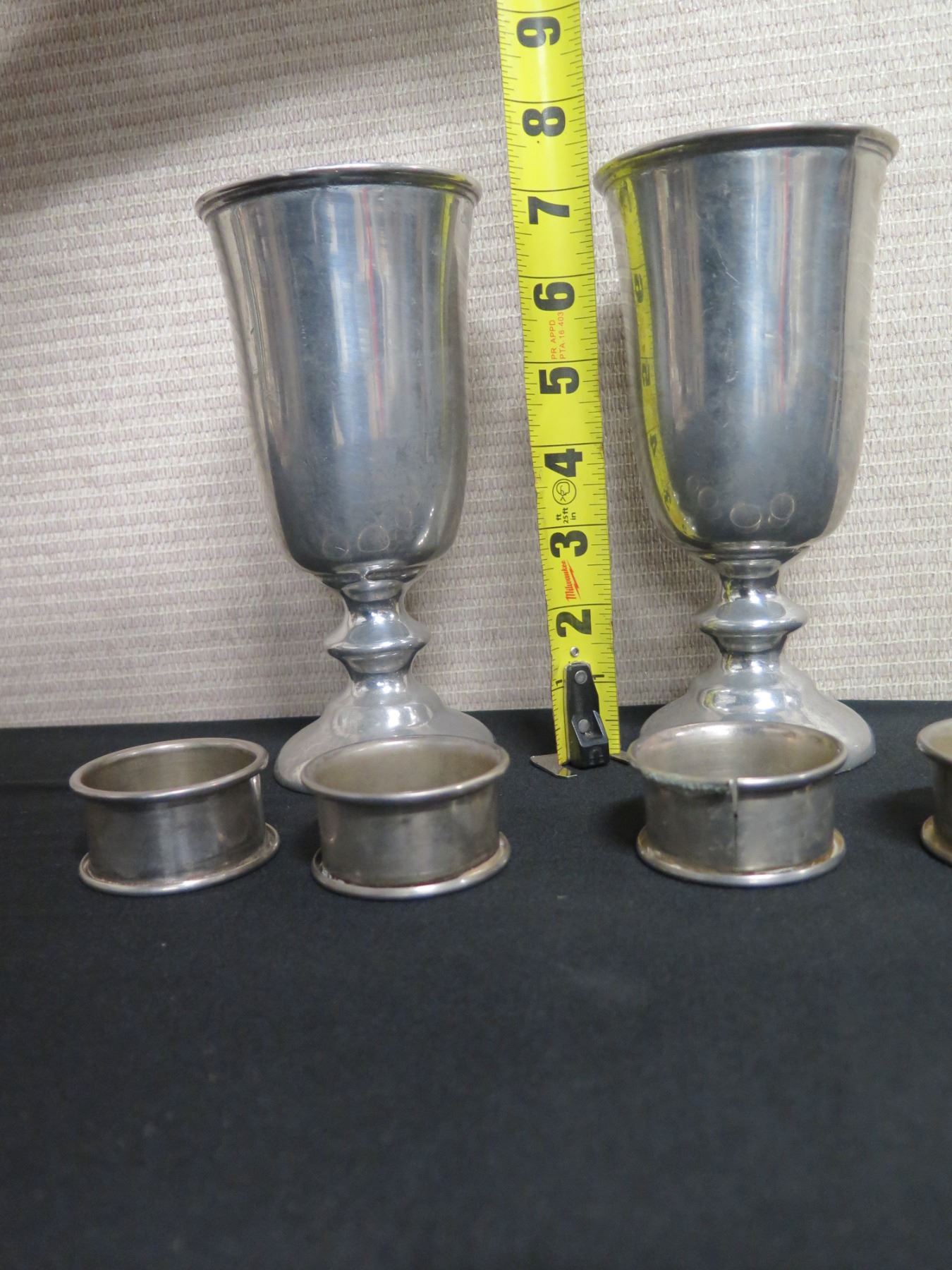 Qty 2 Metal Stemmed Beverage Ware 7"H Marked USA & 4 Napkin Rings
