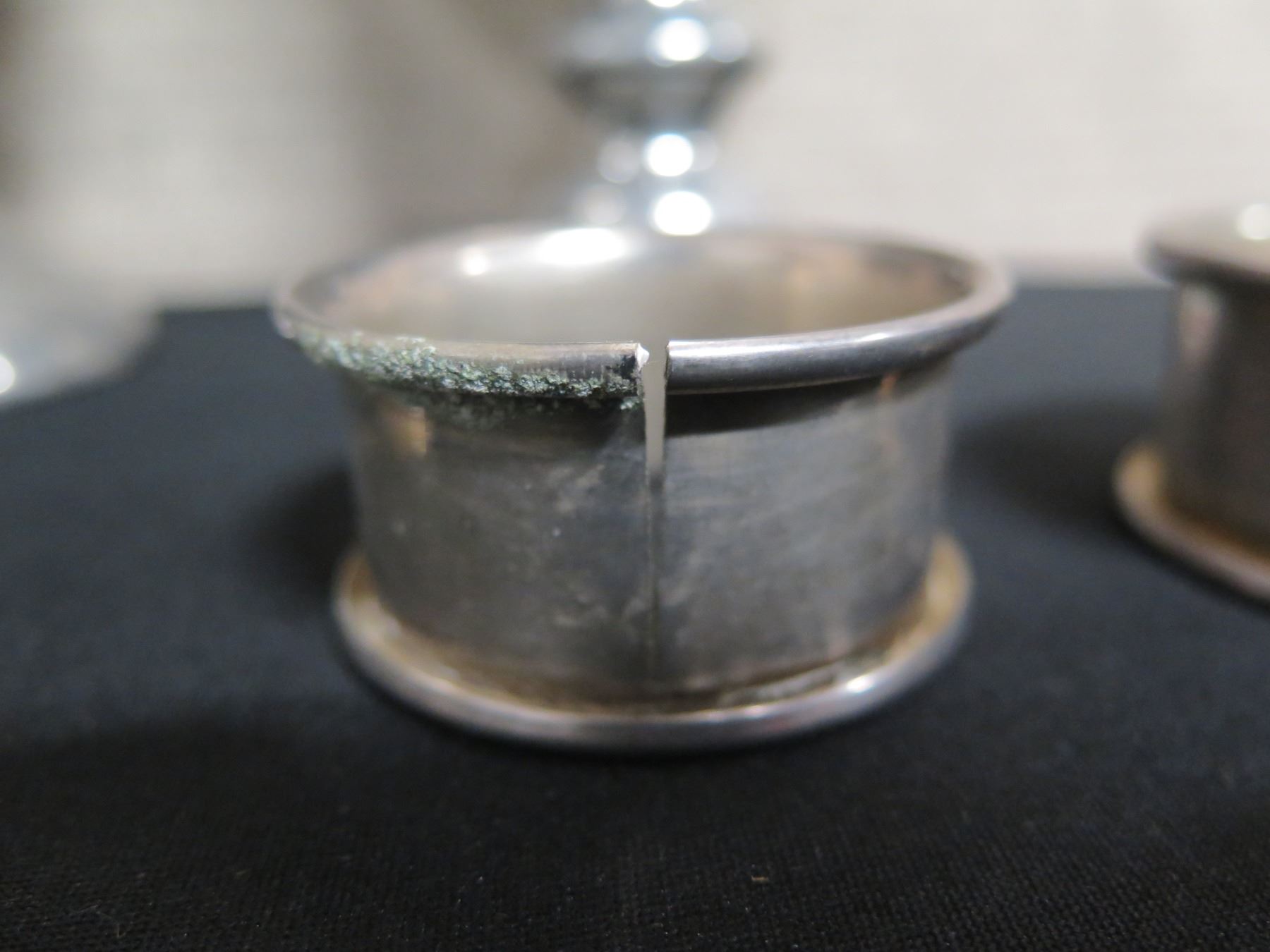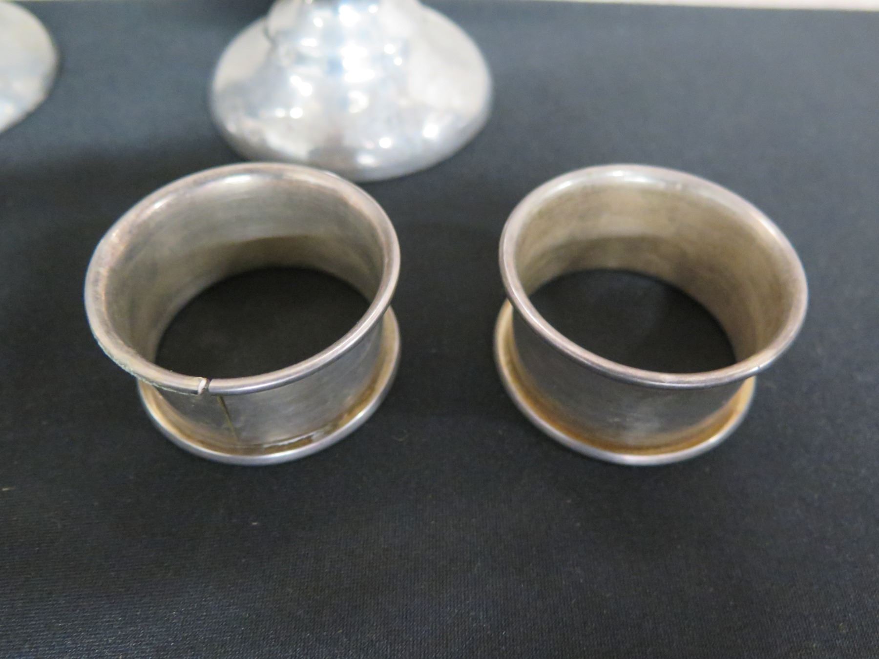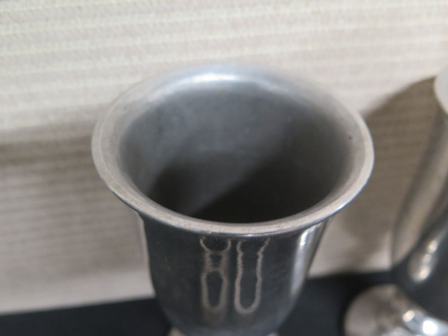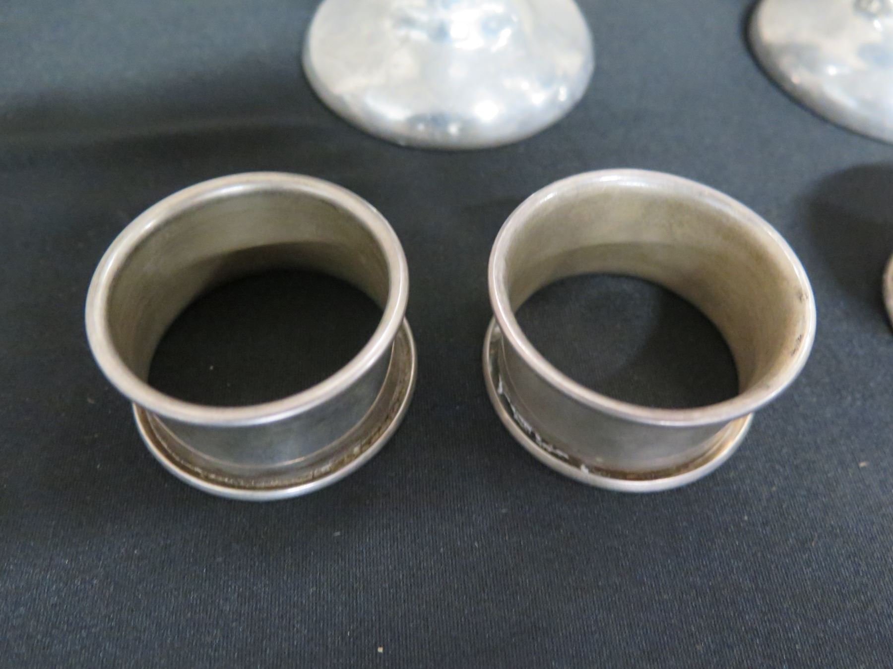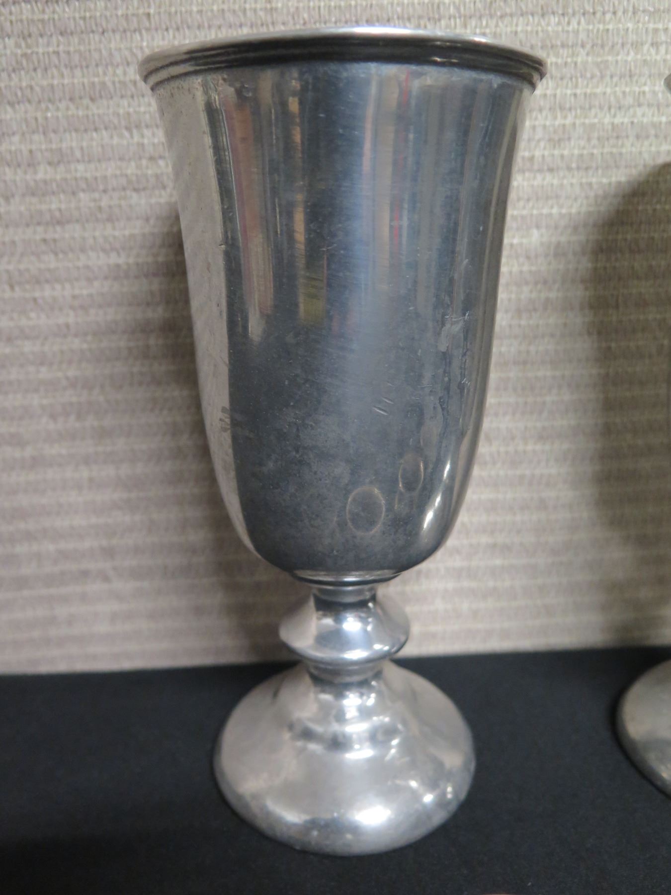 Qty 2 Metal Stemmed Beverage Ware 7"H Marked USA & 4 Napkin Rings