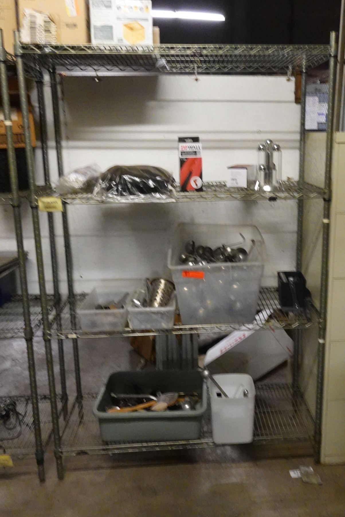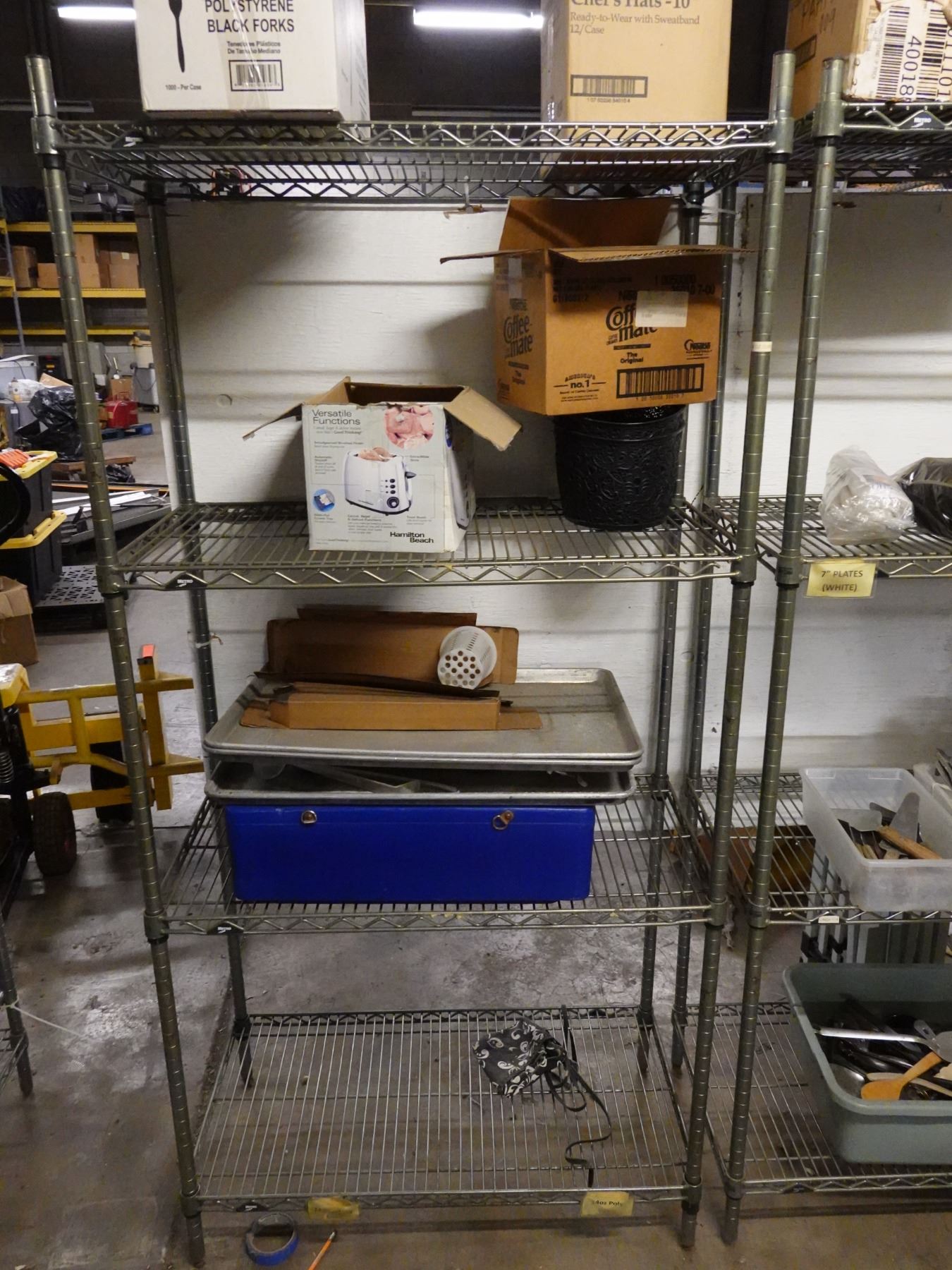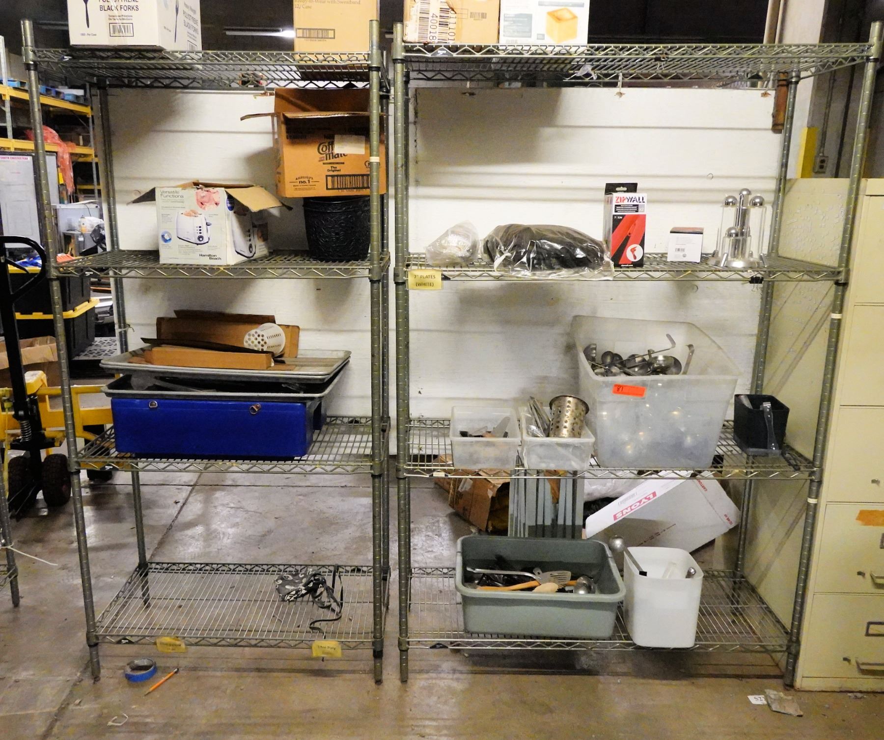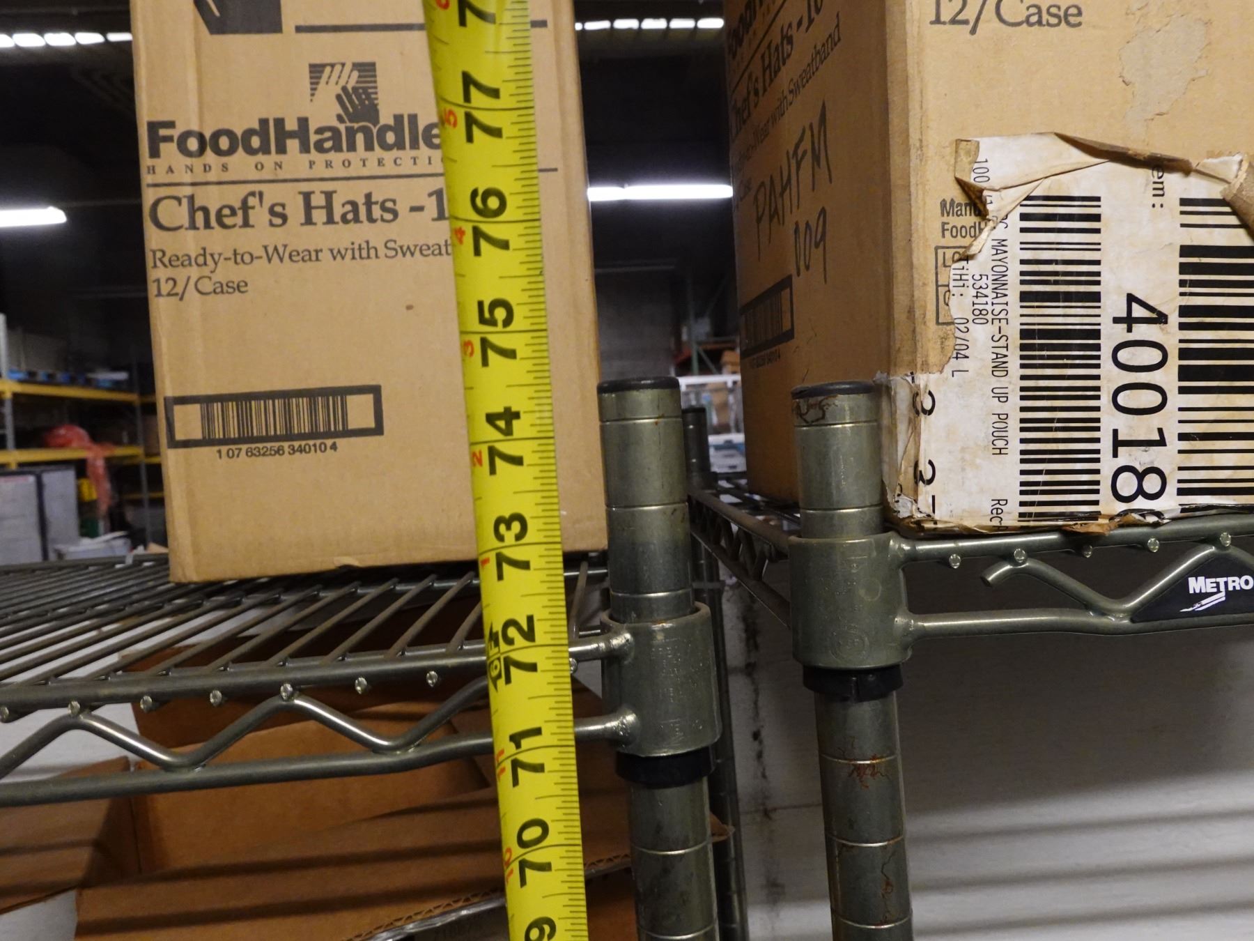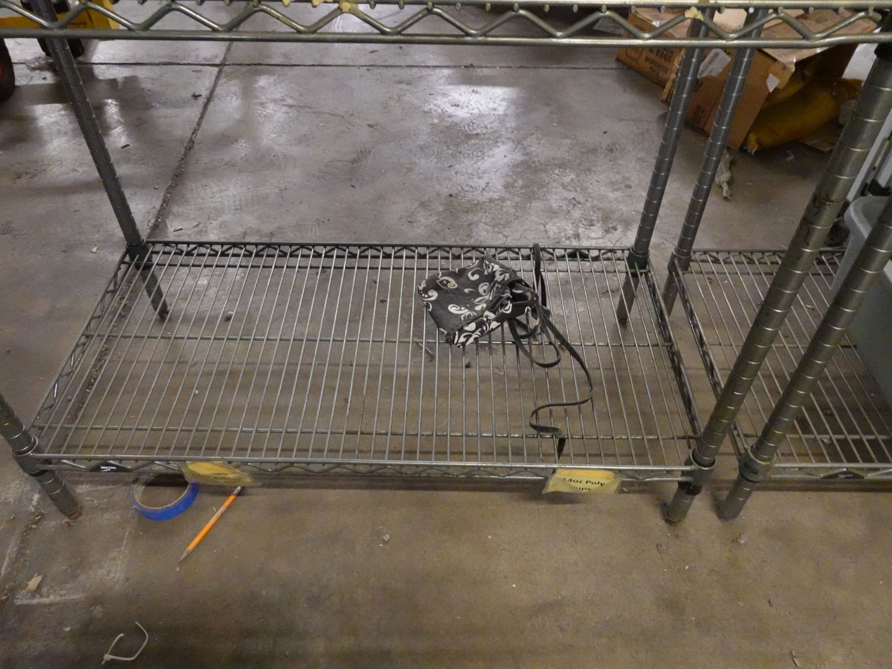Qty 2 Metro Metal Mesh Shelving Units 49" x 18" x 74"H & 35" x 18" x 74"H (contents not included).