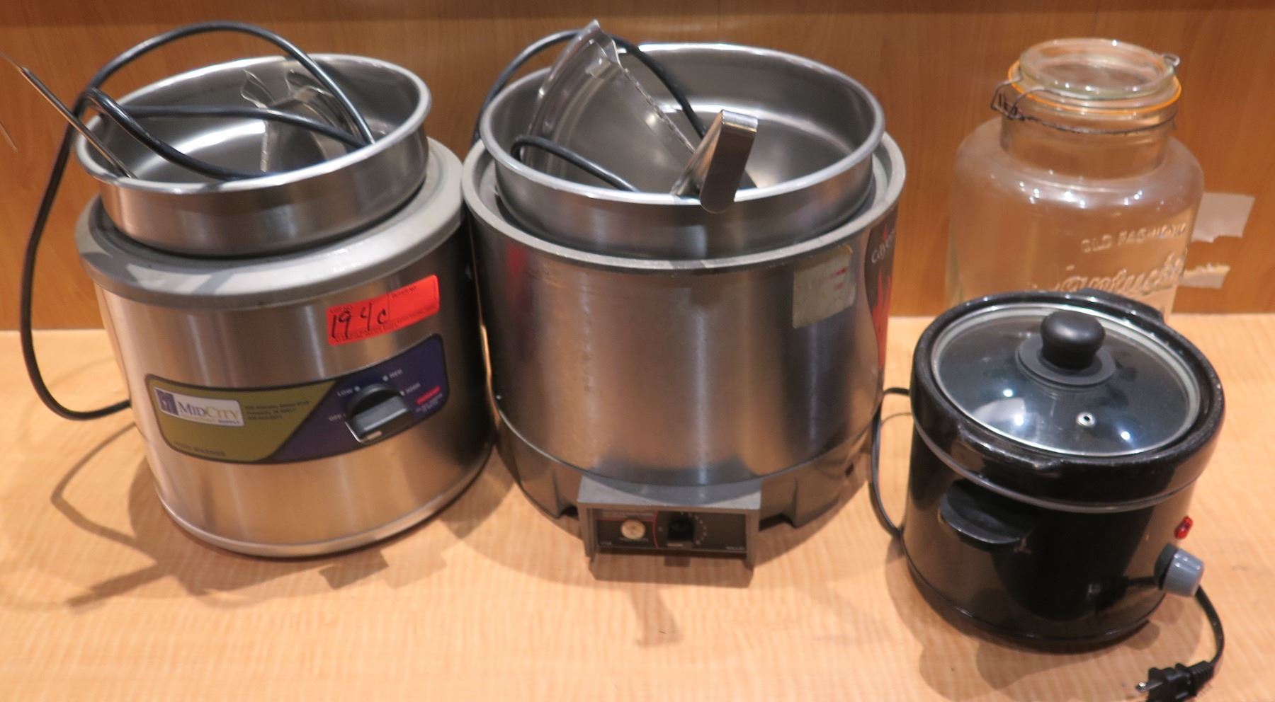 Qty 2 MidCity & Cayenne Food Warmers w/ Tureens, Walmart MD-YHJ20DM Slow-Cooker & Jar