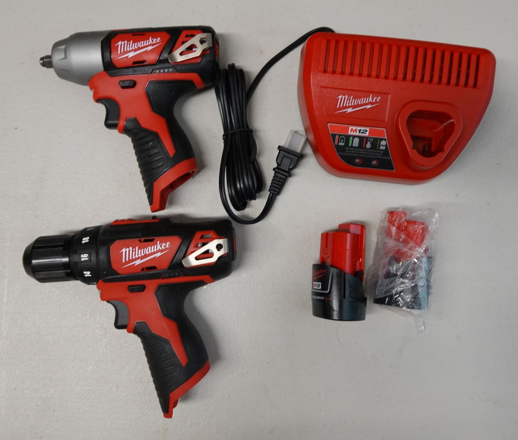 Qty 2 Milwaukee Power Tools, 2 Batteries & 1 Charger: 2407-20 Drill/Driver & 2463-20 Impact Wrench