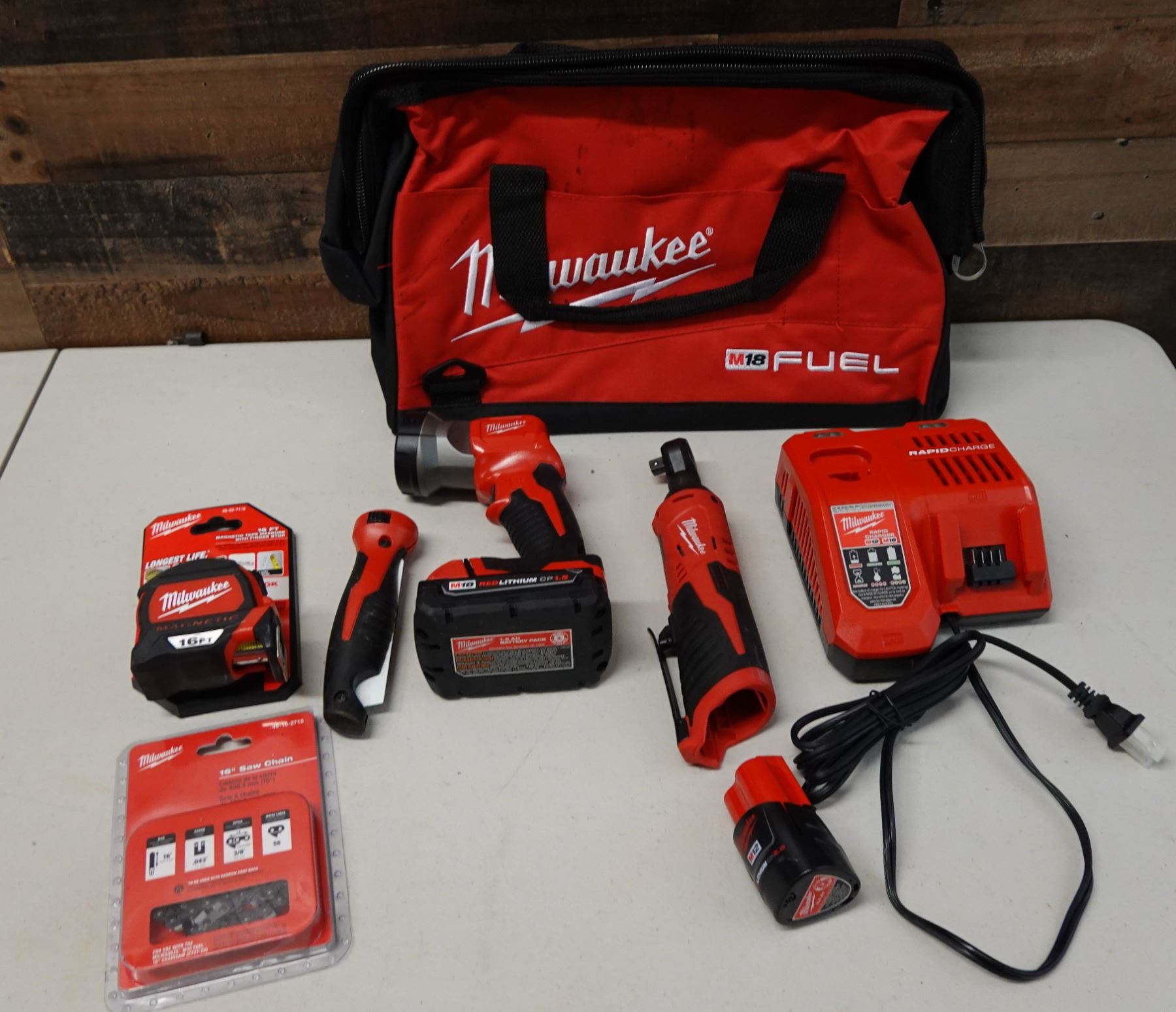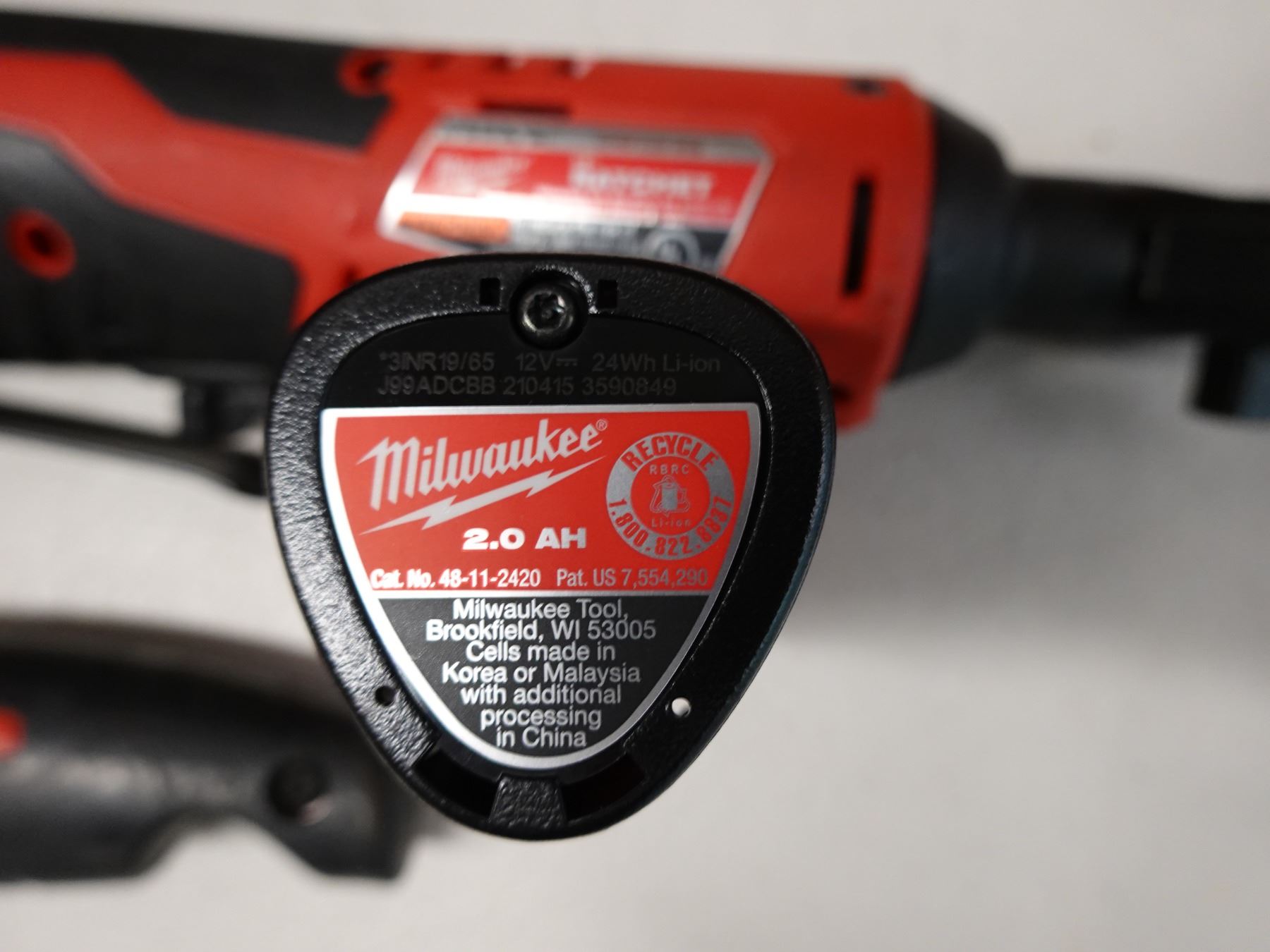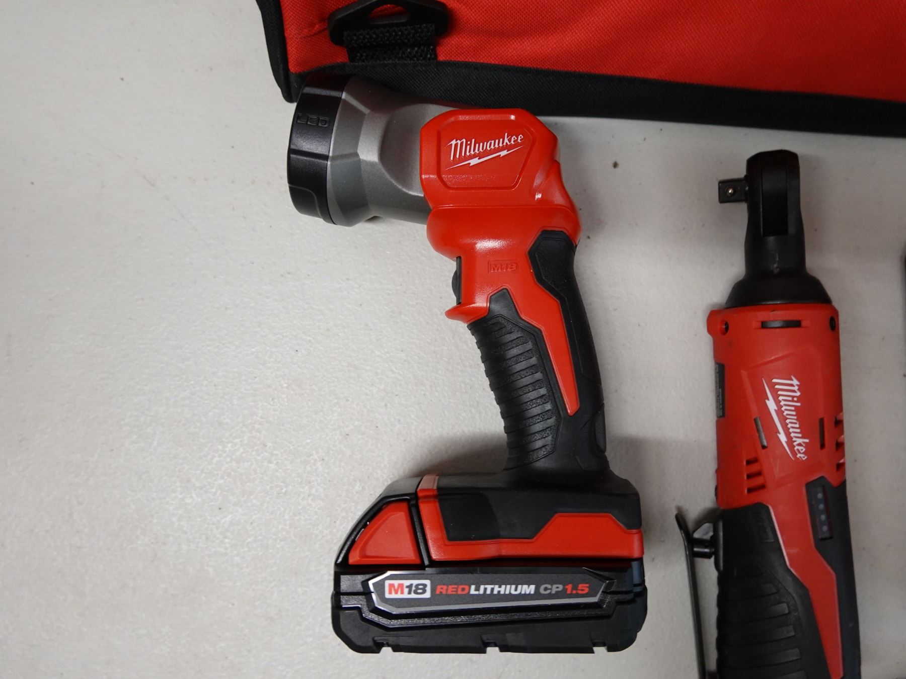 Qty 2 Milwaukee Power Tools, Battery, Case & 1 Charger: 2457-20 Ratchet, 2735-20 Worklight, etc