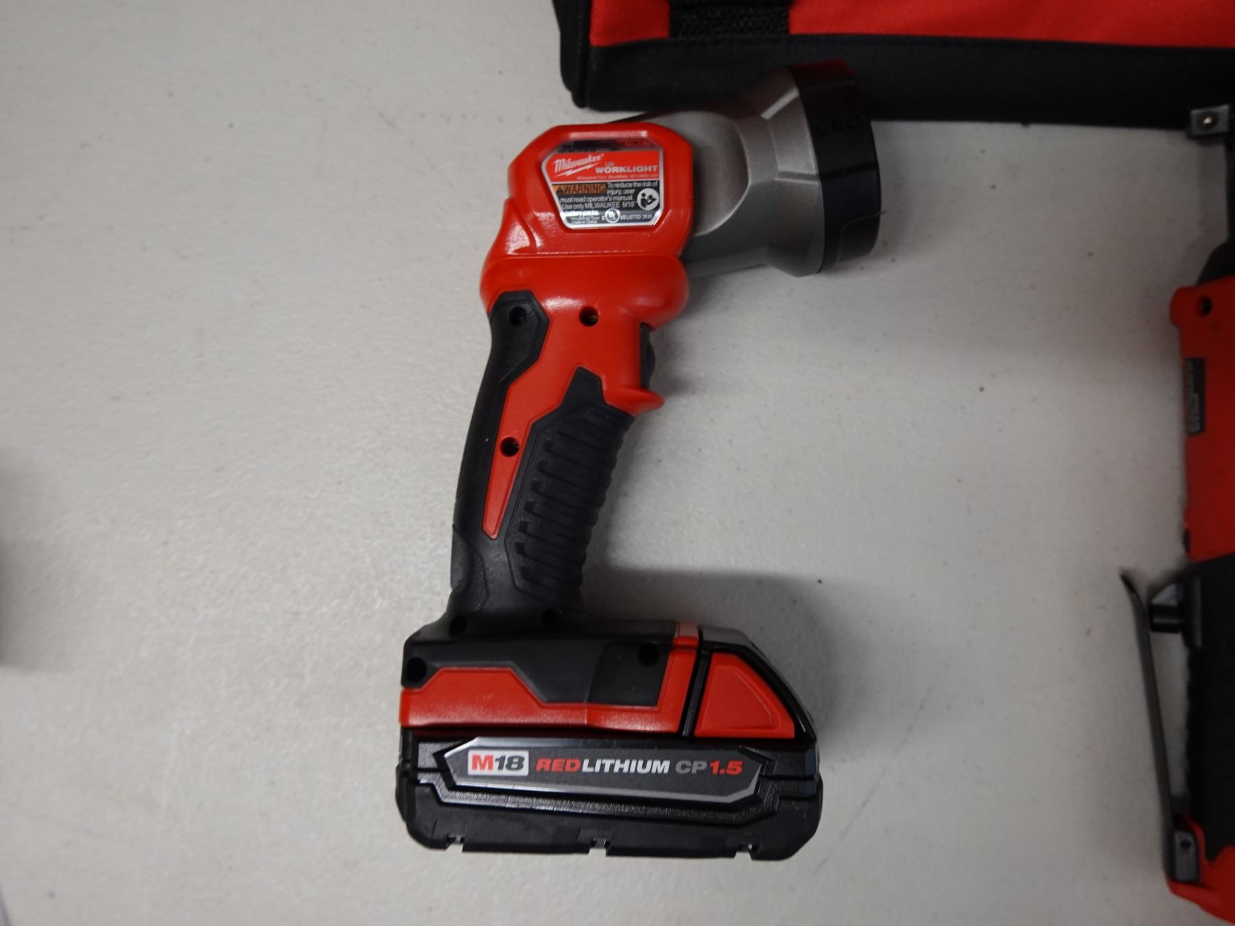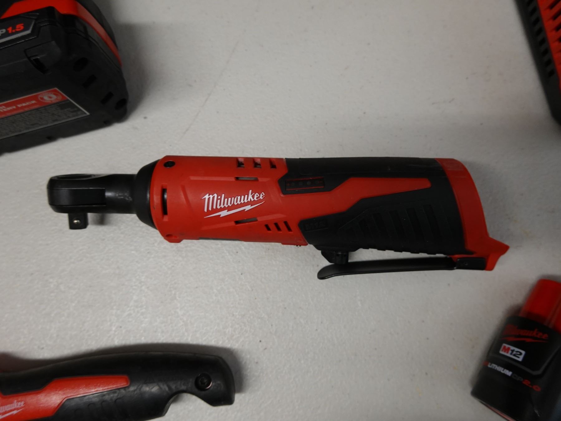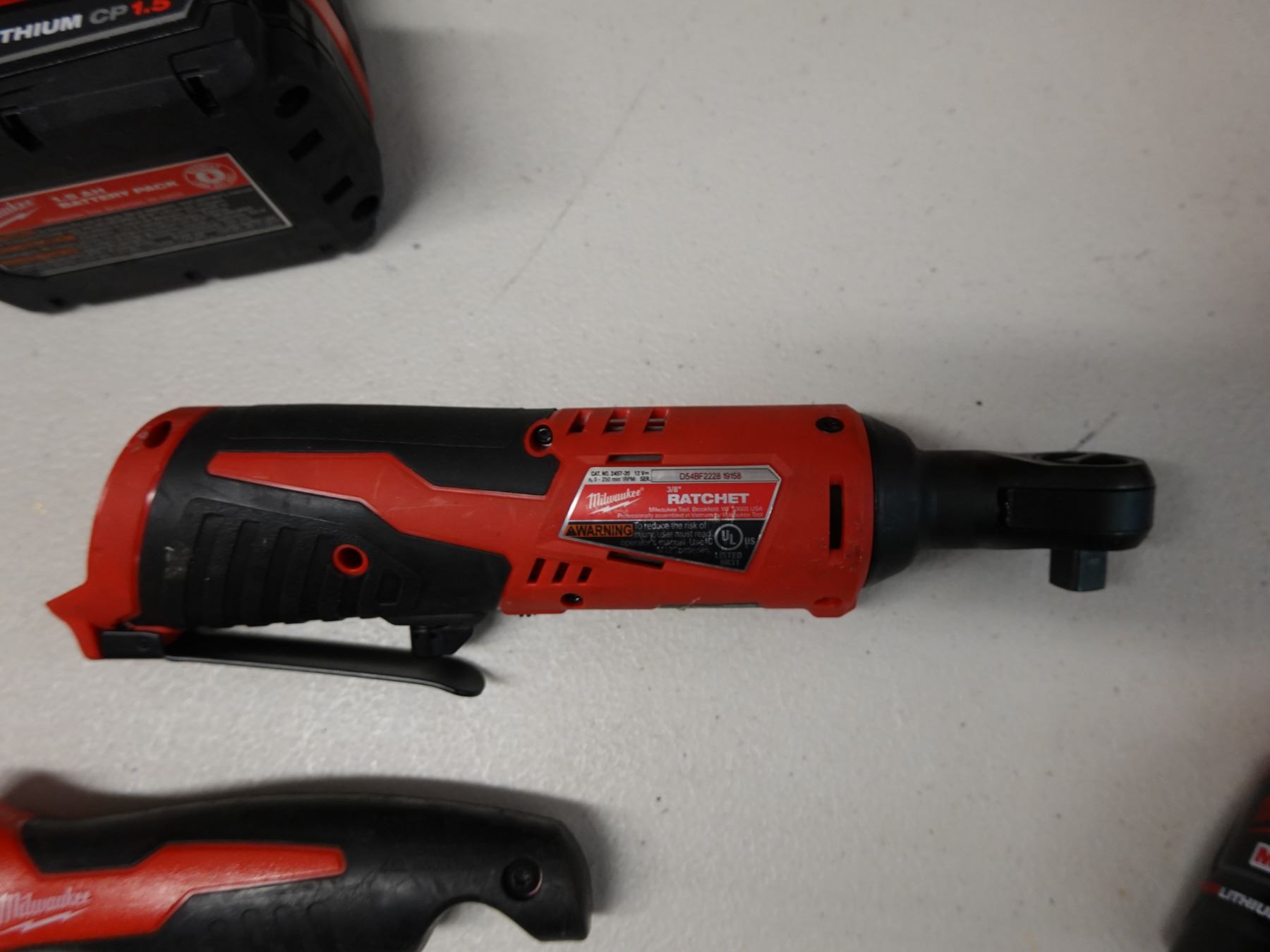 Qty 2 Milwaukee Power Tools, Battery, Case & 1 Charger: 2457-20 Ratchet, 2735-20 Worklight, etc