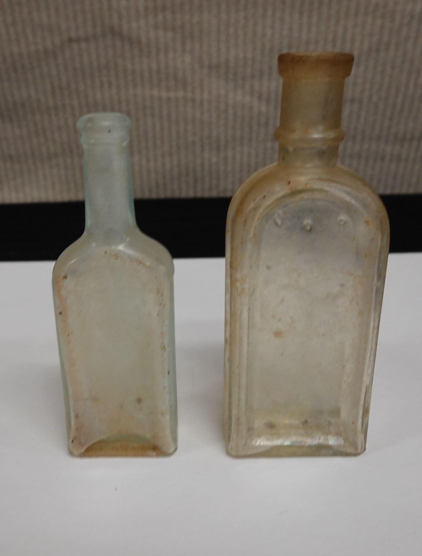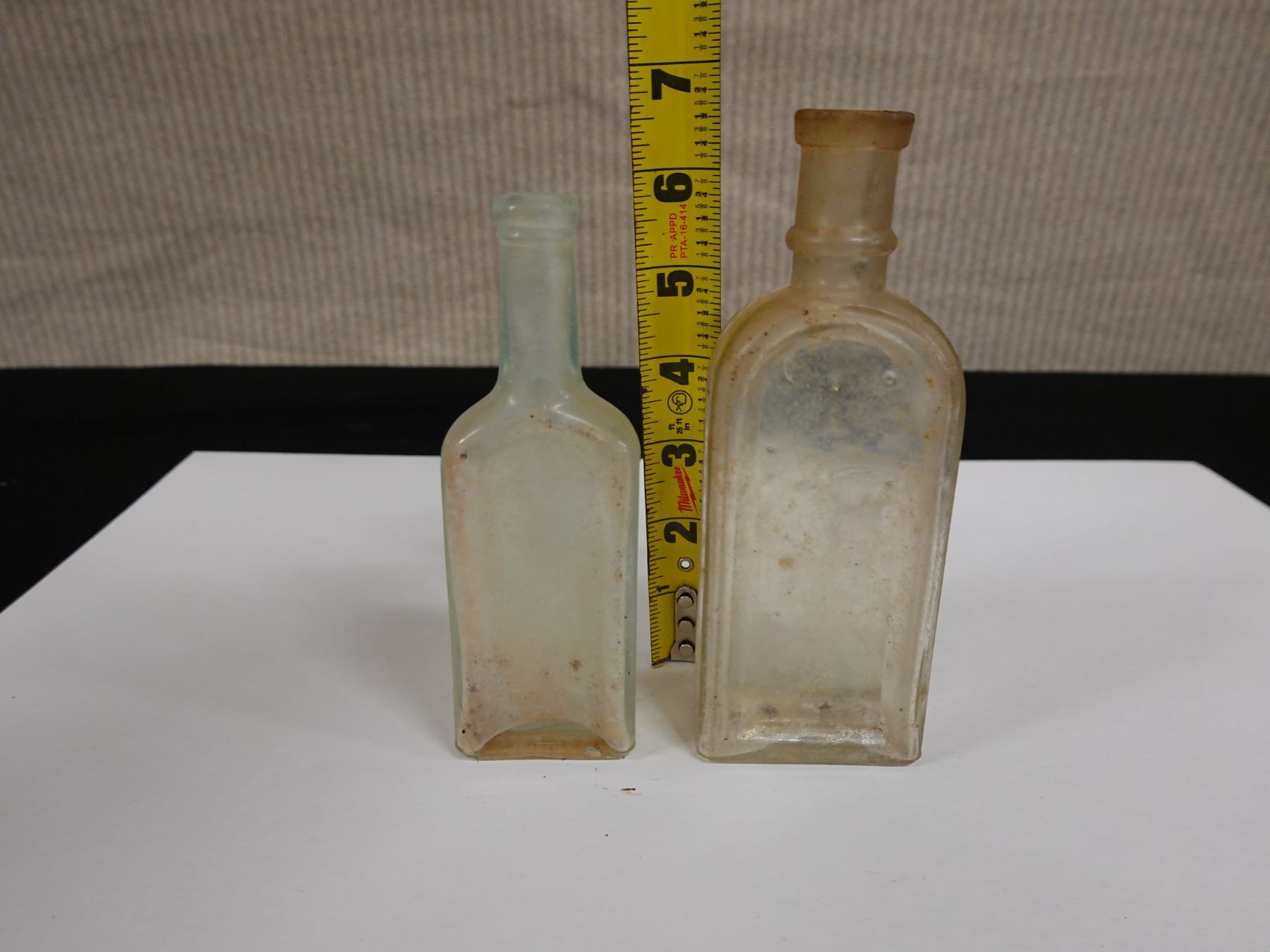 Qty 2 Miniature Glass Bottles: Marked Castoff, etc, Misc Sizes to 7"H
