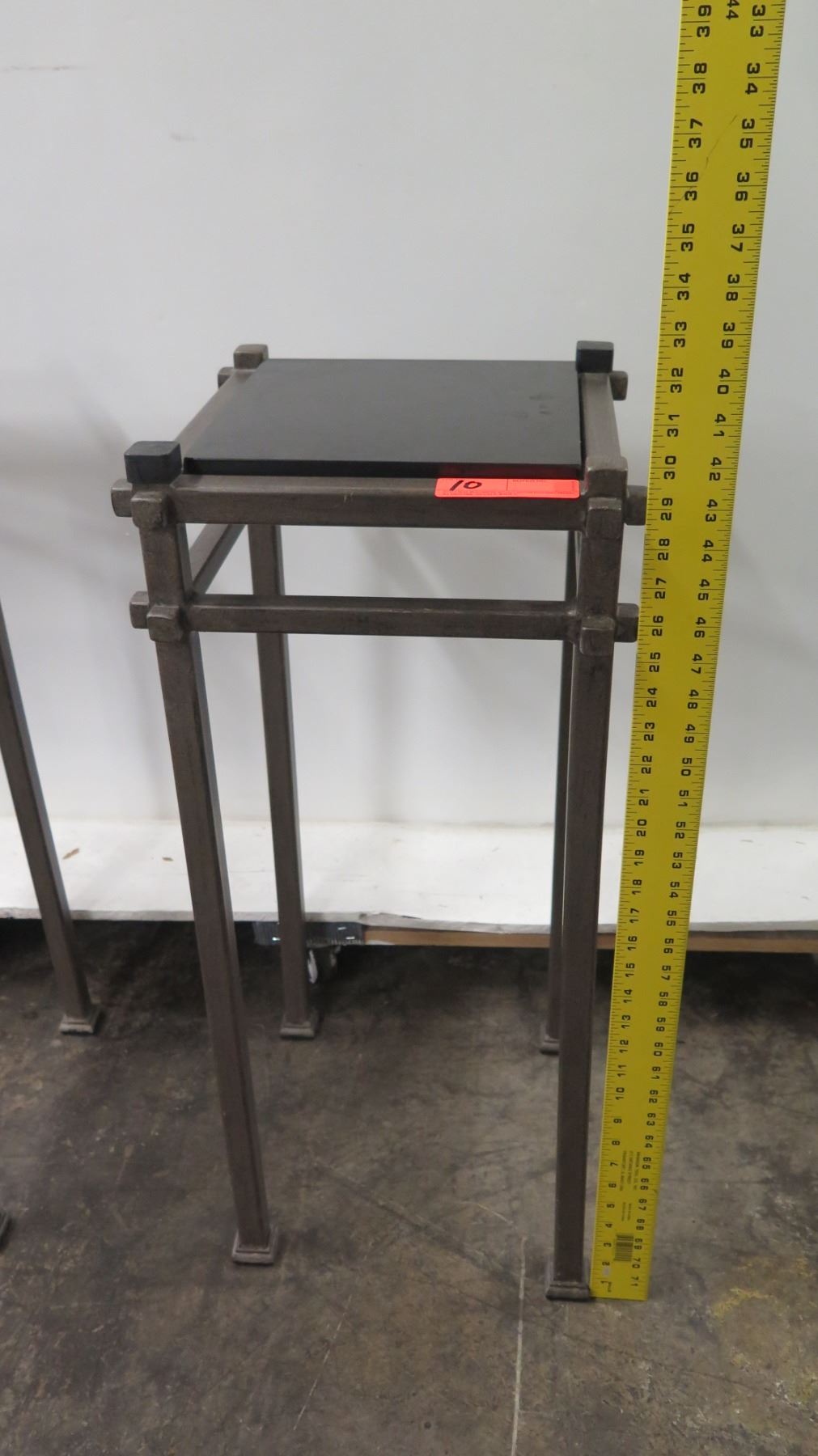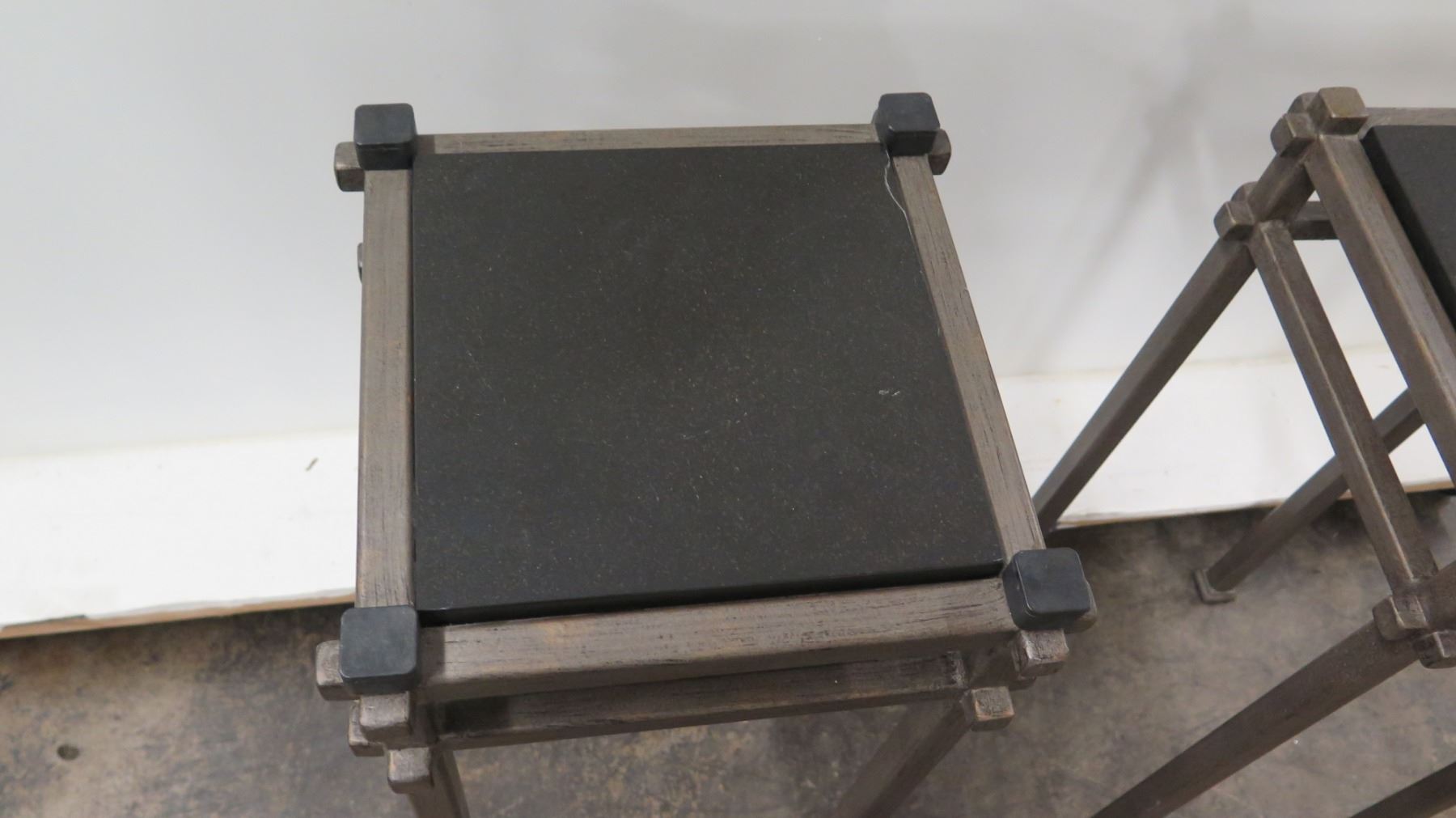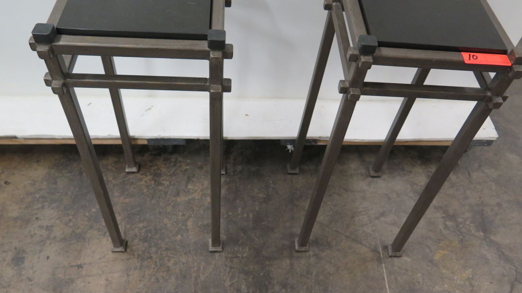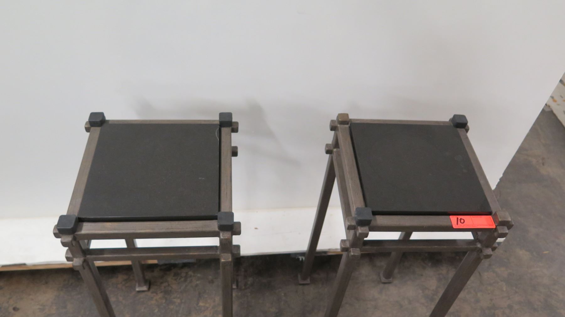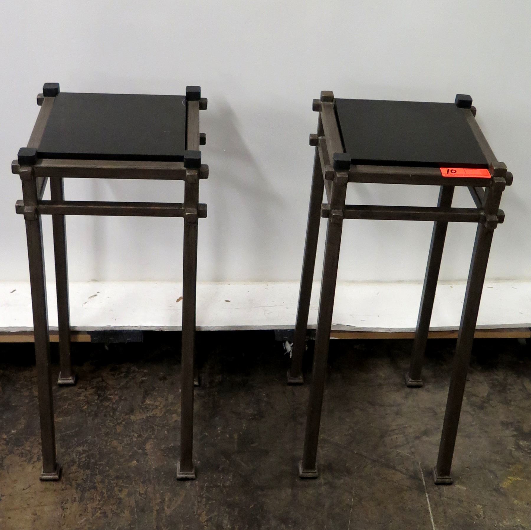 Qty 2 Modern Metal Stands w/ Black Stone Top (12" Dia x 30" H)