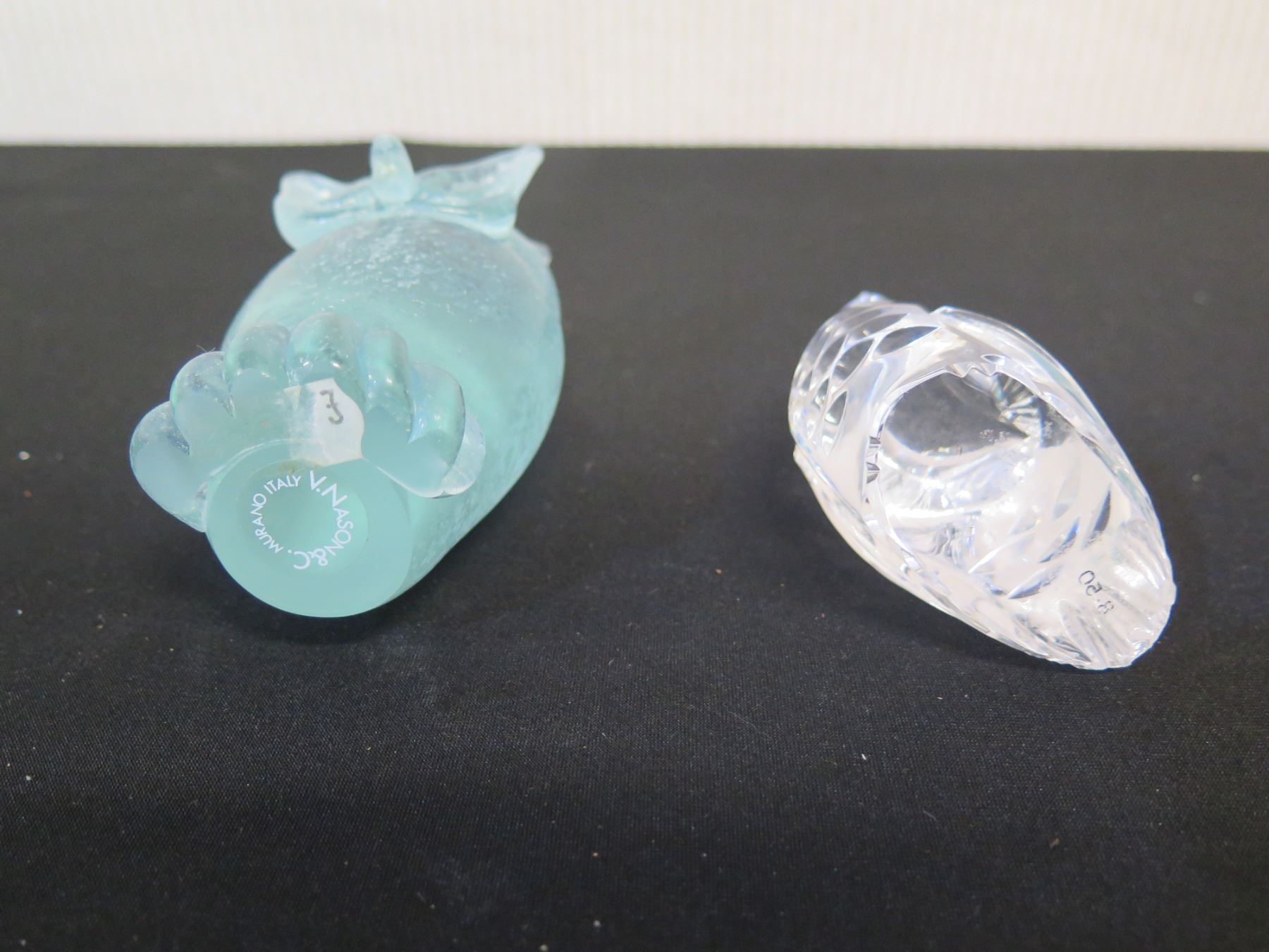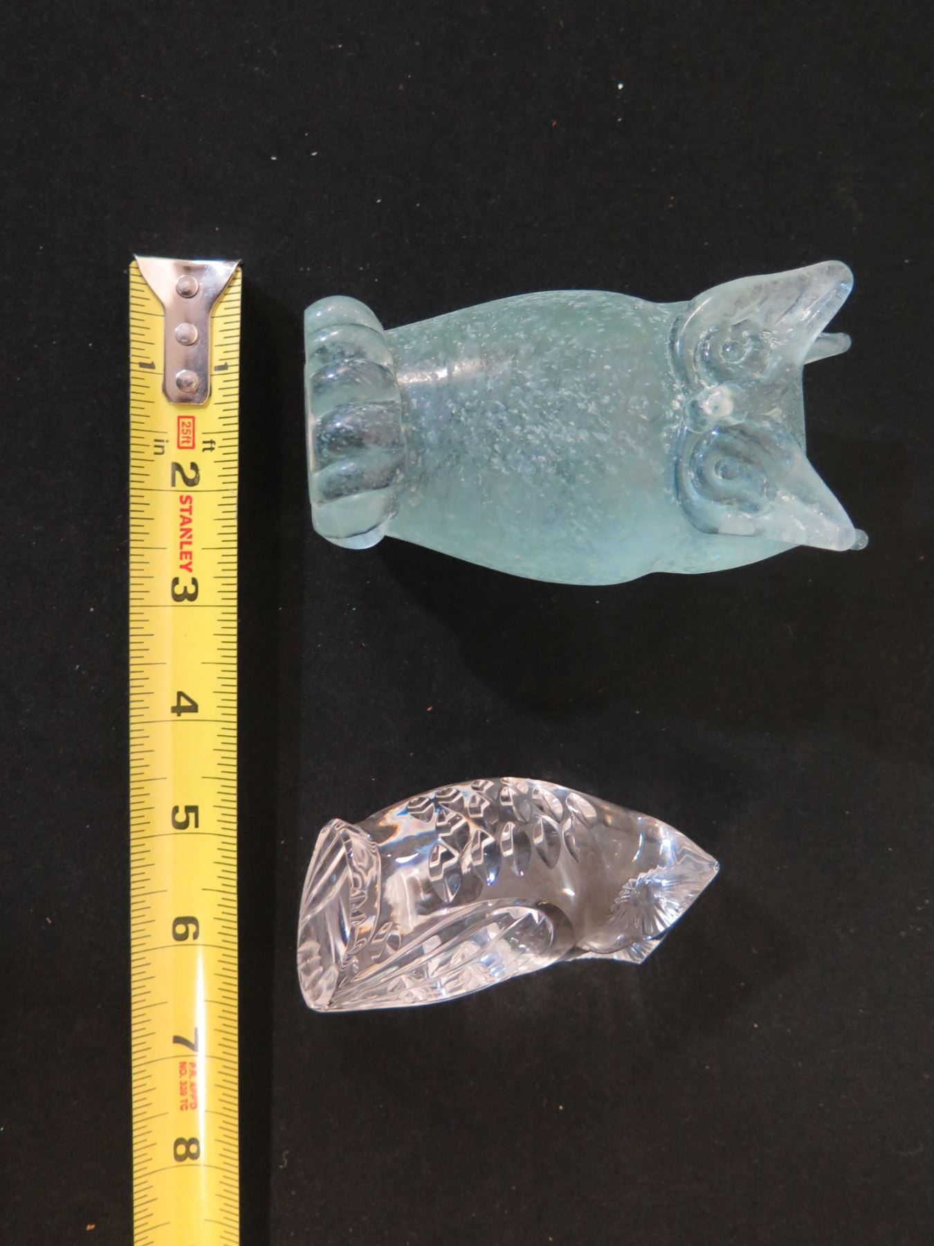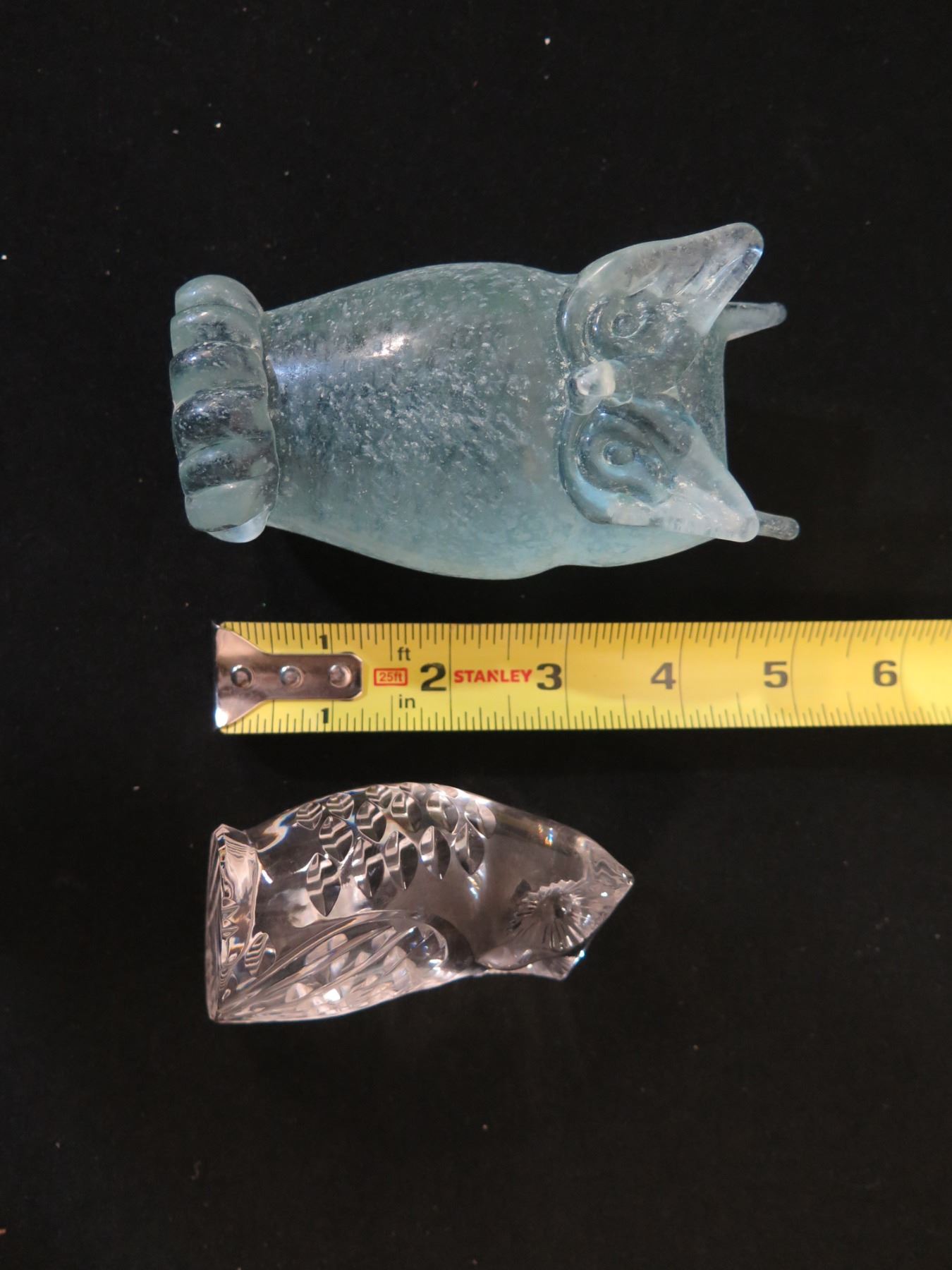 Qty 2 Murano Italy Glass Owls, Misc Sizes