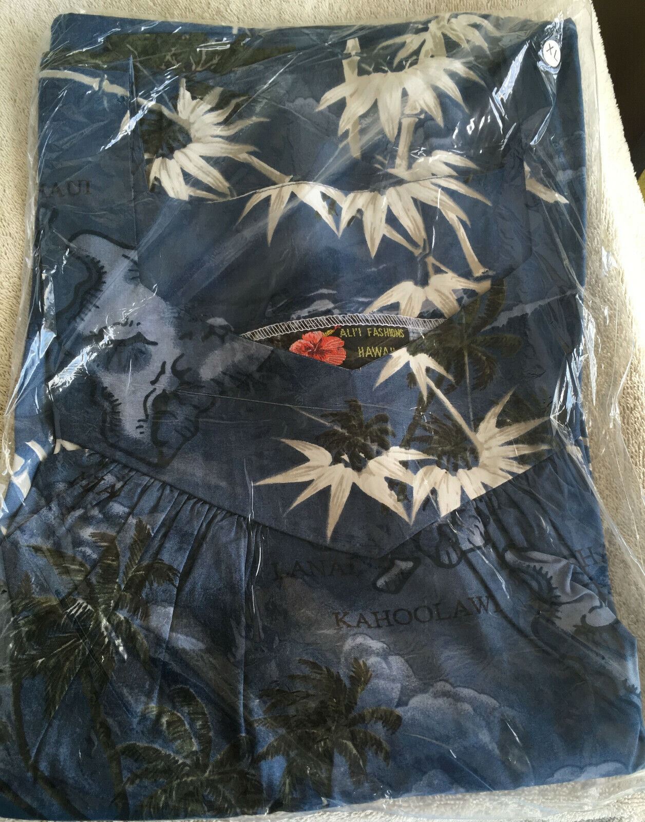 Qty 2 New 2X Ali'i Fashions Hawaii Blue White Cotton MuuMuu Dresses (50" bust/44"L)
